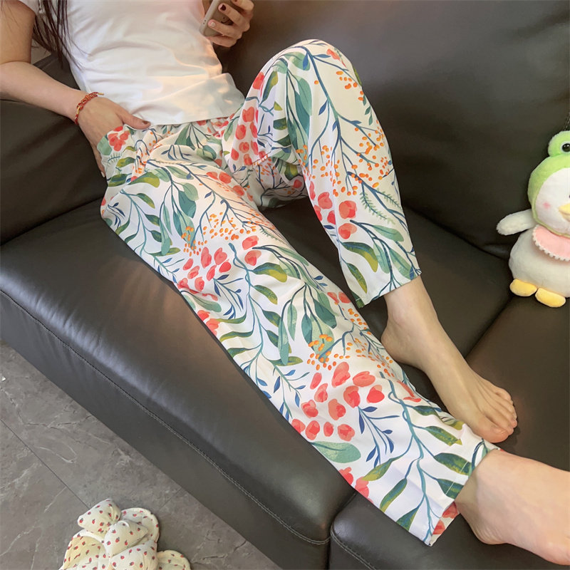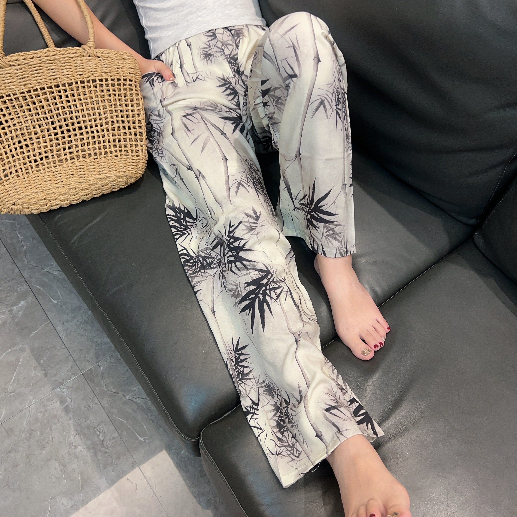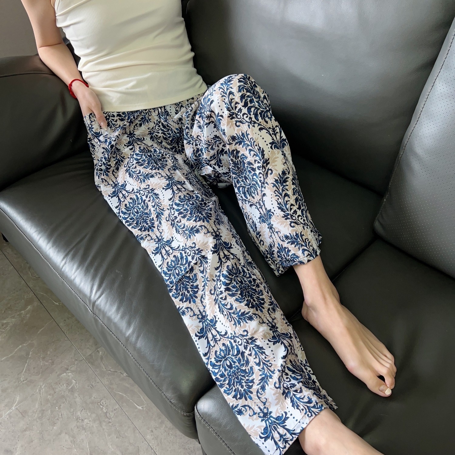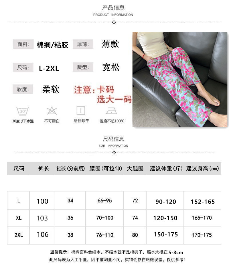 Summer women's thin pajamas, cotton silk pants, cotton silk trousers, single pants, casual pants, home pants, artificial cotton beach pants, plus size