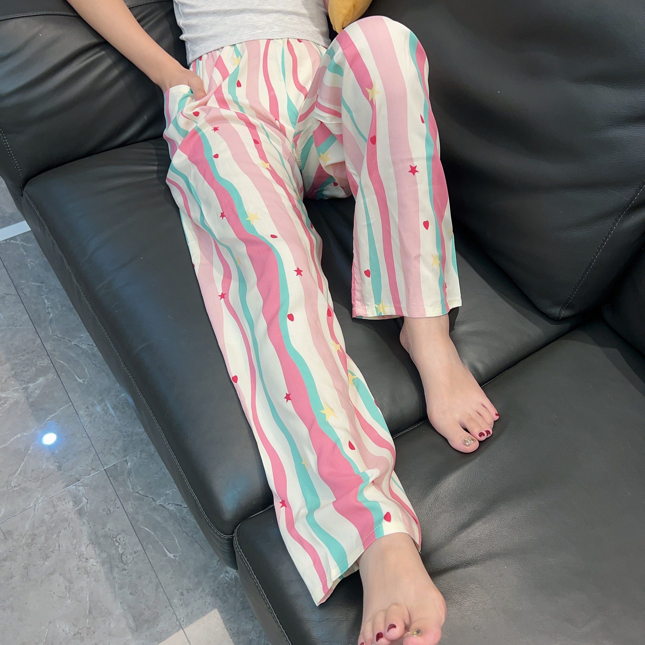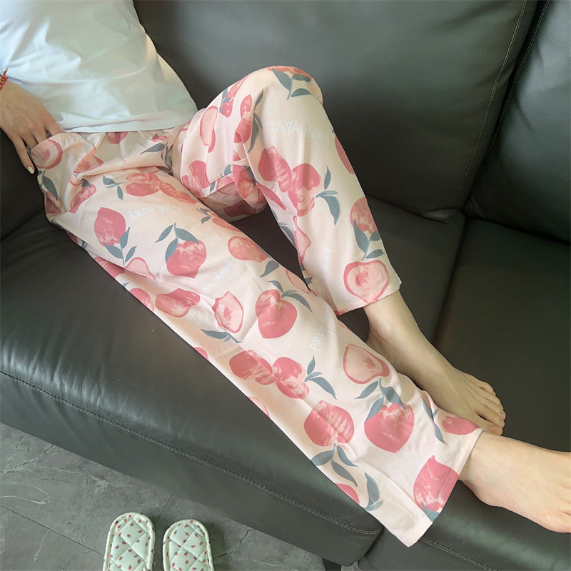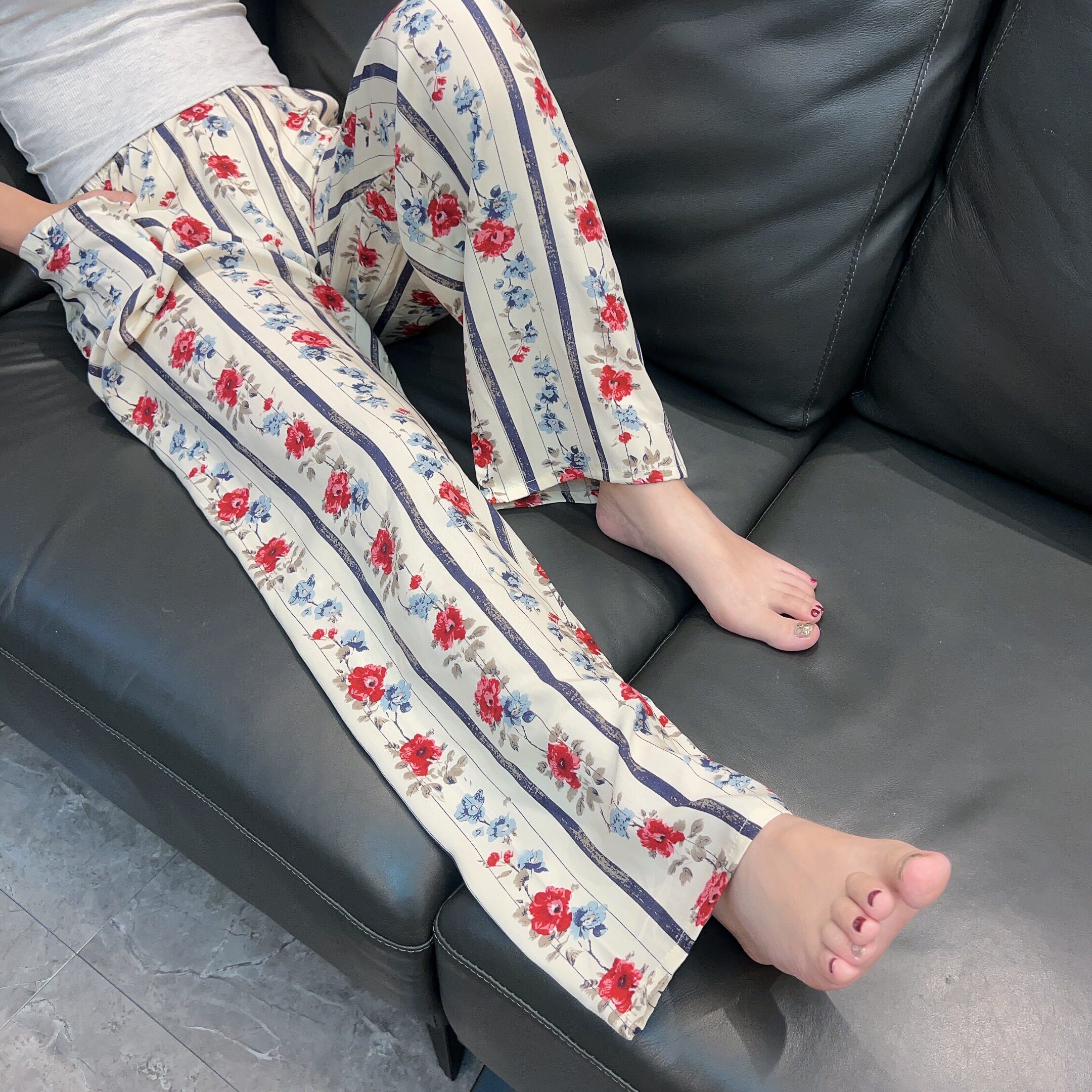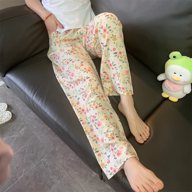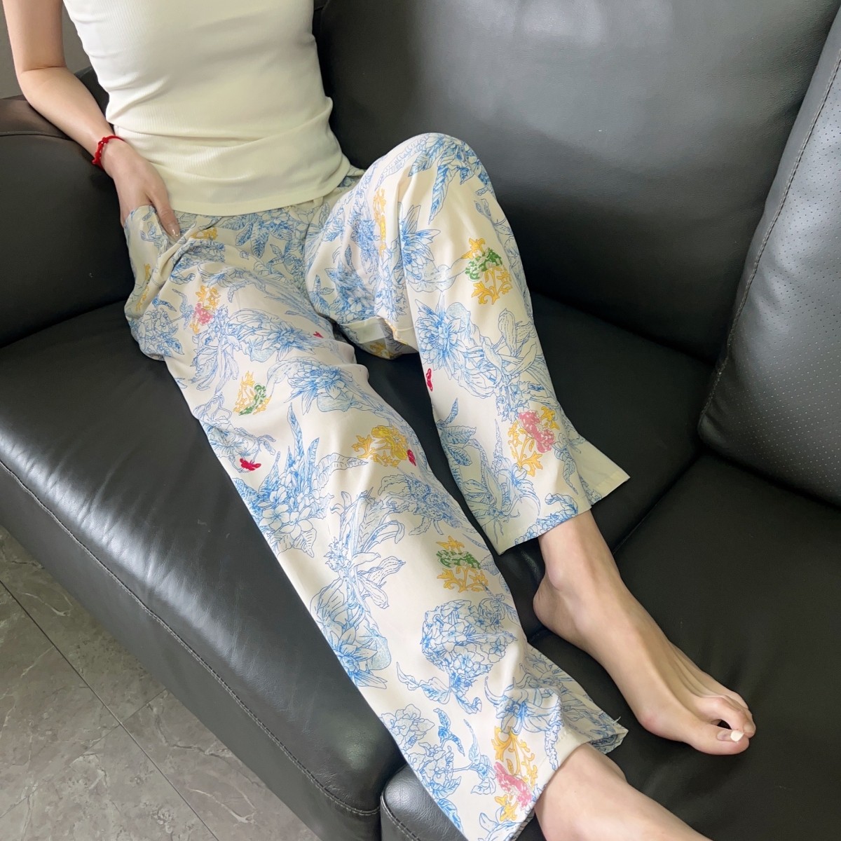 Summer women's thin pajamas, cotton silk pants, cotton silk trousers, single pants, casual pants, home pants, artificial cotton beach pants, plus size
