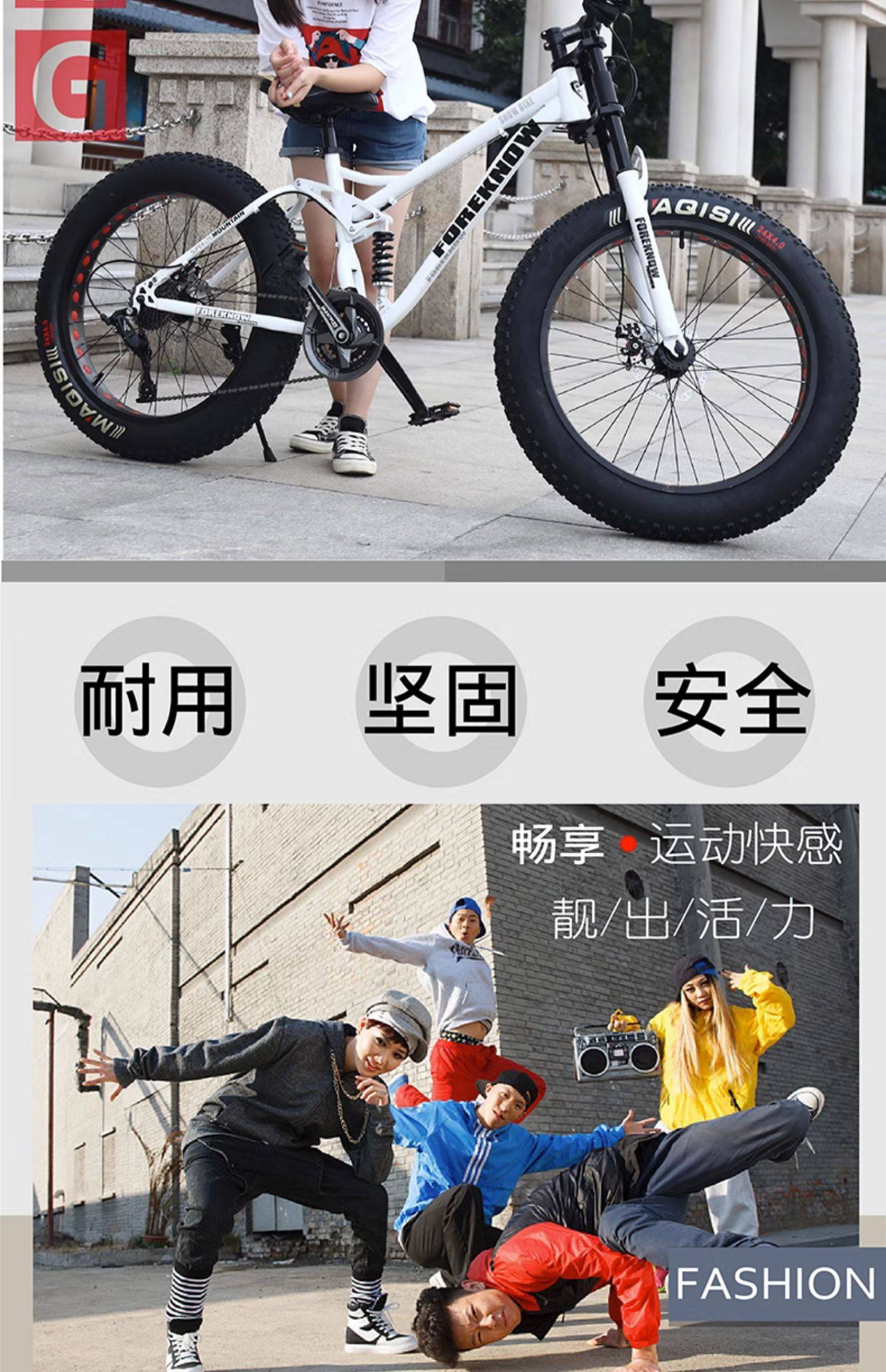 Mountain Bike, Adult Off-Road Vehicle, Beach Snow Bike, 4.0 Large Tires, Men's and Women's Student Variable-Speed Bike