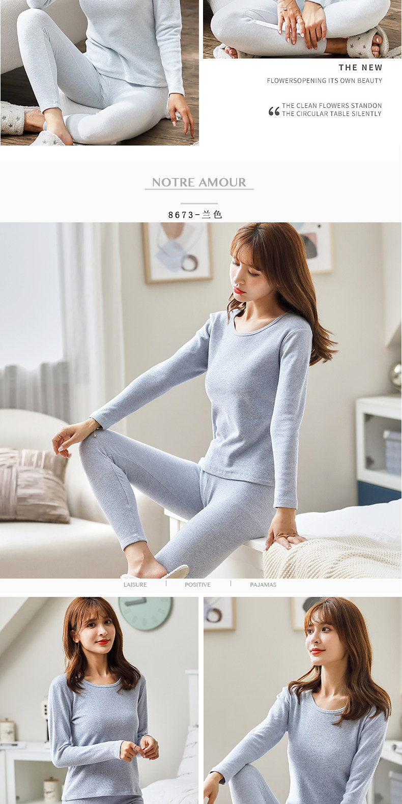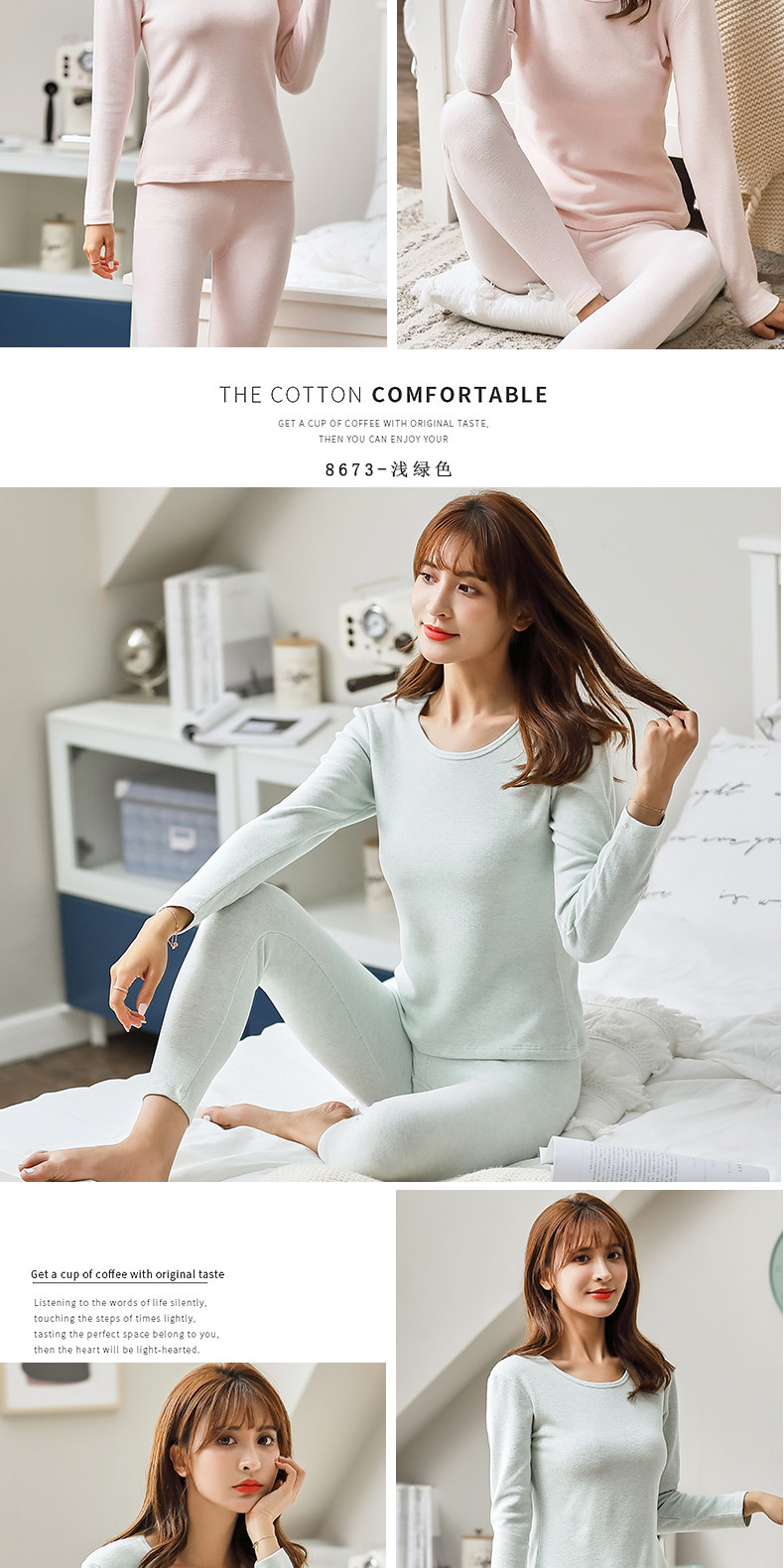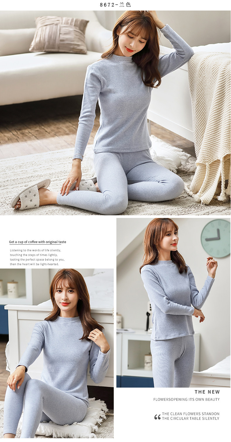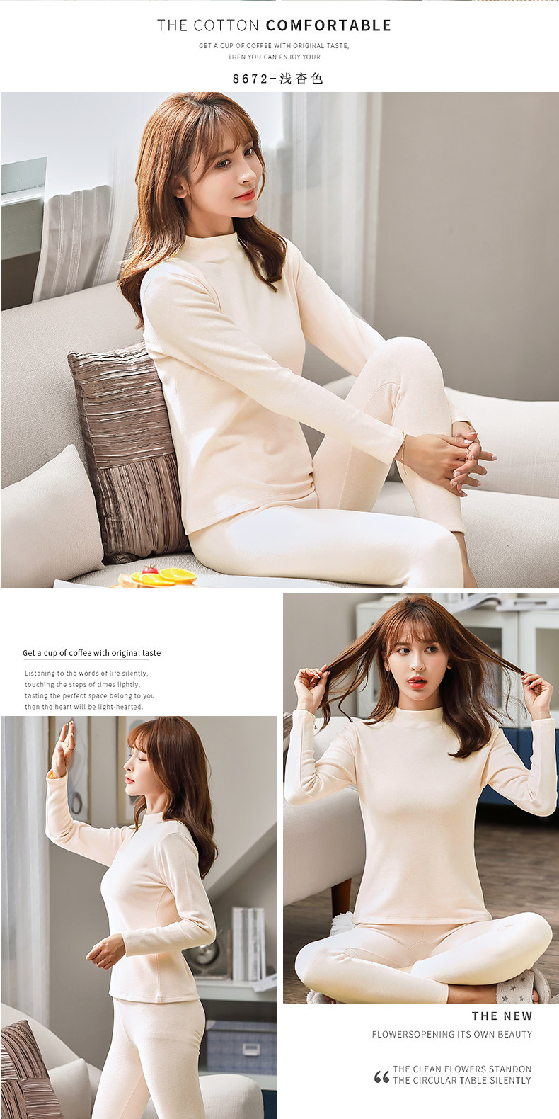 Conjunto de ropa interior térmica gruesa para mujer, ropa de otoño y pantalones de otoño para niñas cepilladas de algodón de colores, suéter de algodón con cuello medio alto