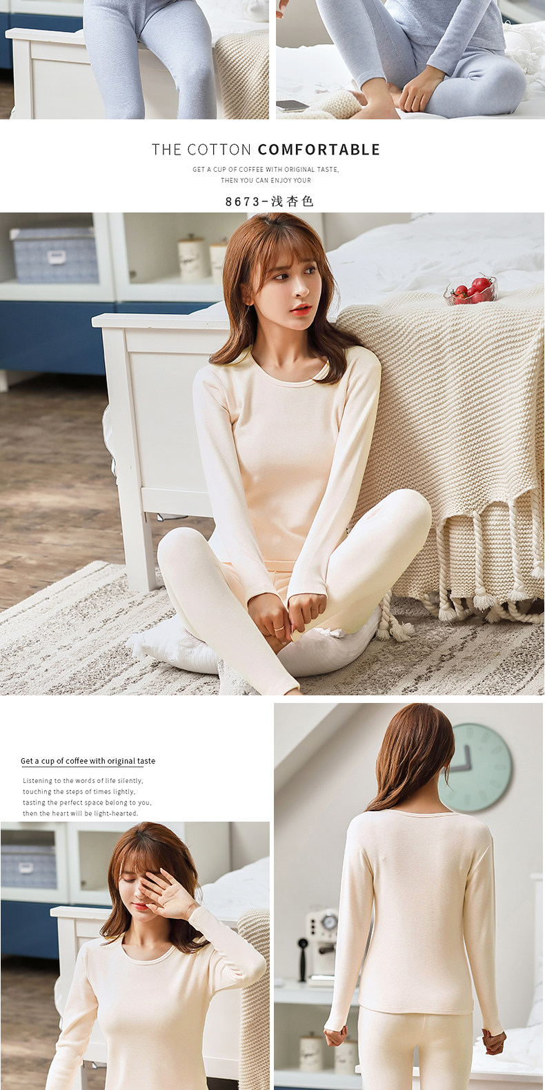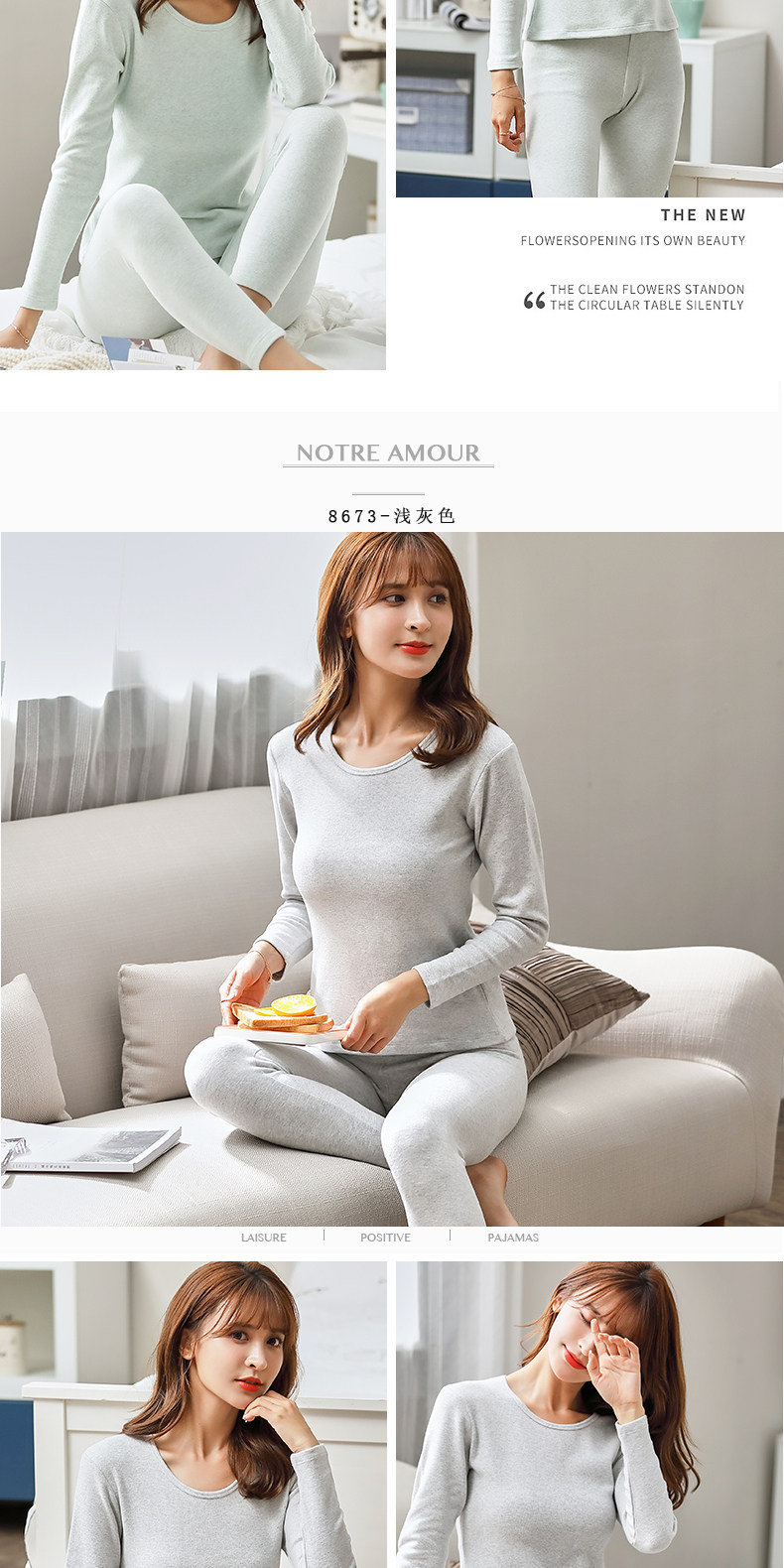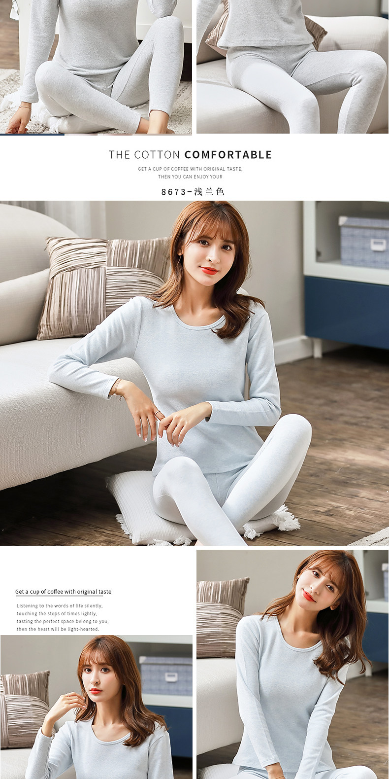 Conjunto de ropa interior térmica gruesa para mujer, ropa de otoño y pantalones de otoño para niñas cepilladas de algodón de colores, suéter de algodón con cuello medio alto