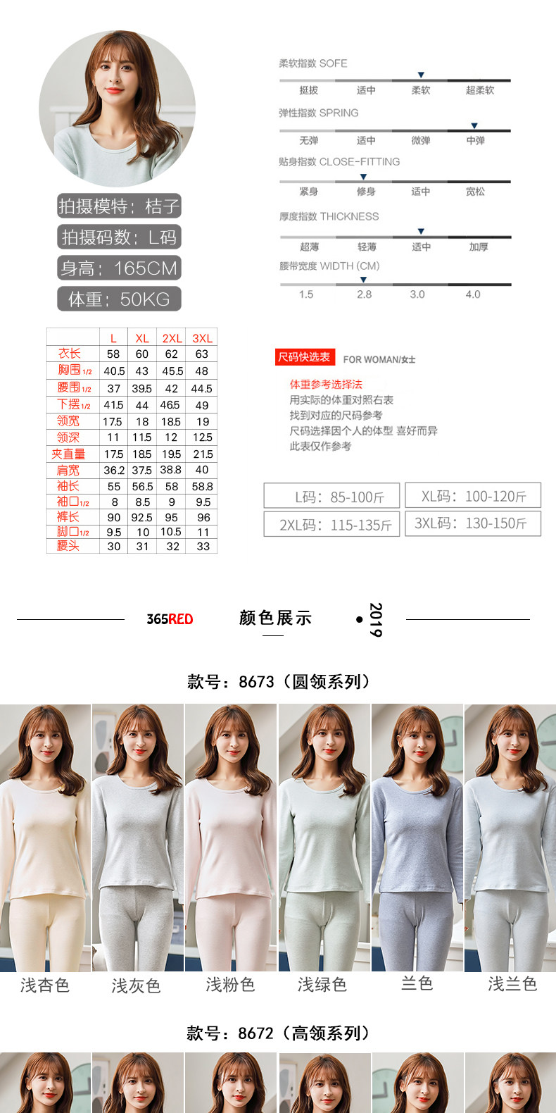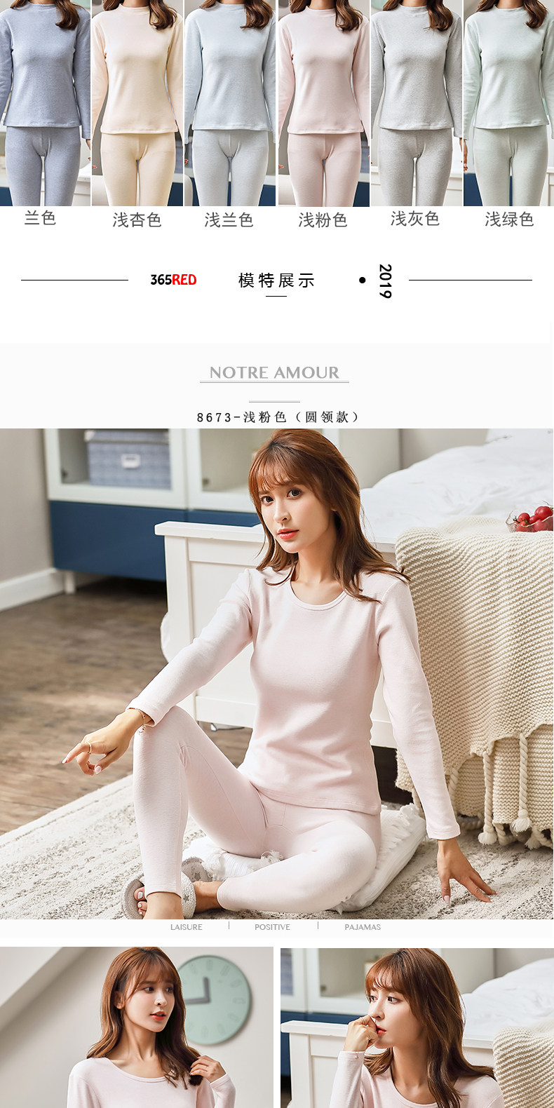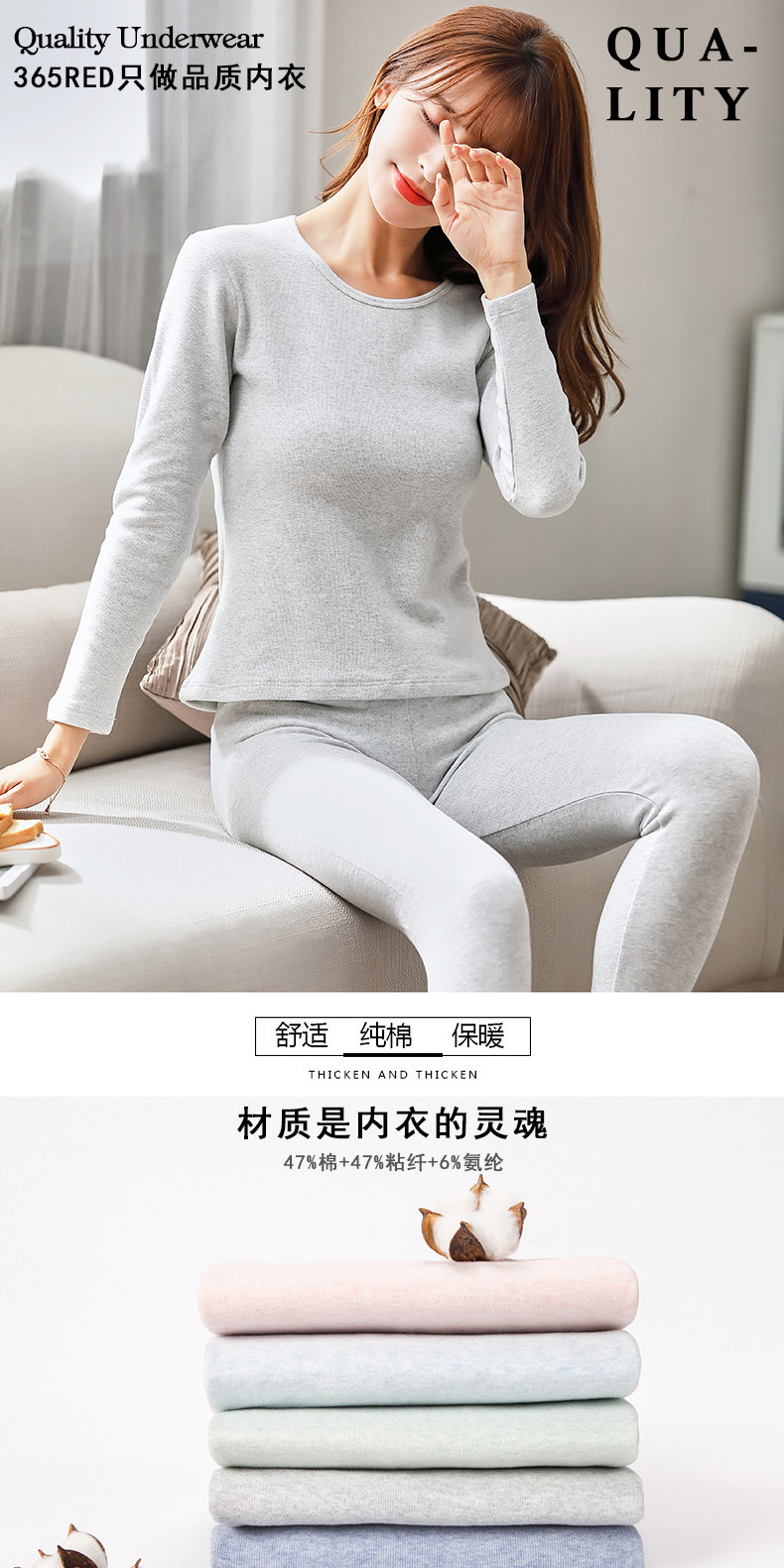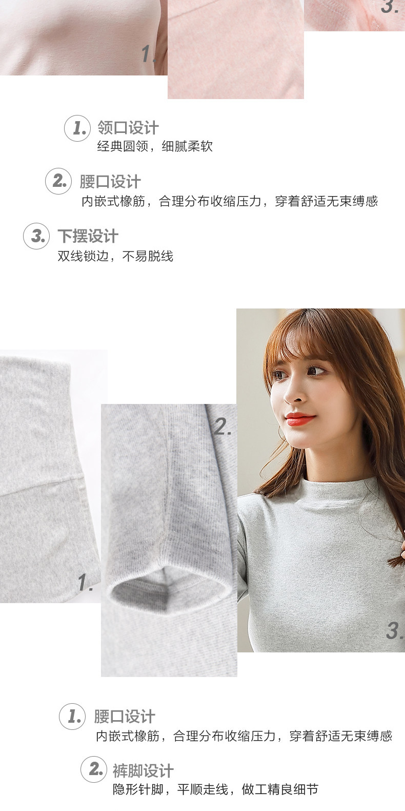 Conjunto de ropa interior térmica gruesa para mujer, ropa de otoño y pantalones de otoño para niñas cepilladas de algodón de colores, suéter de algodón con cuello medio alto