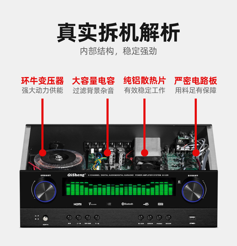 Усилитель для домашнего кинотеатра Qisheng 5.1, мощный профессиональный Bluetooth HIFI сабвуфер для аудиофилов