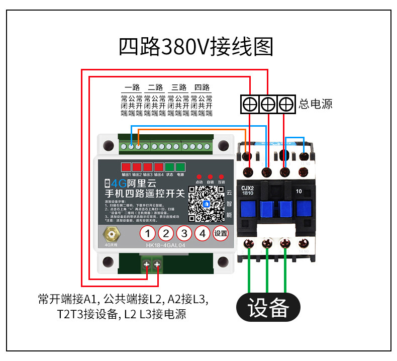 4G手机远程控制开关电源控制器模块智能照明app遥控开关220v380v