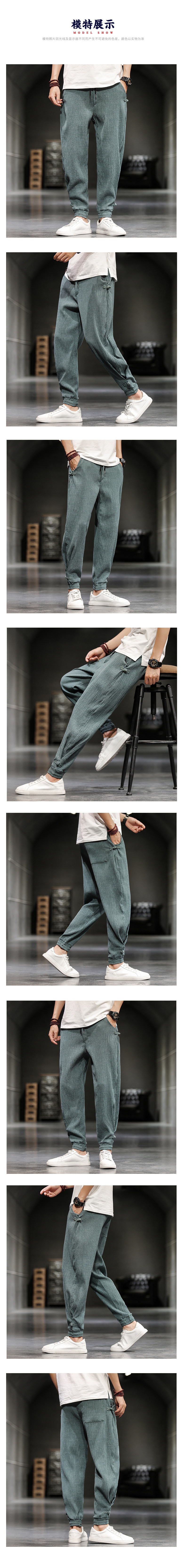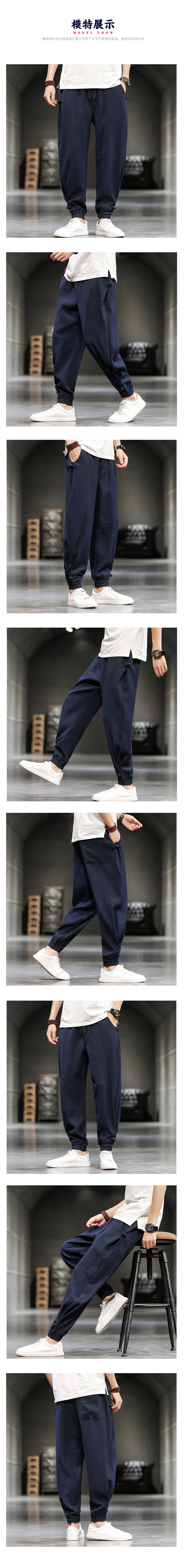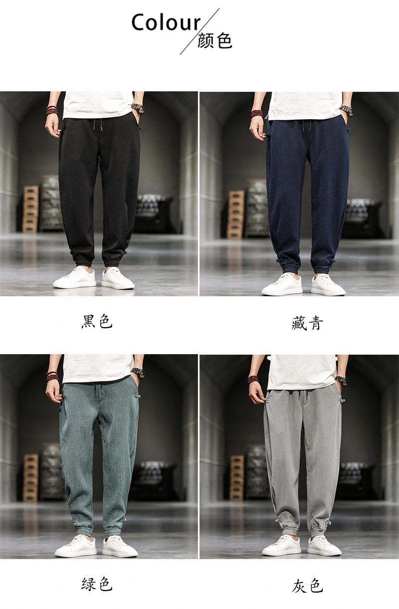 亚麻裤男夏季冰丝休闲裤新中式男装中国风棉麻裤子春夏束脚九分裤