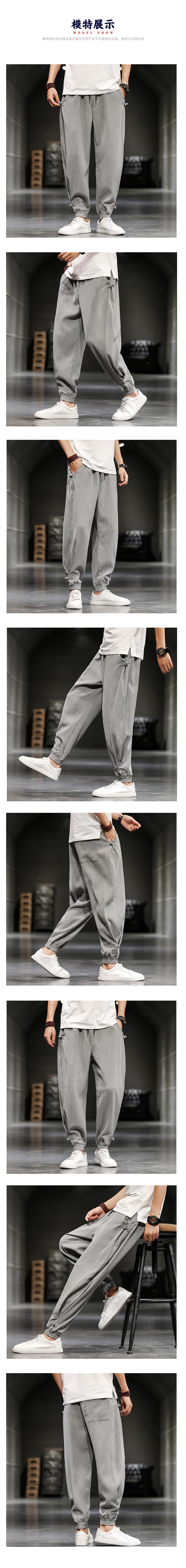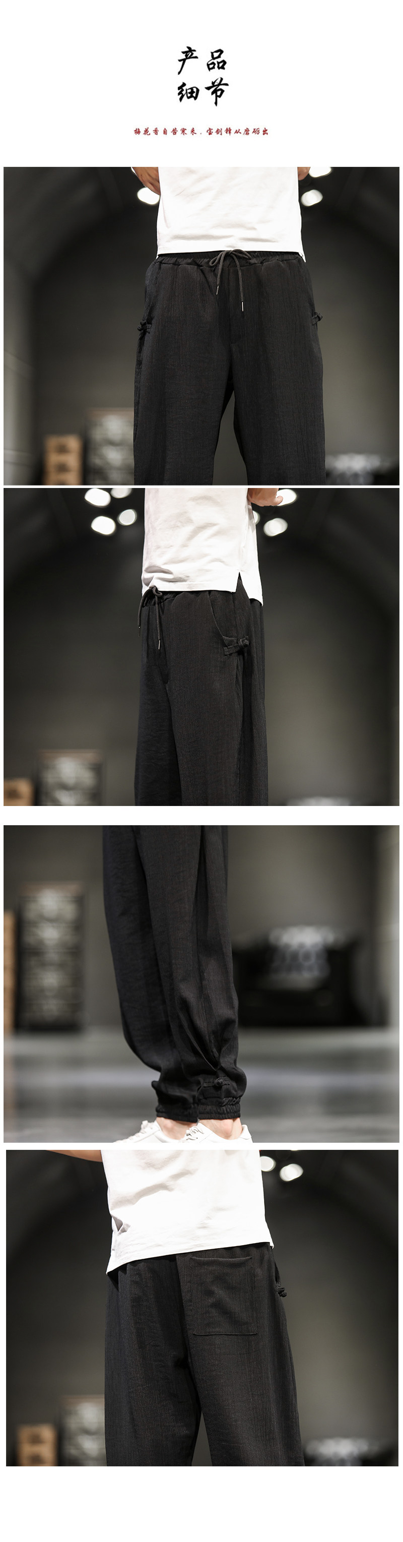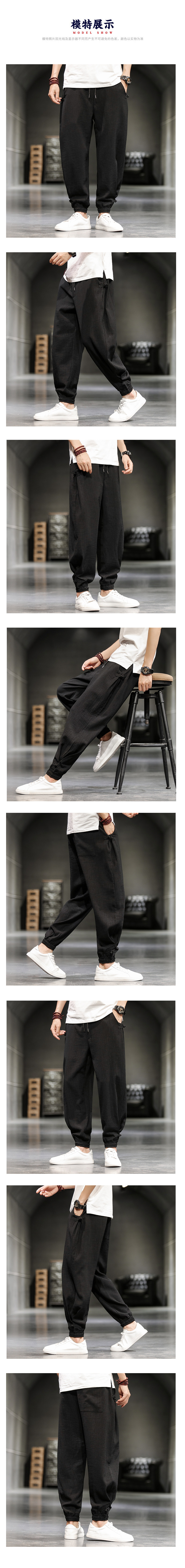 亚麻裤男夏季冰丝休闲裤新中式男装中国风棉麻裤子春夏束脚九分裤