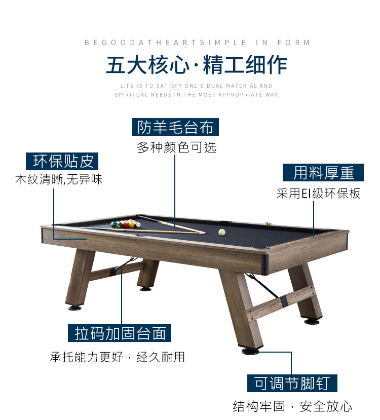 家用台球桌标准型美式黑八三合一多功能室内商用大理石自动桌球台