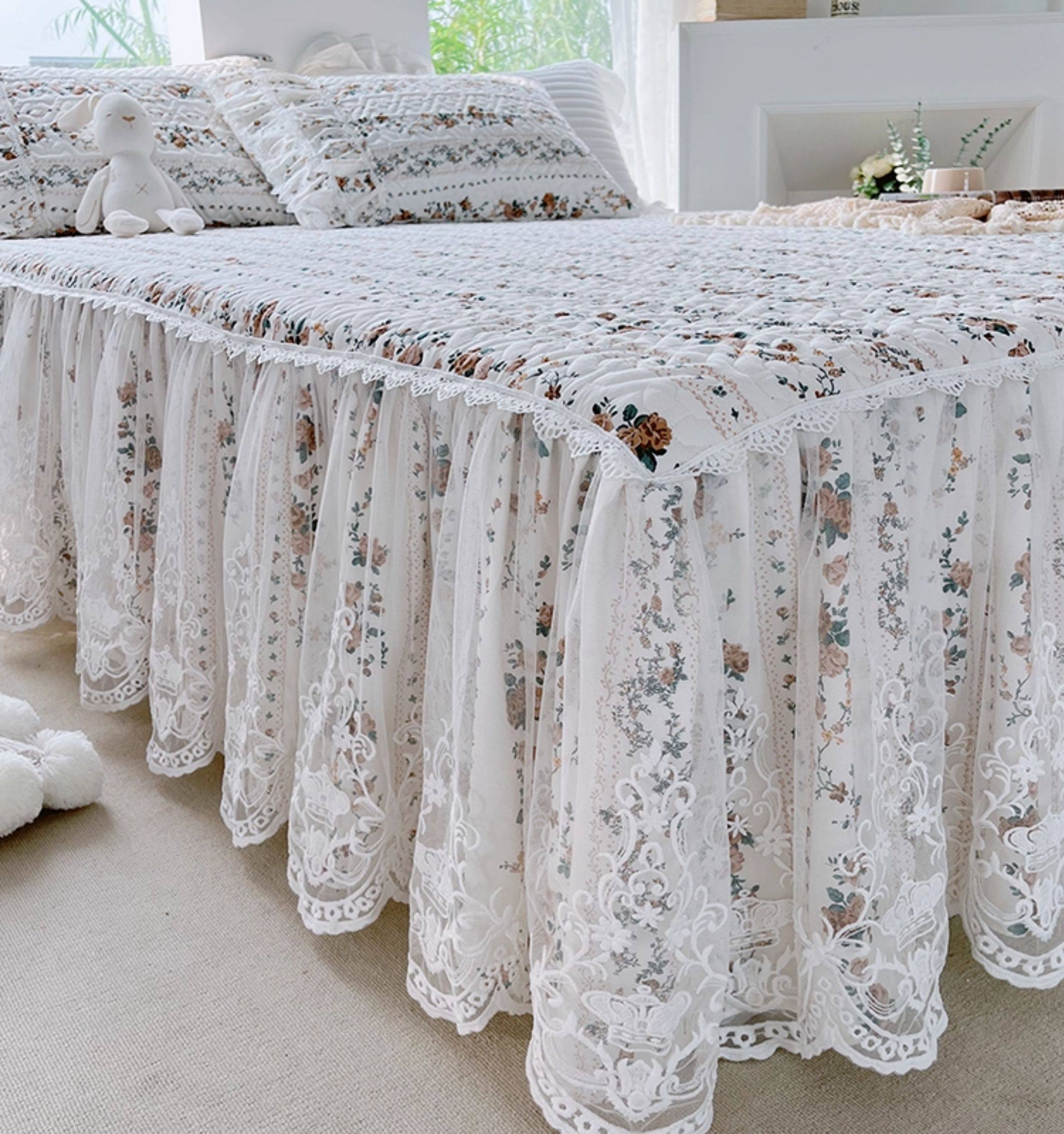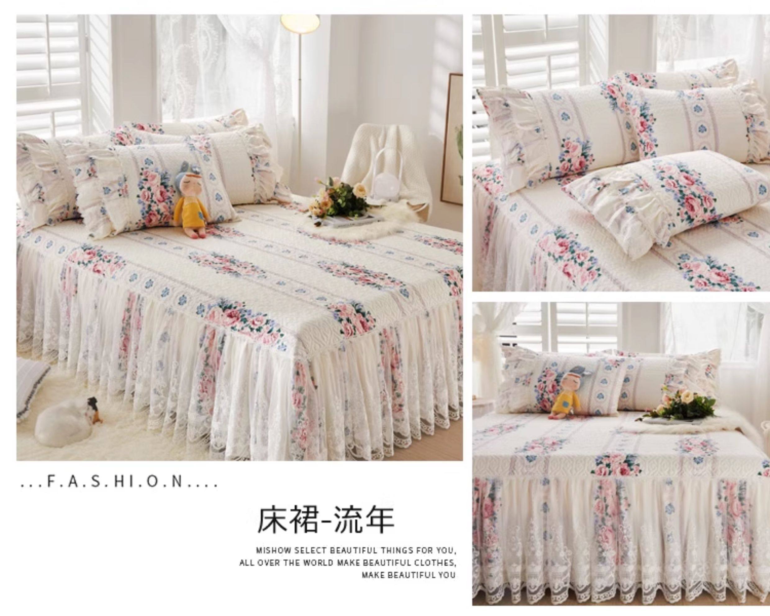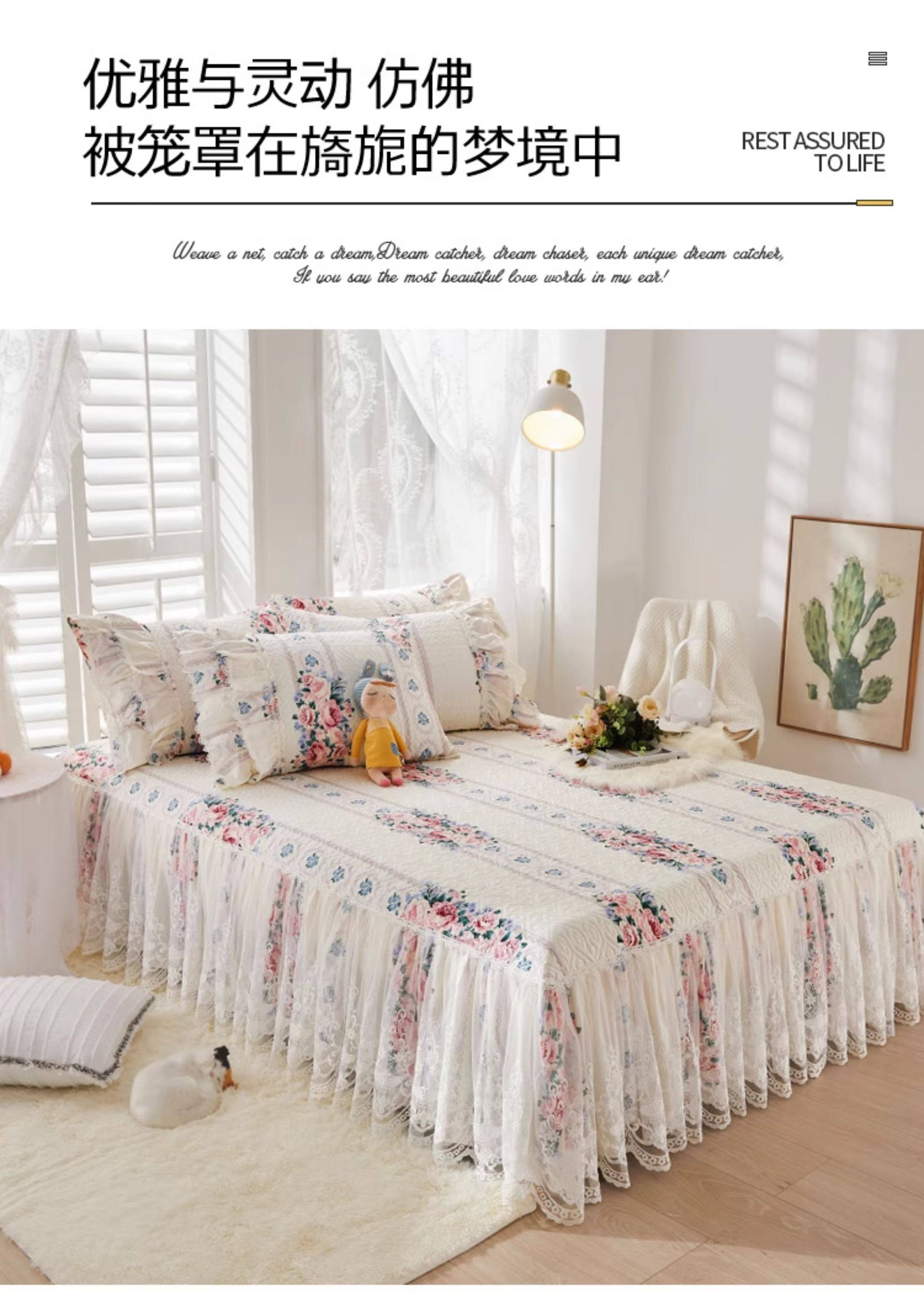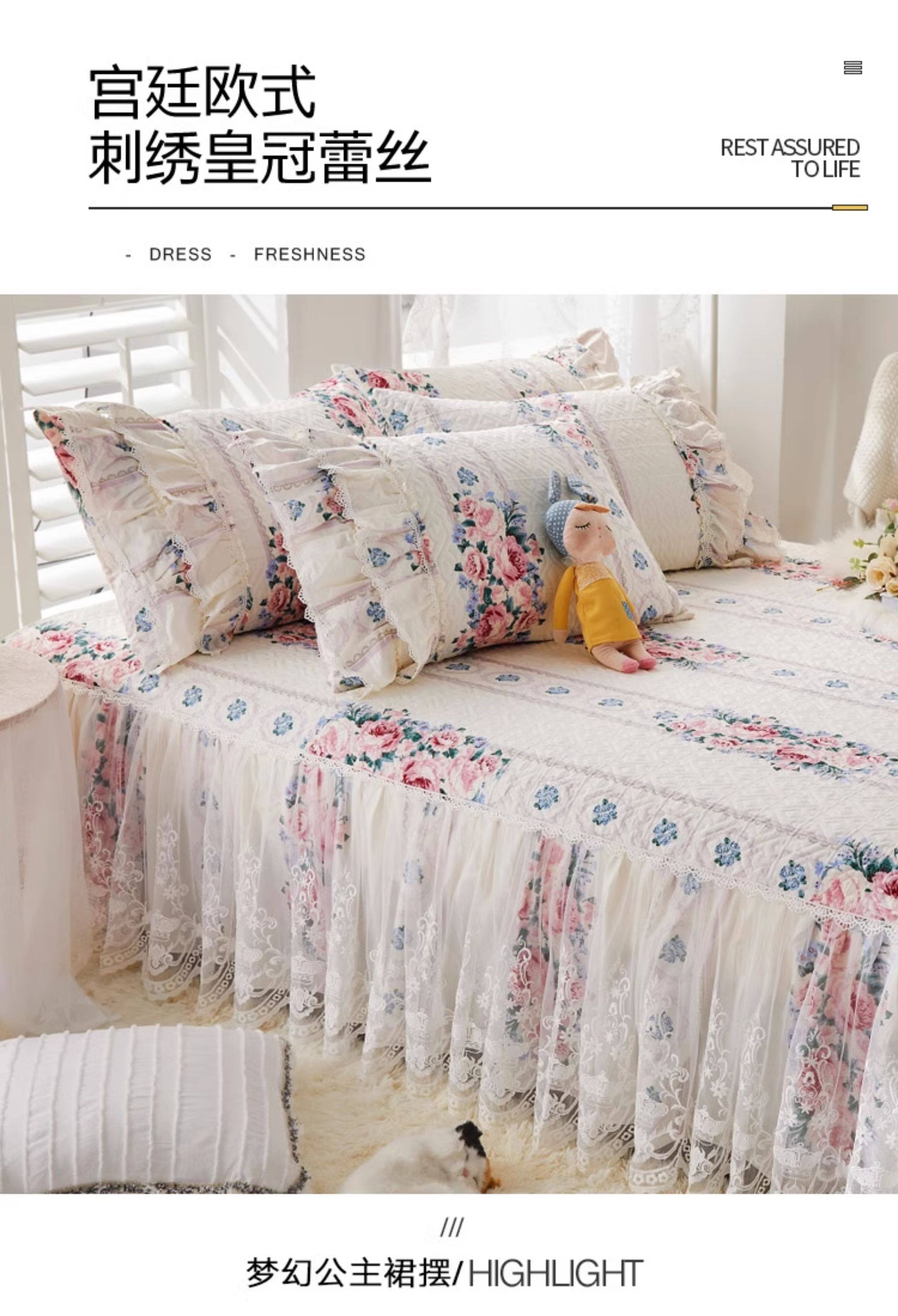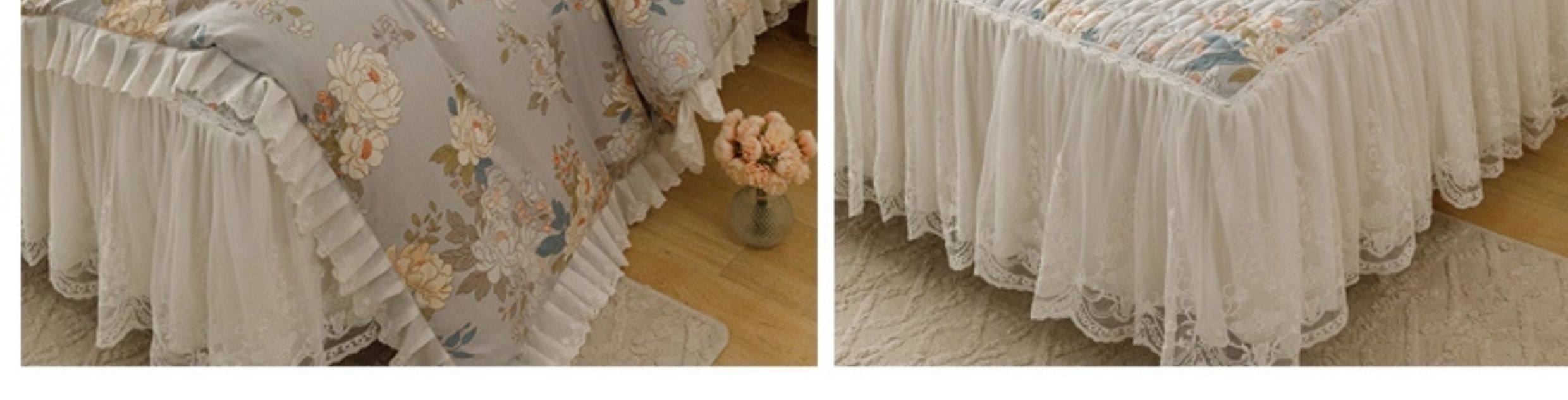 French Lace Bed Skirt Single Piece Pure Cotton Thickened Bedspread Three-Piece Set European Style All-Cotton Non-Slip Bed Cover Pastoral Princess Style