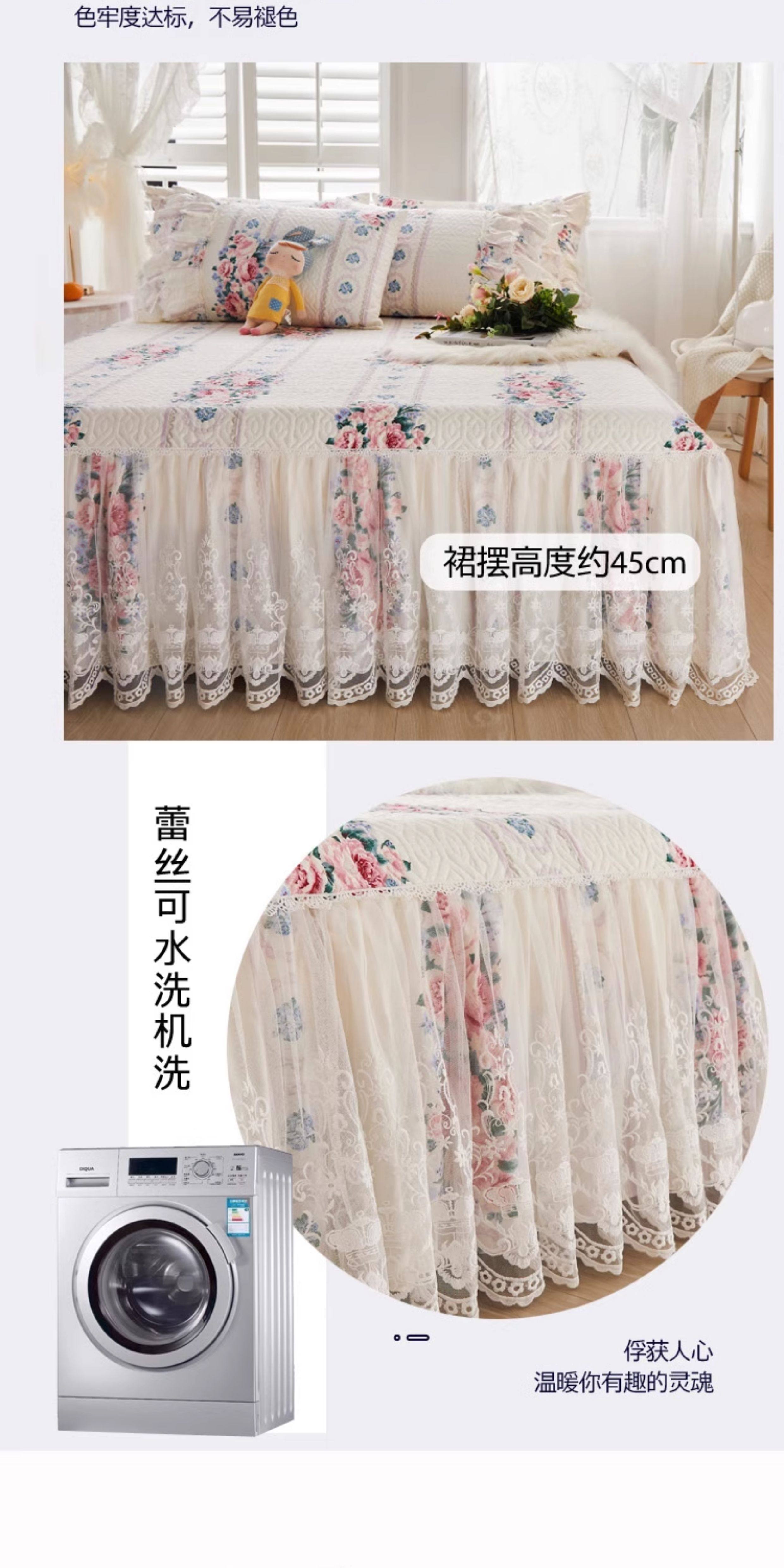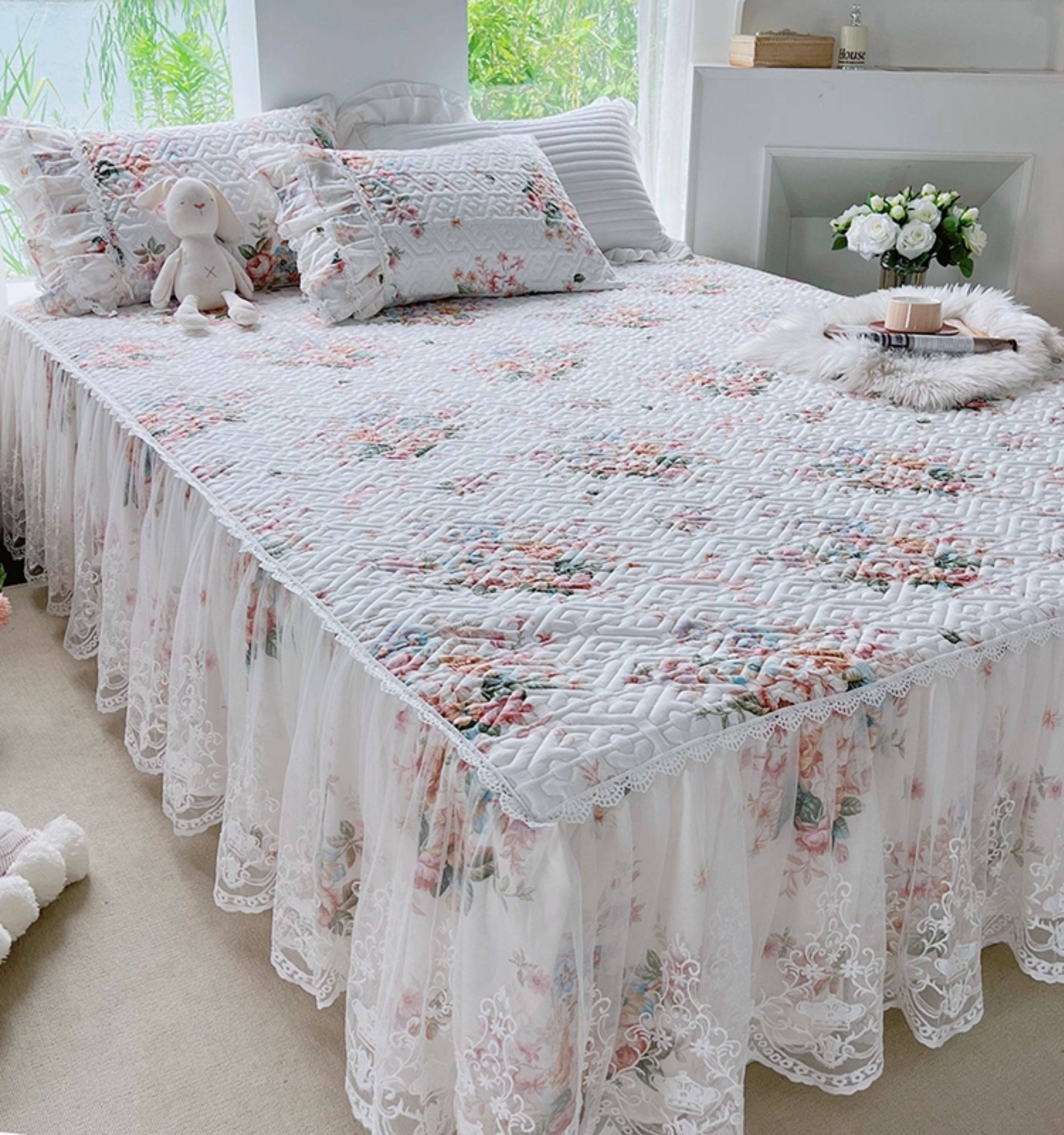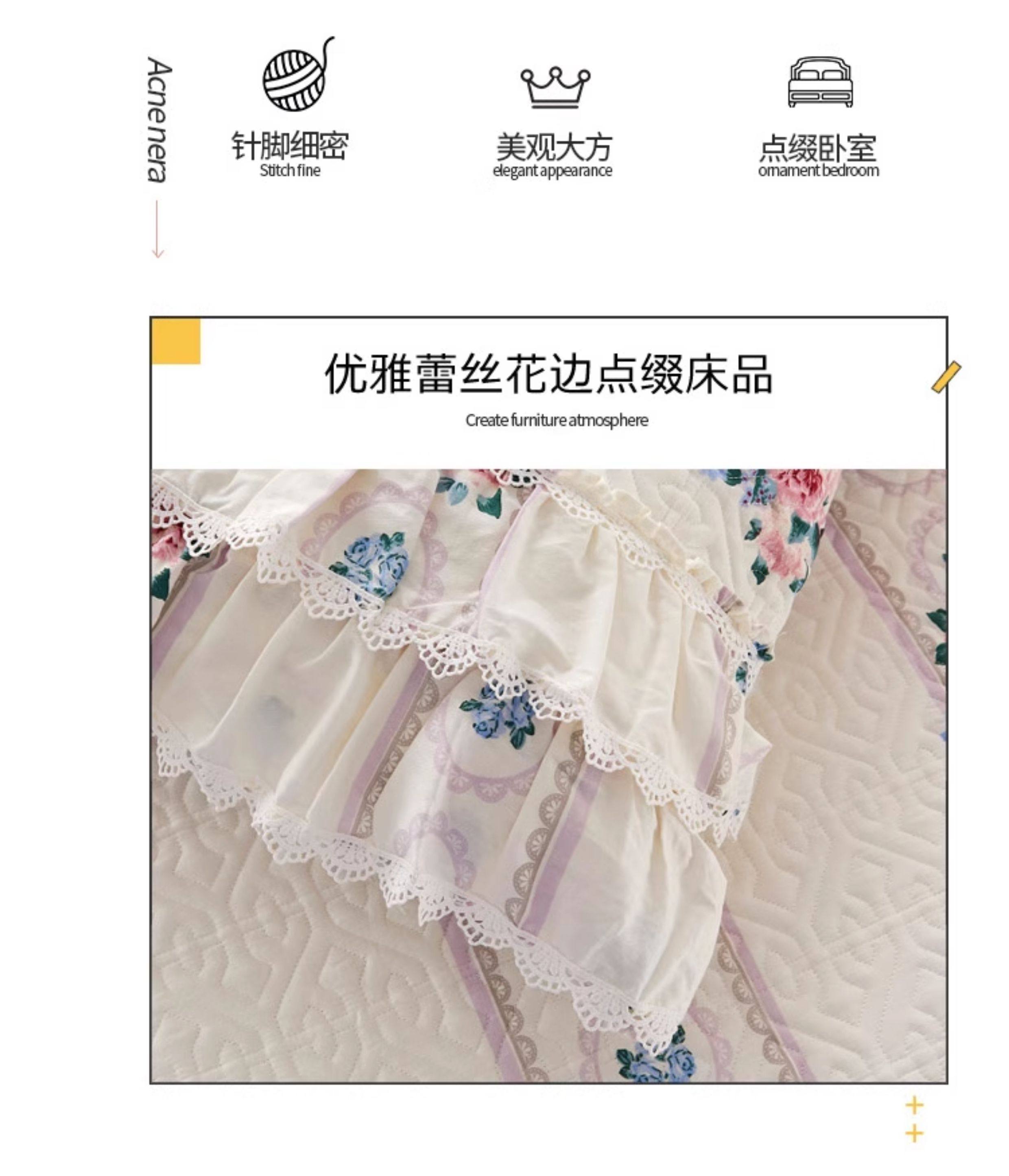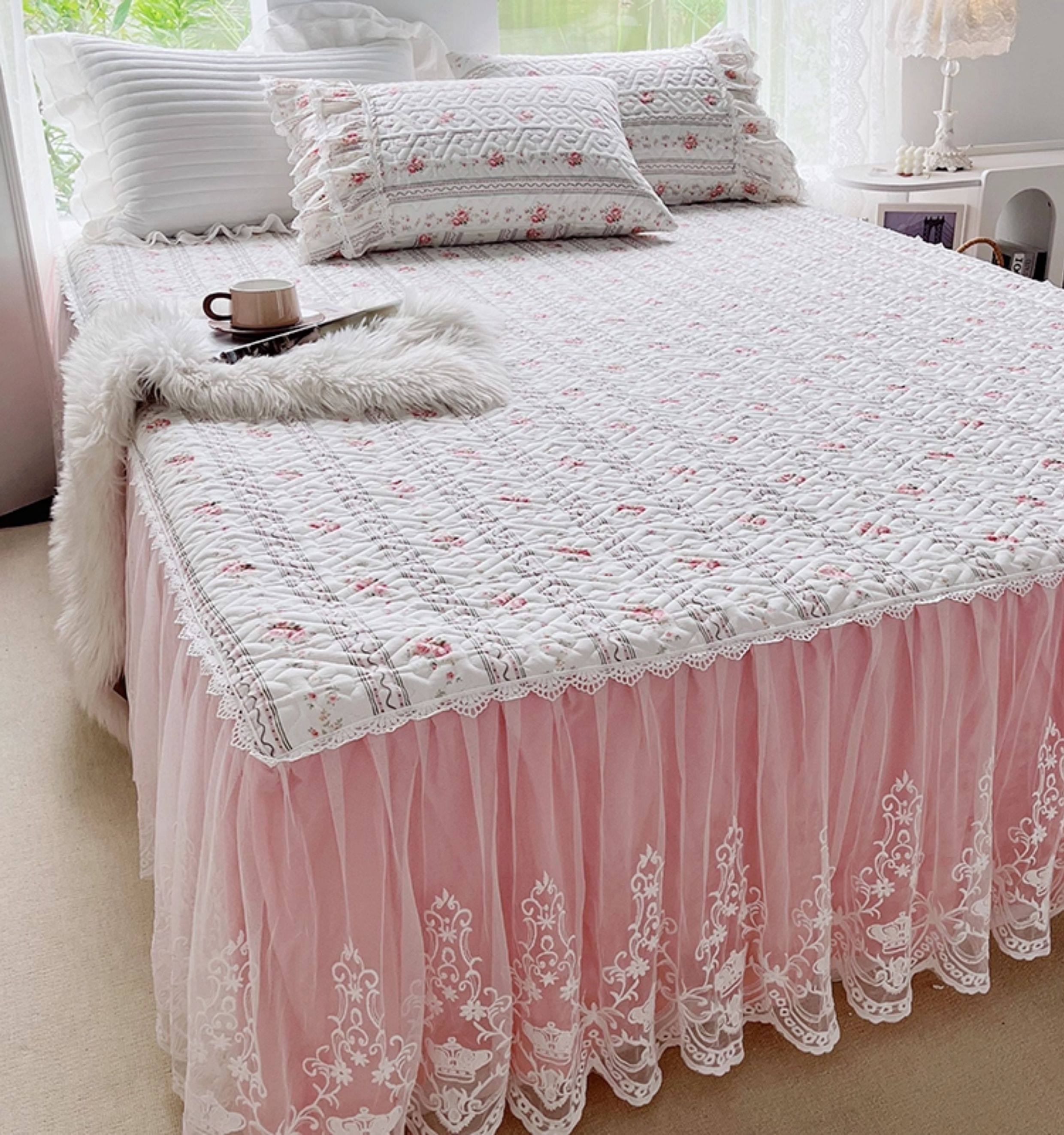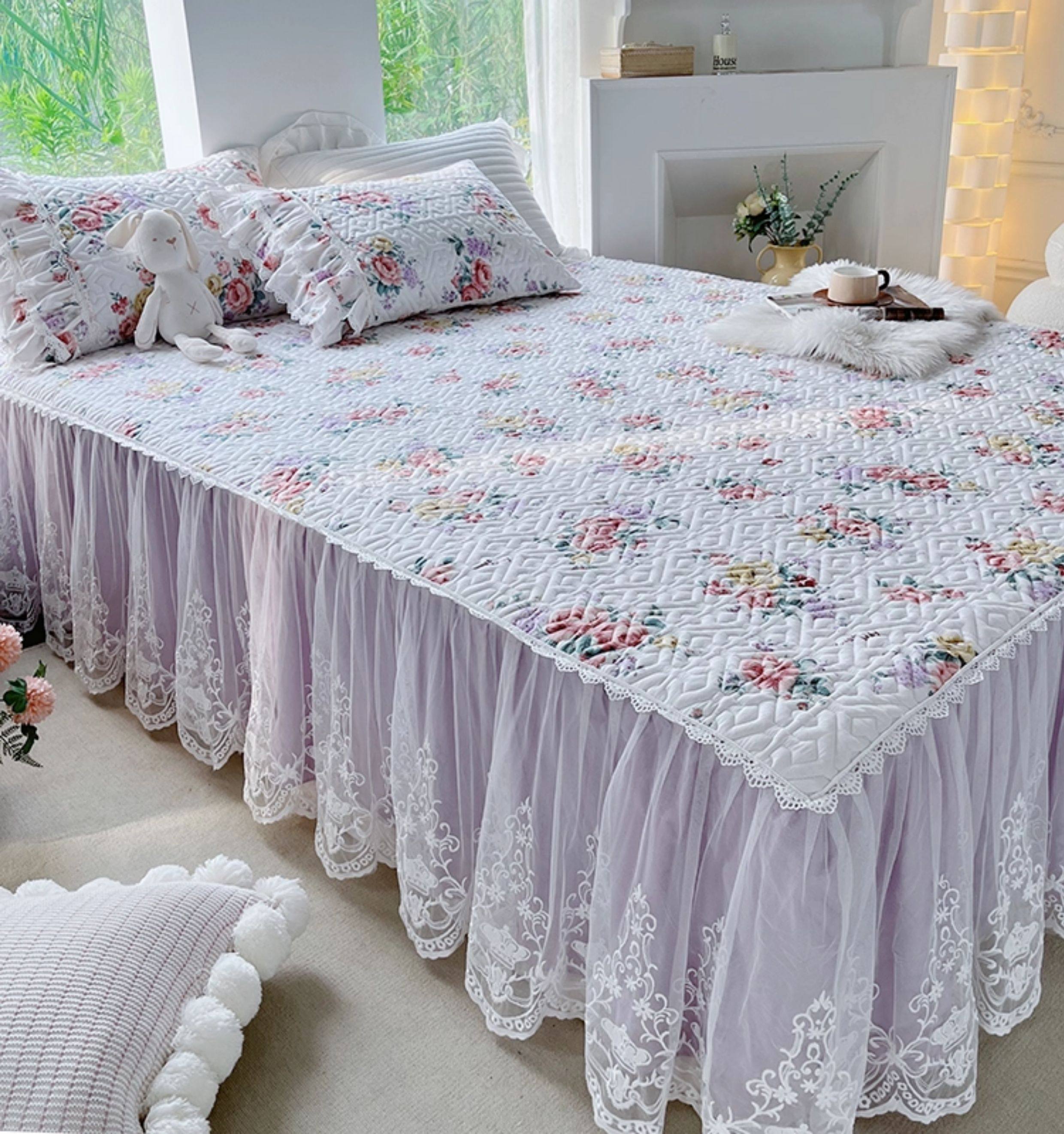French Lace Bed Skirt Single Piece Pure Cotton Thickened Bedspread Three-Piece Set European Style All-Cotton Non-Slip Bed Cover Pastoral Princess Style