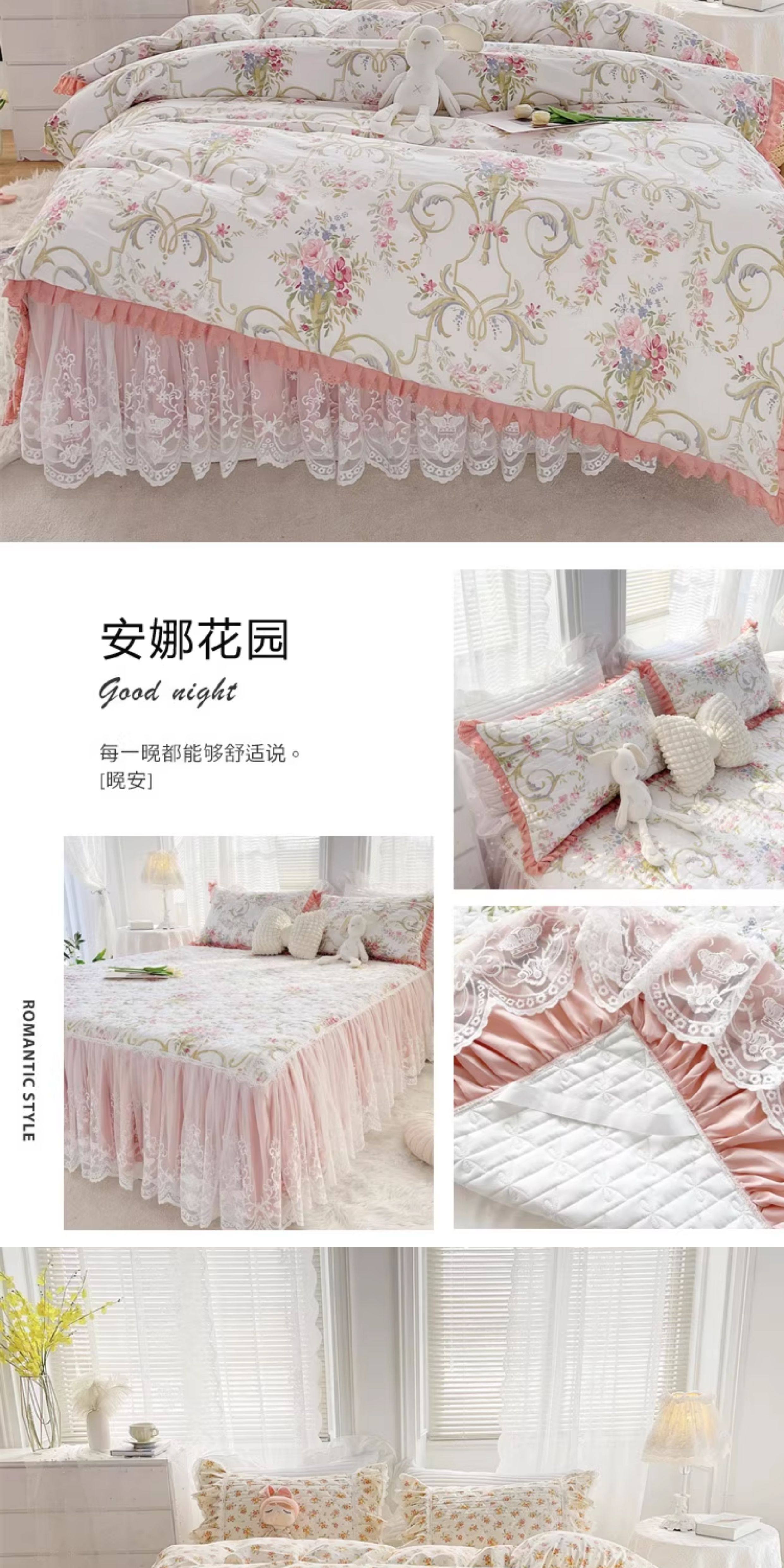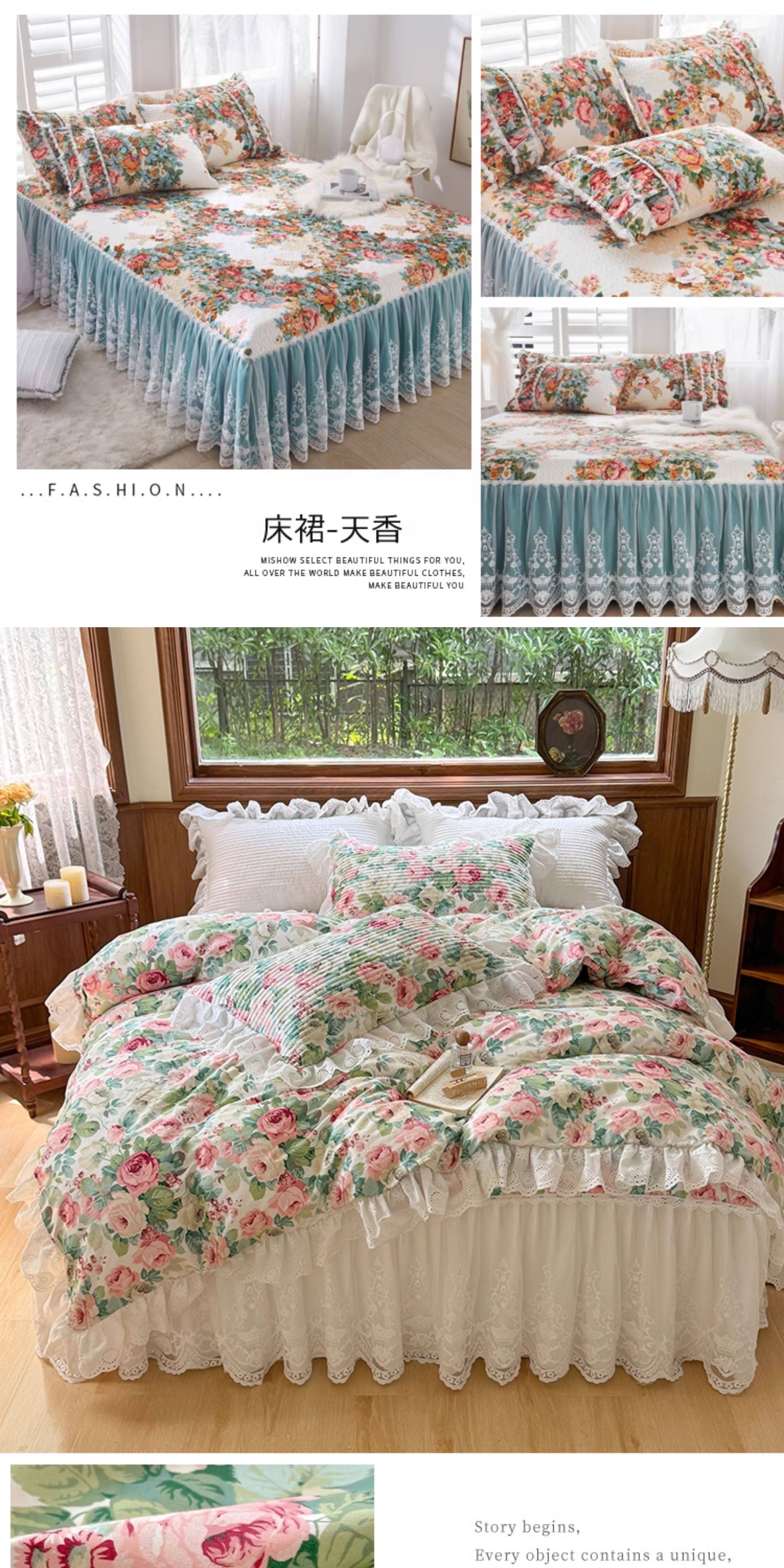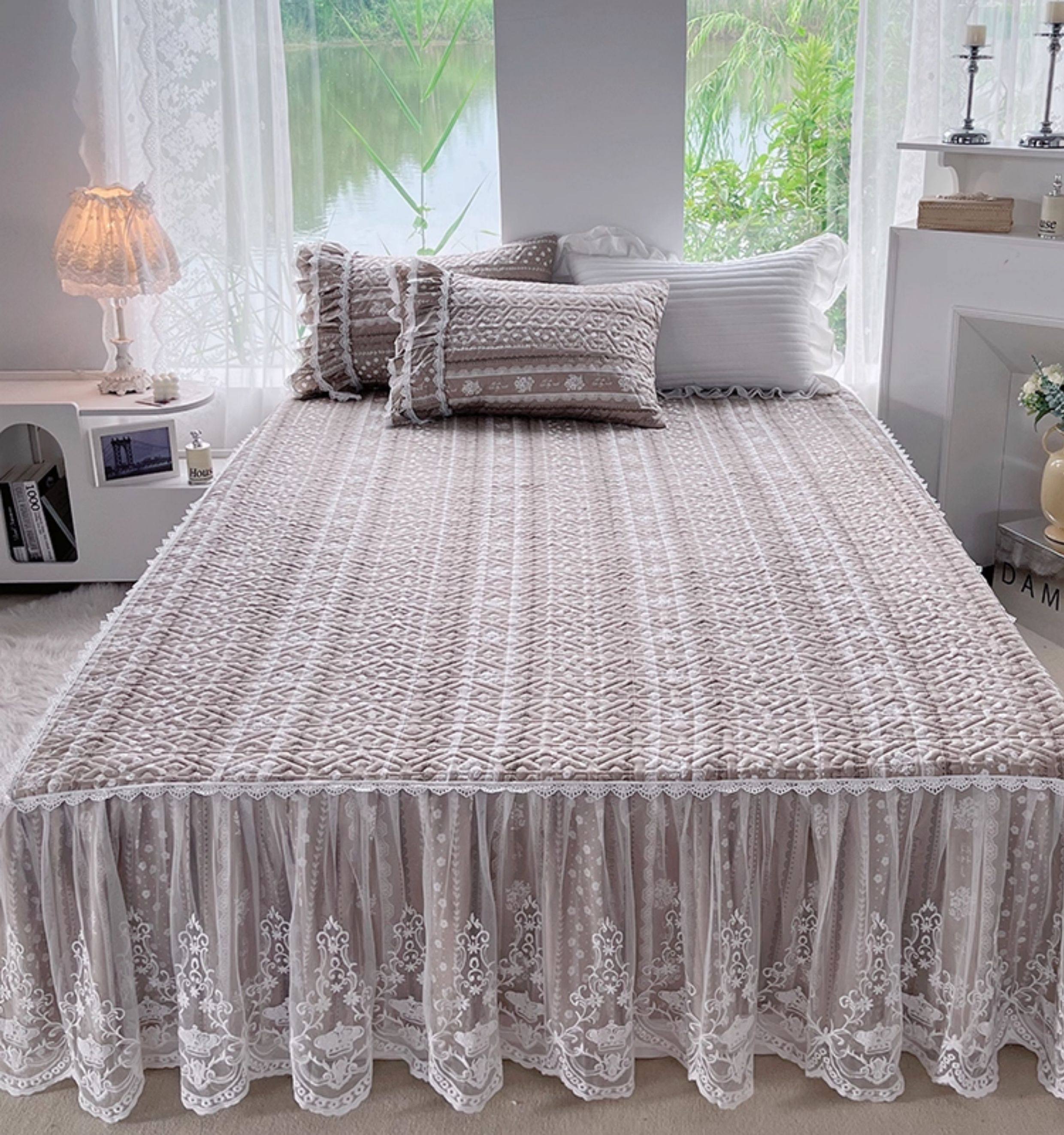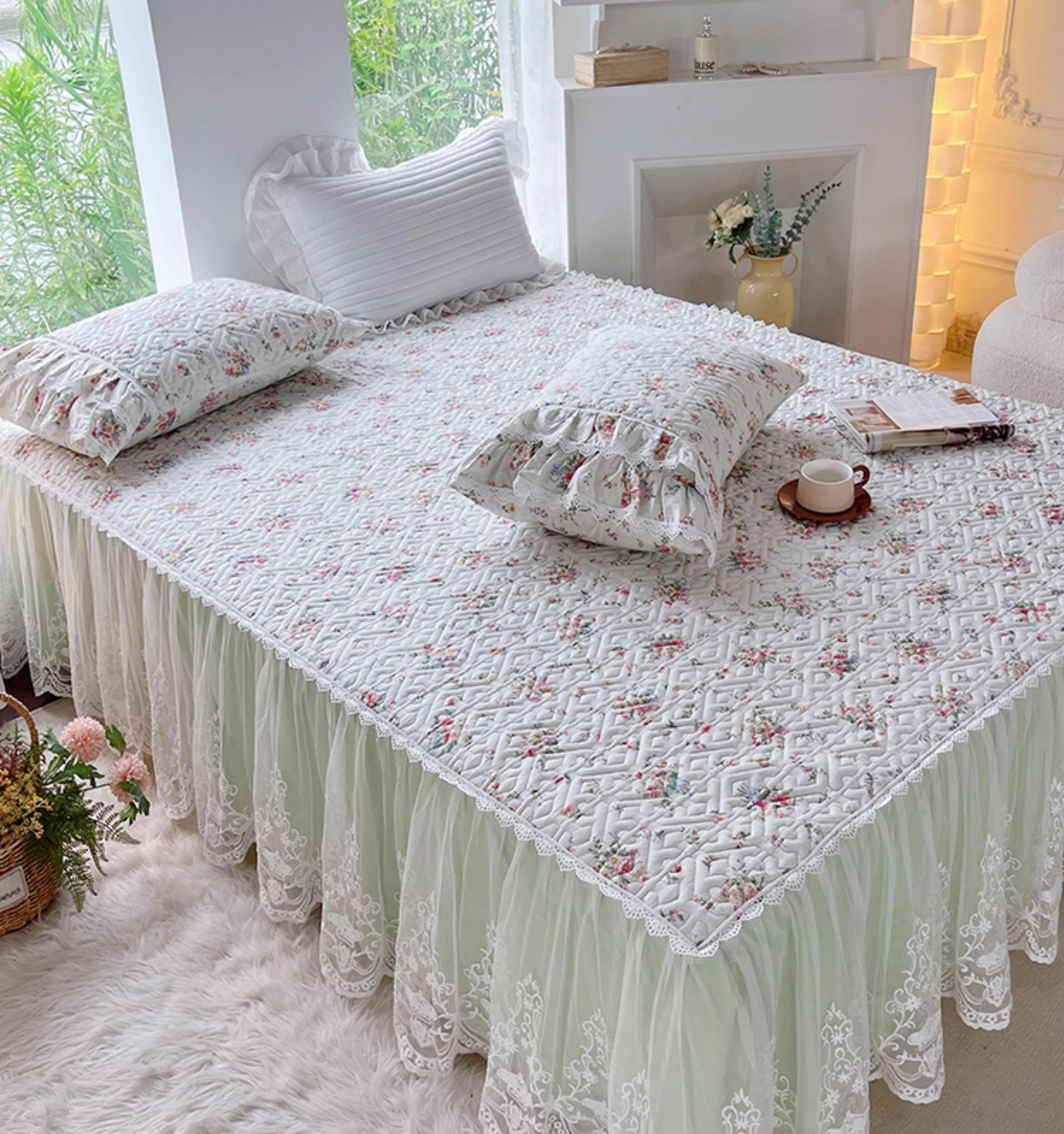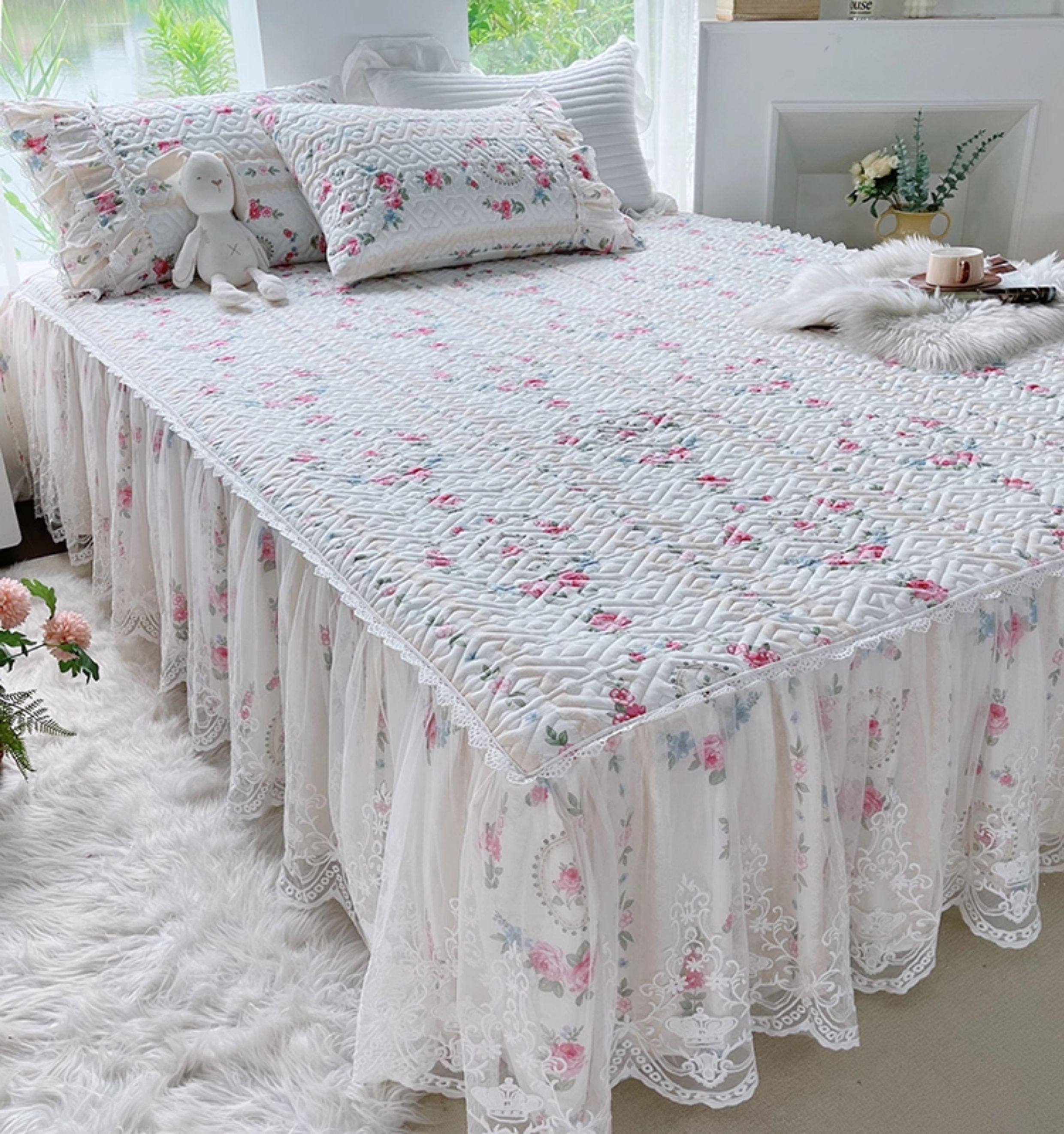 French Lace Bed Skirt Single Piece Pure Cotton Thickened Bedspread Three-Piece Set European Style All-Cotton Non-Slip Bed Cover Pastoral Princess Style
