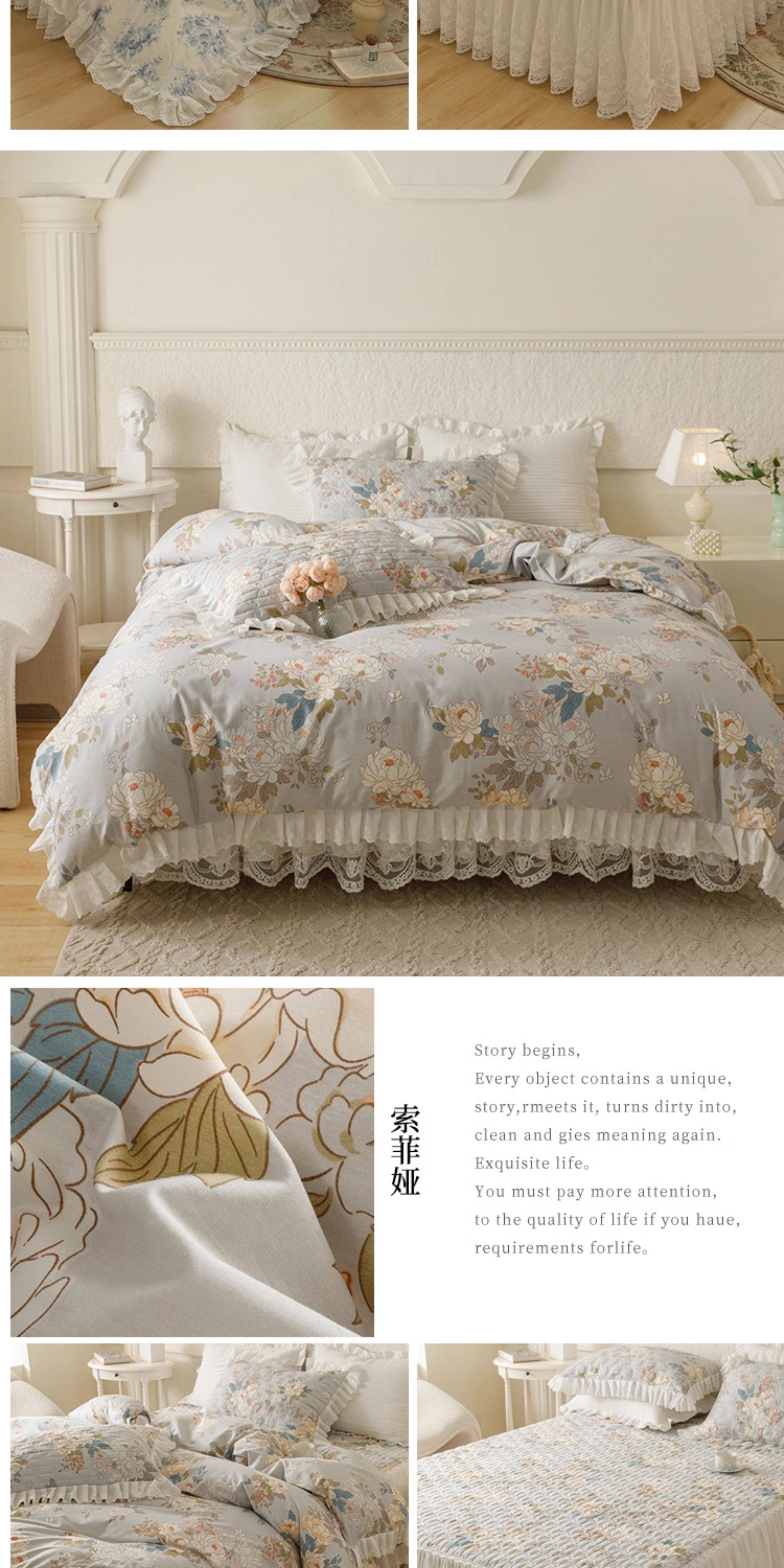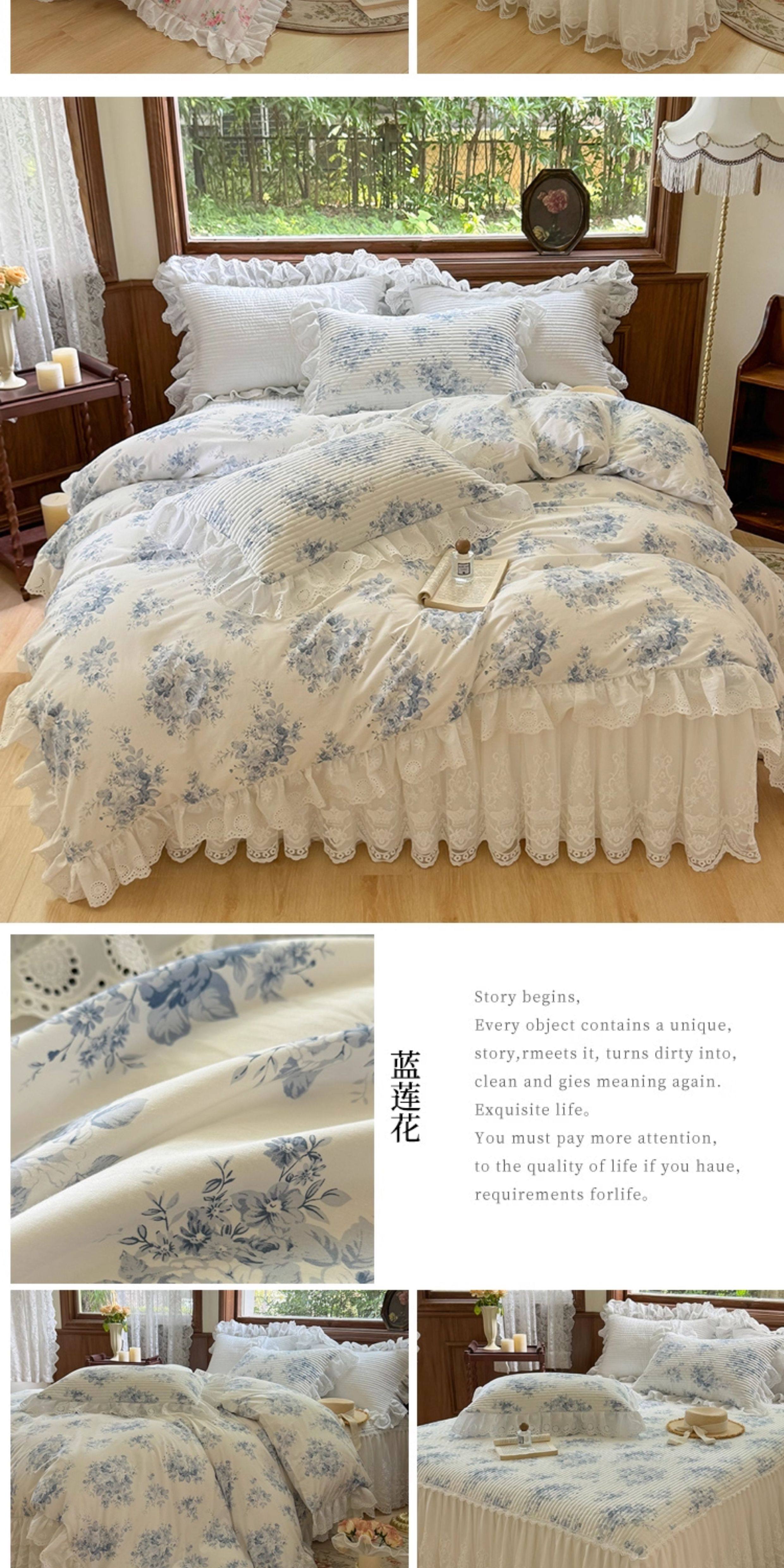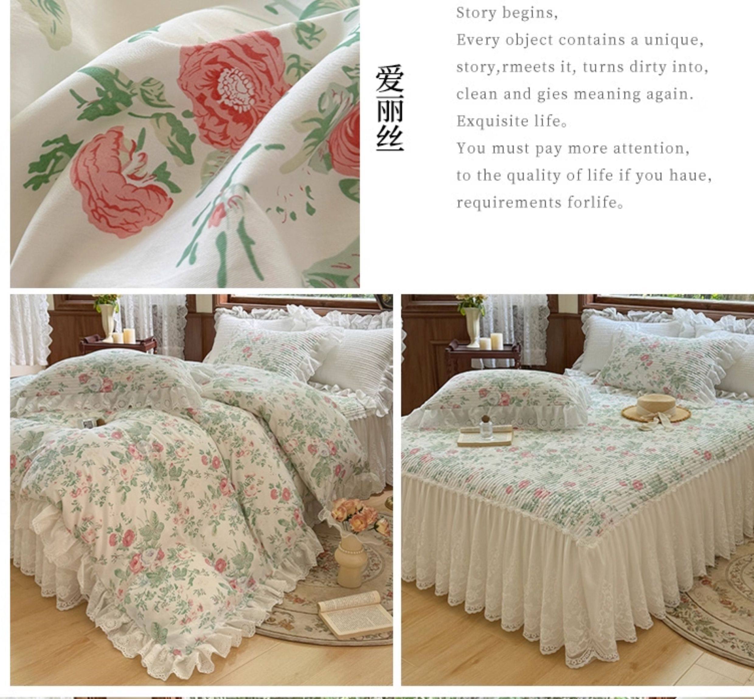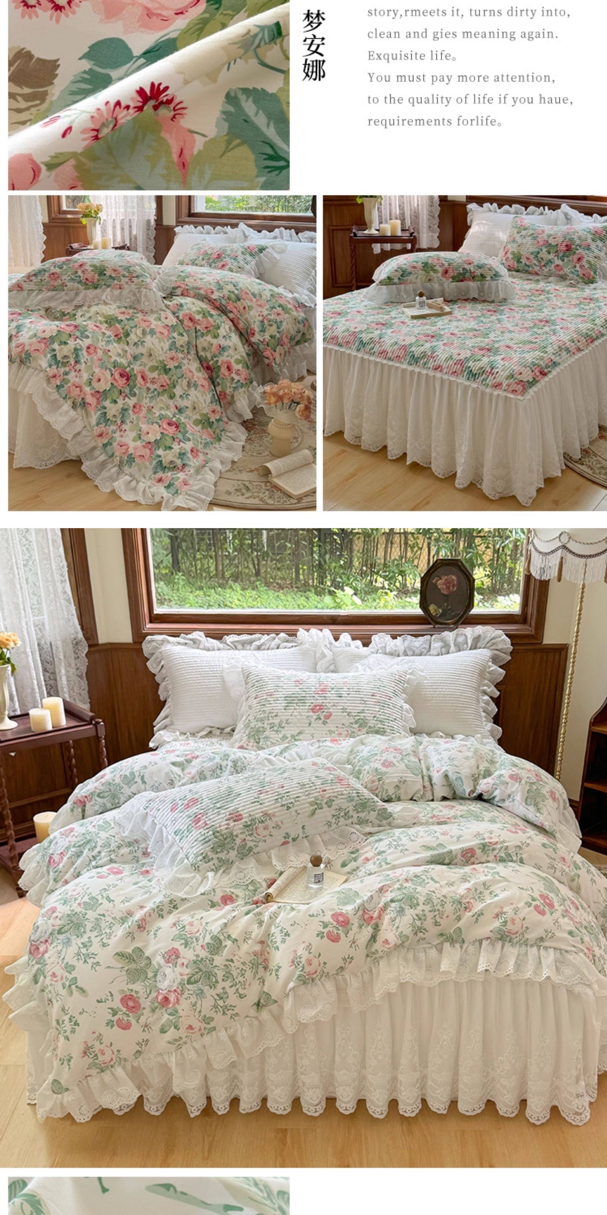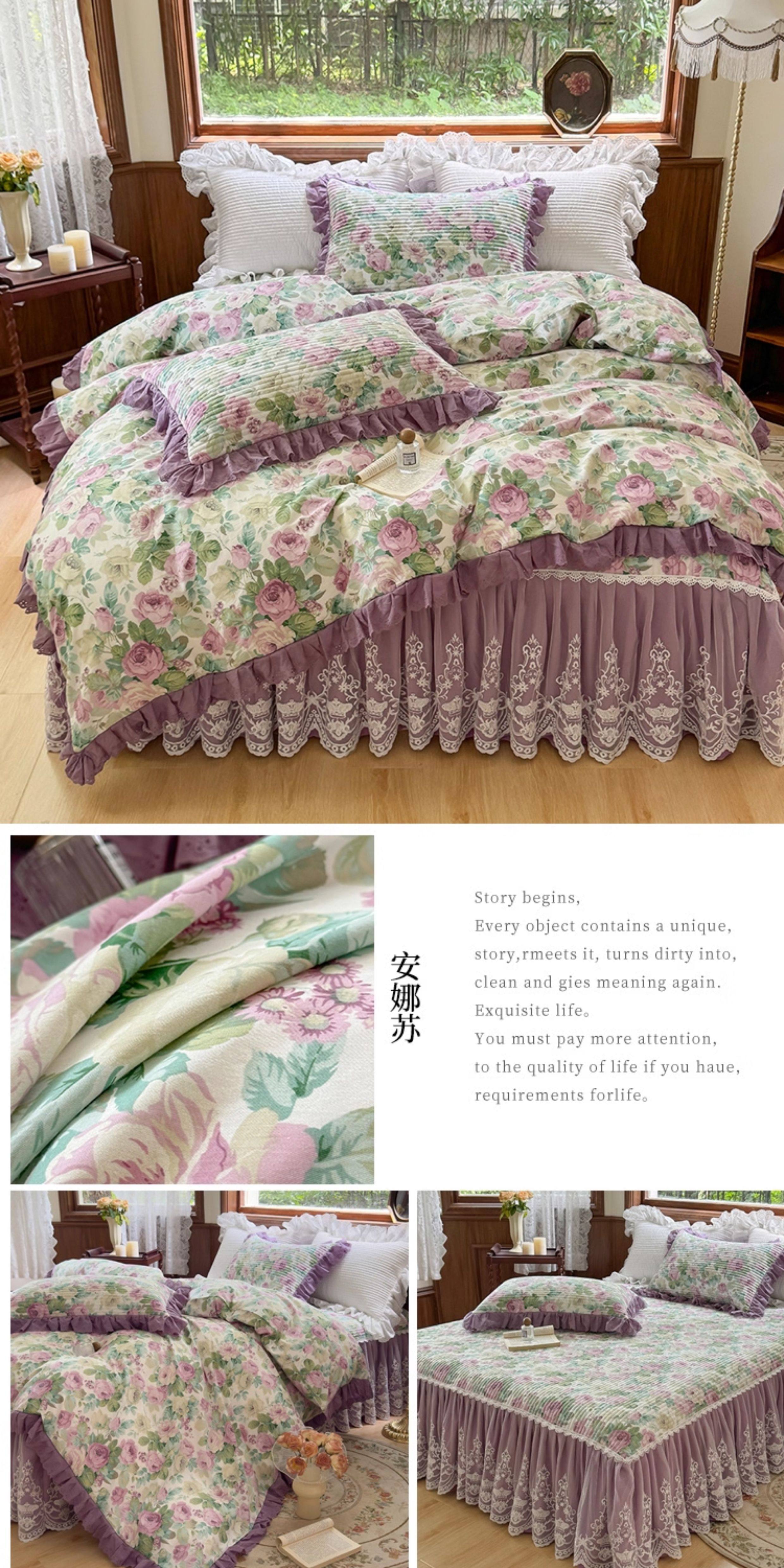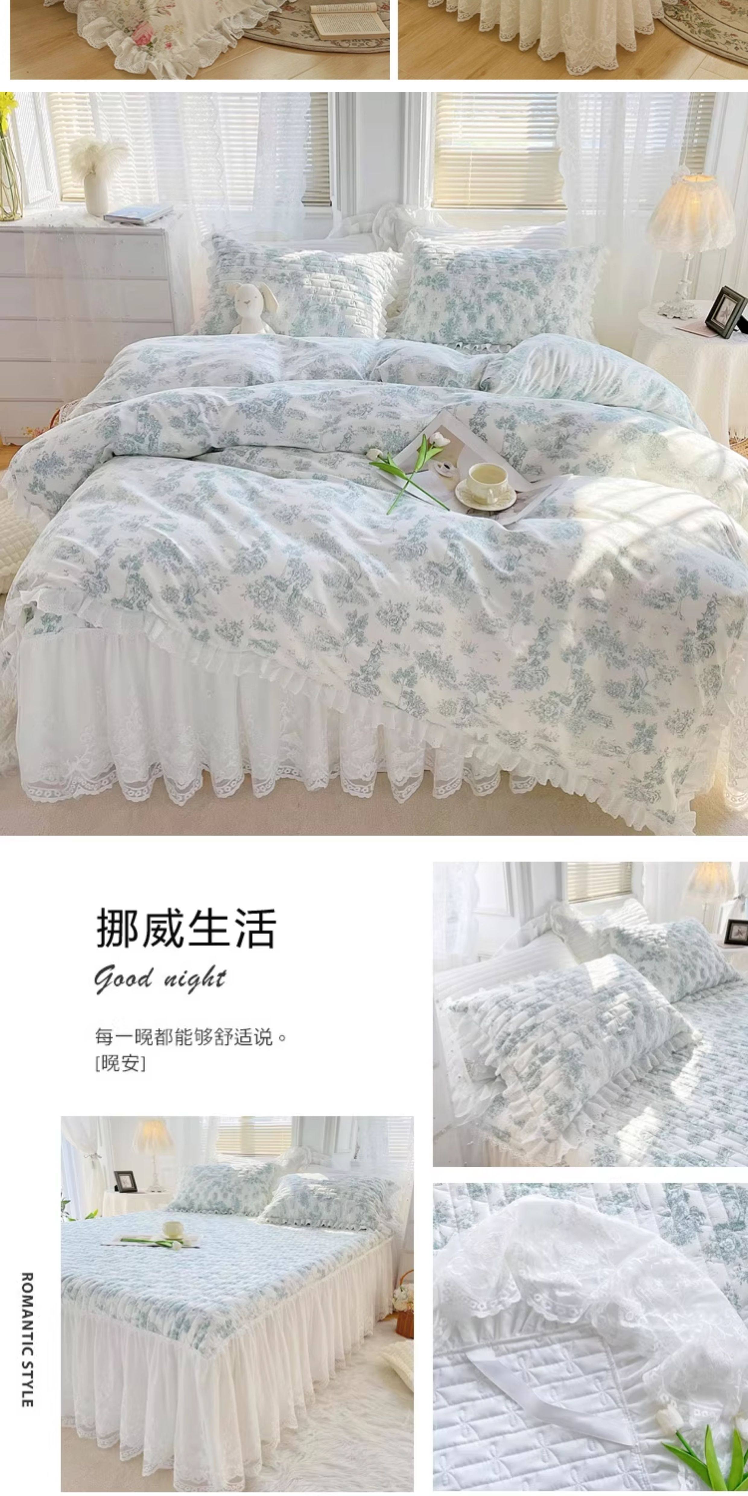 French Lace Bed Skirt Single Piece Pure Cotton Thickened Bedspread Three-Piece Set European Style All-Cotton Non-Slip Bed Cover Pastoral Princess Style