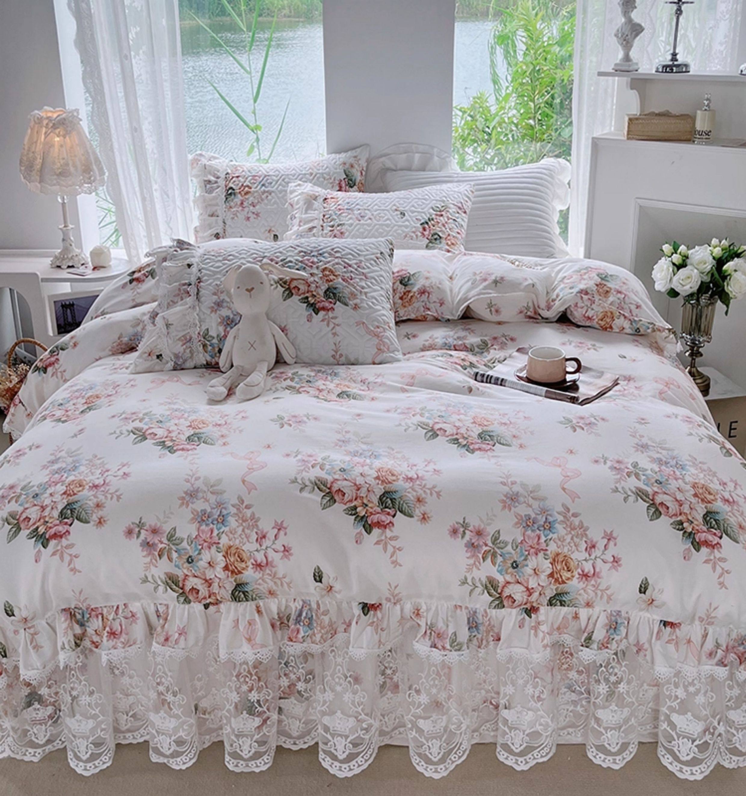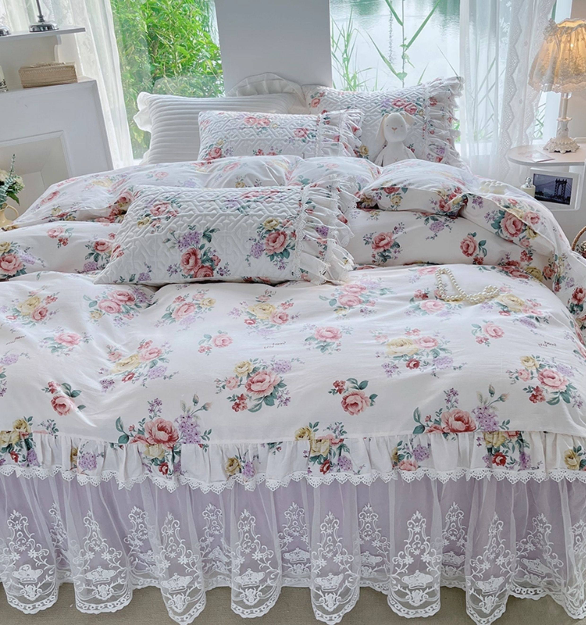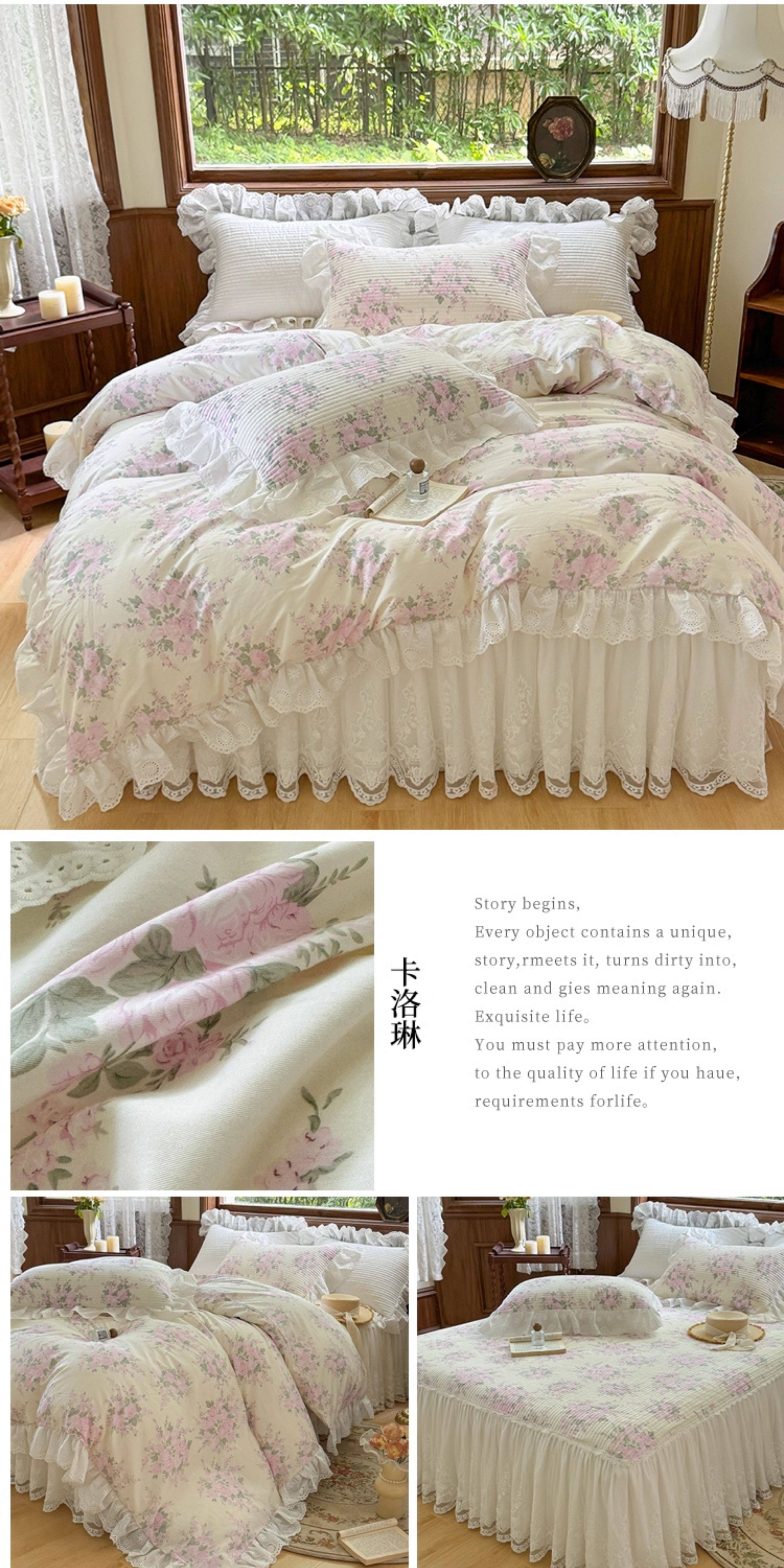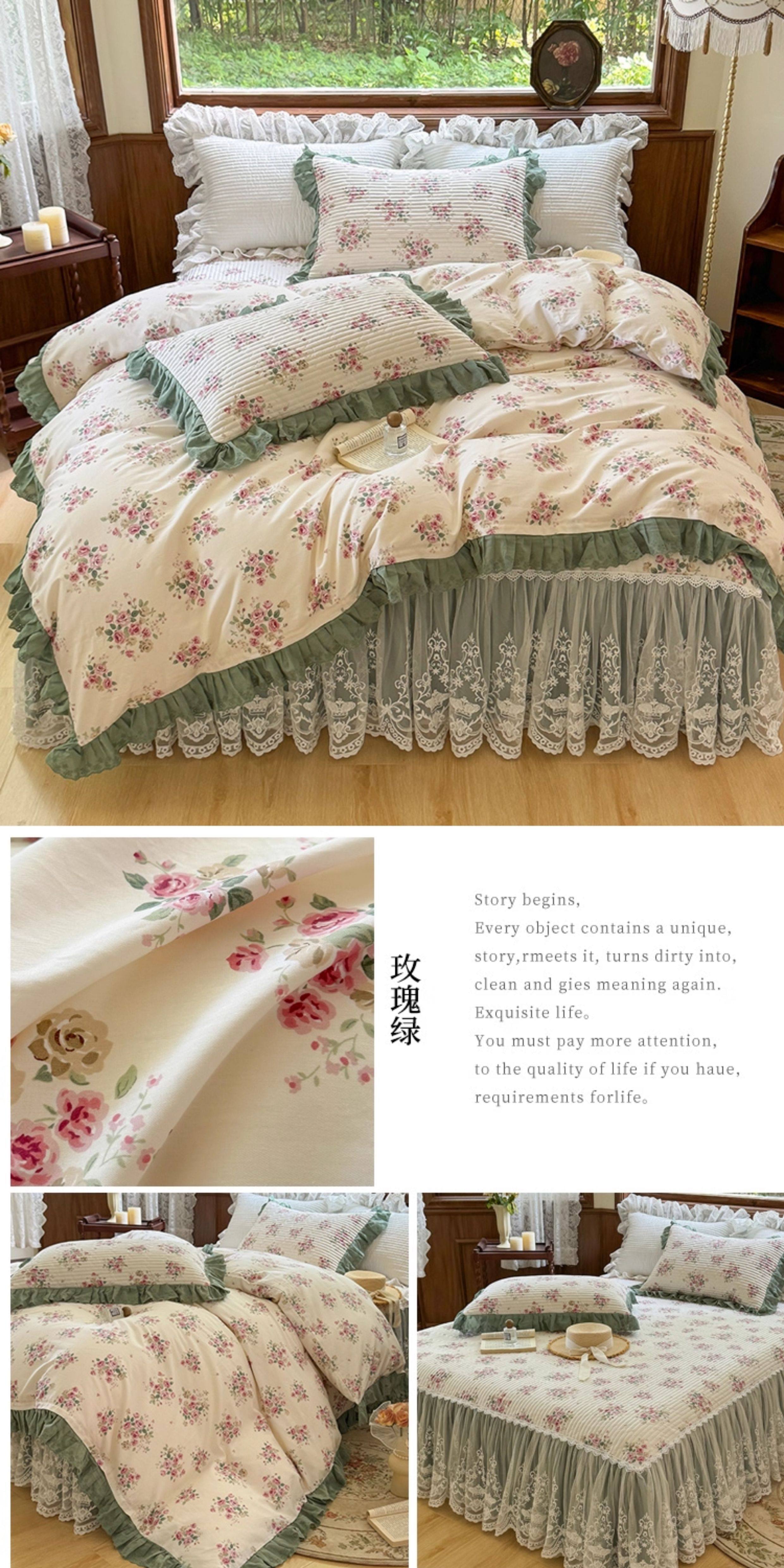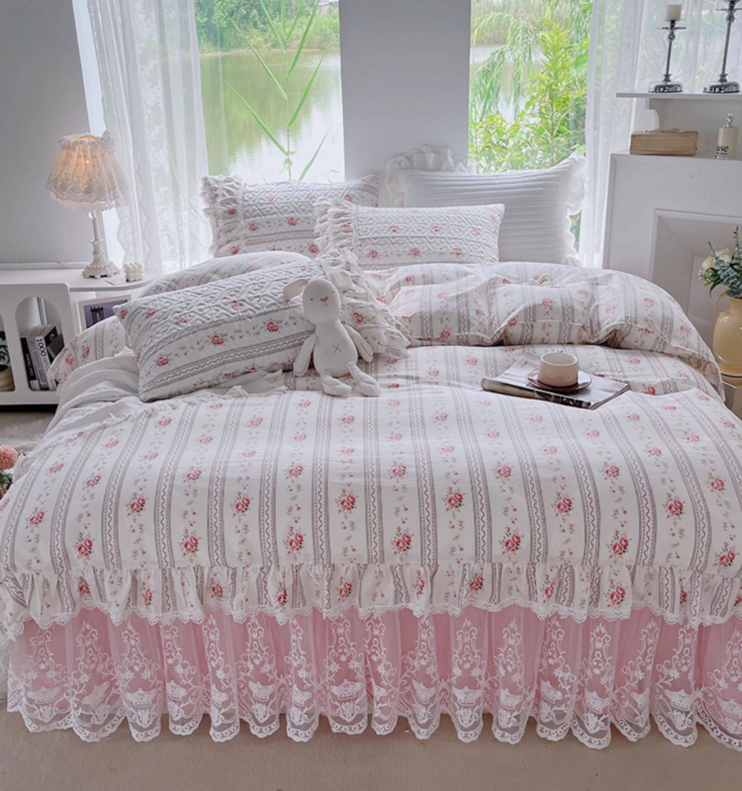 French Lace Bed Skirt Single Piece Pure Cotton Thickened Bedspread Three-Piece Set European Style All-Cotton Non-Slip Bed Cover Pastoral Princess Style