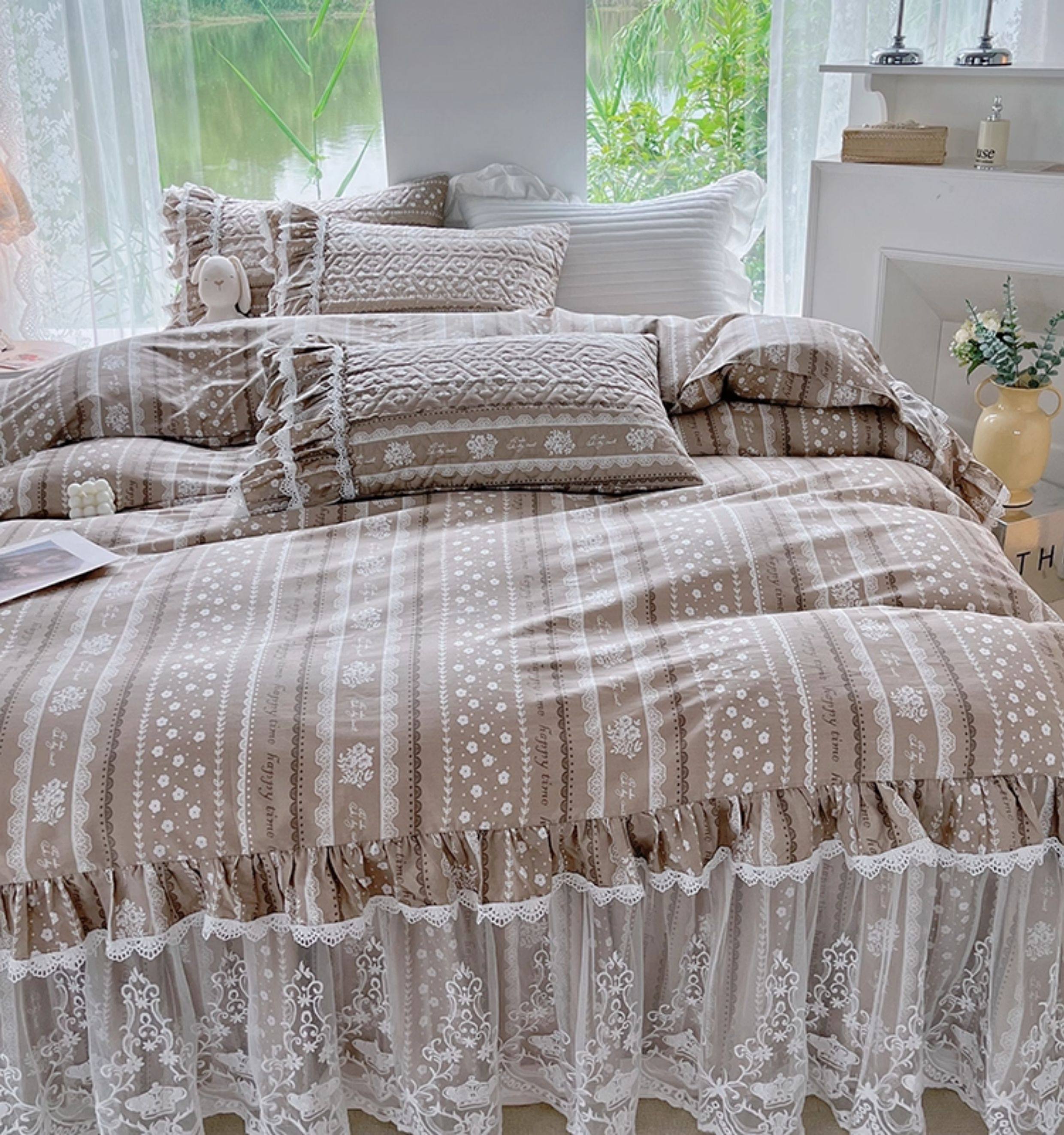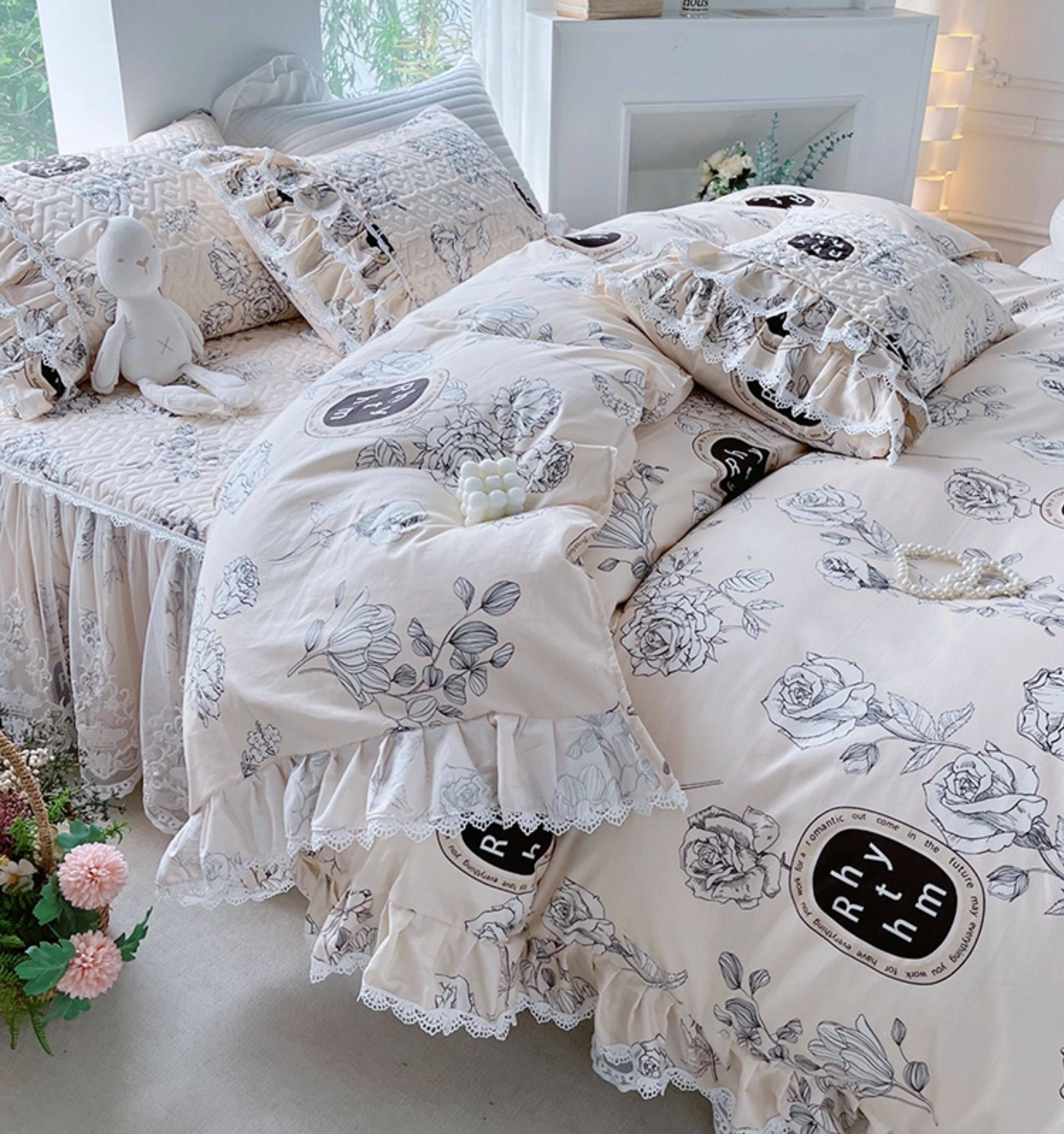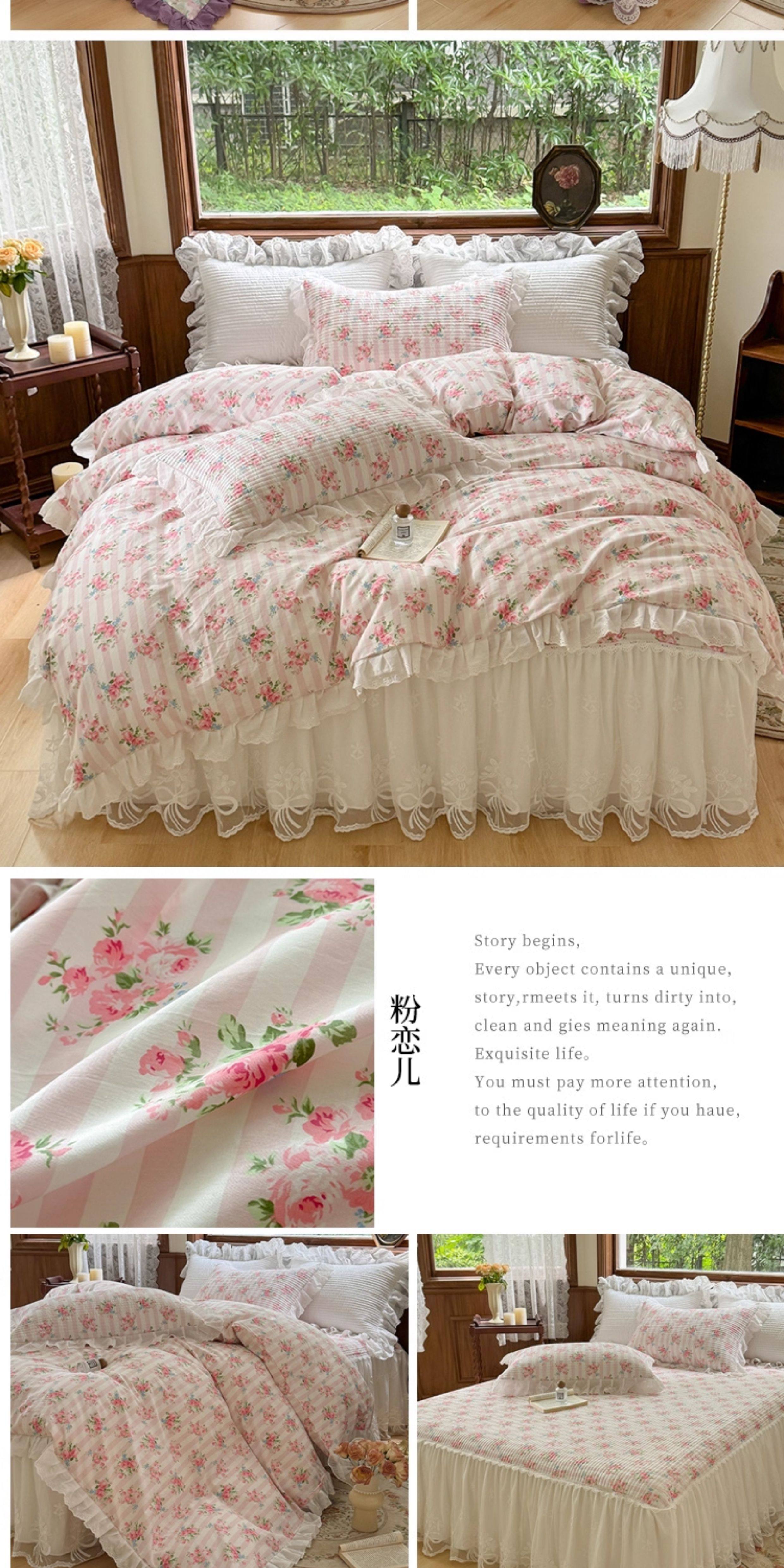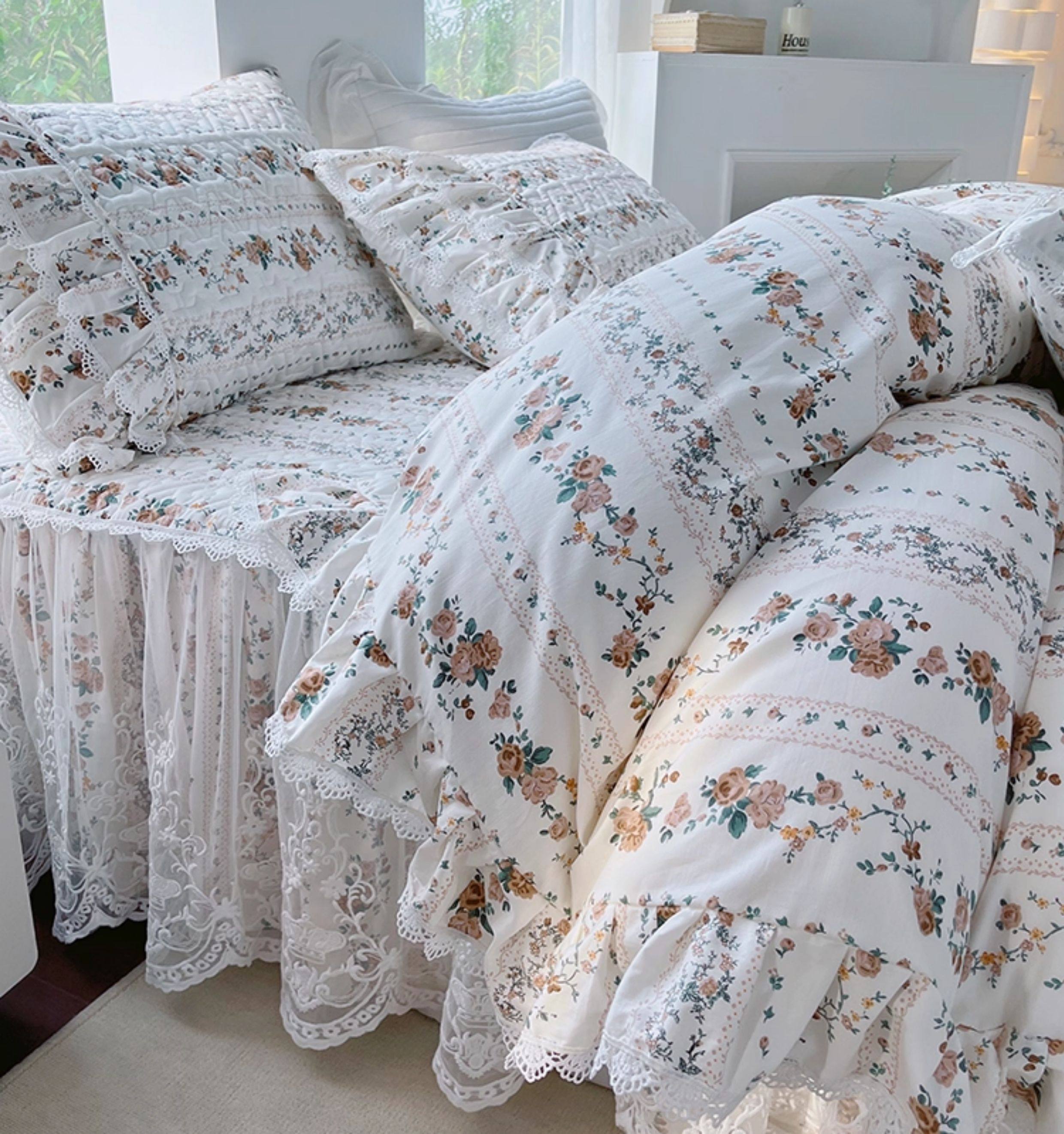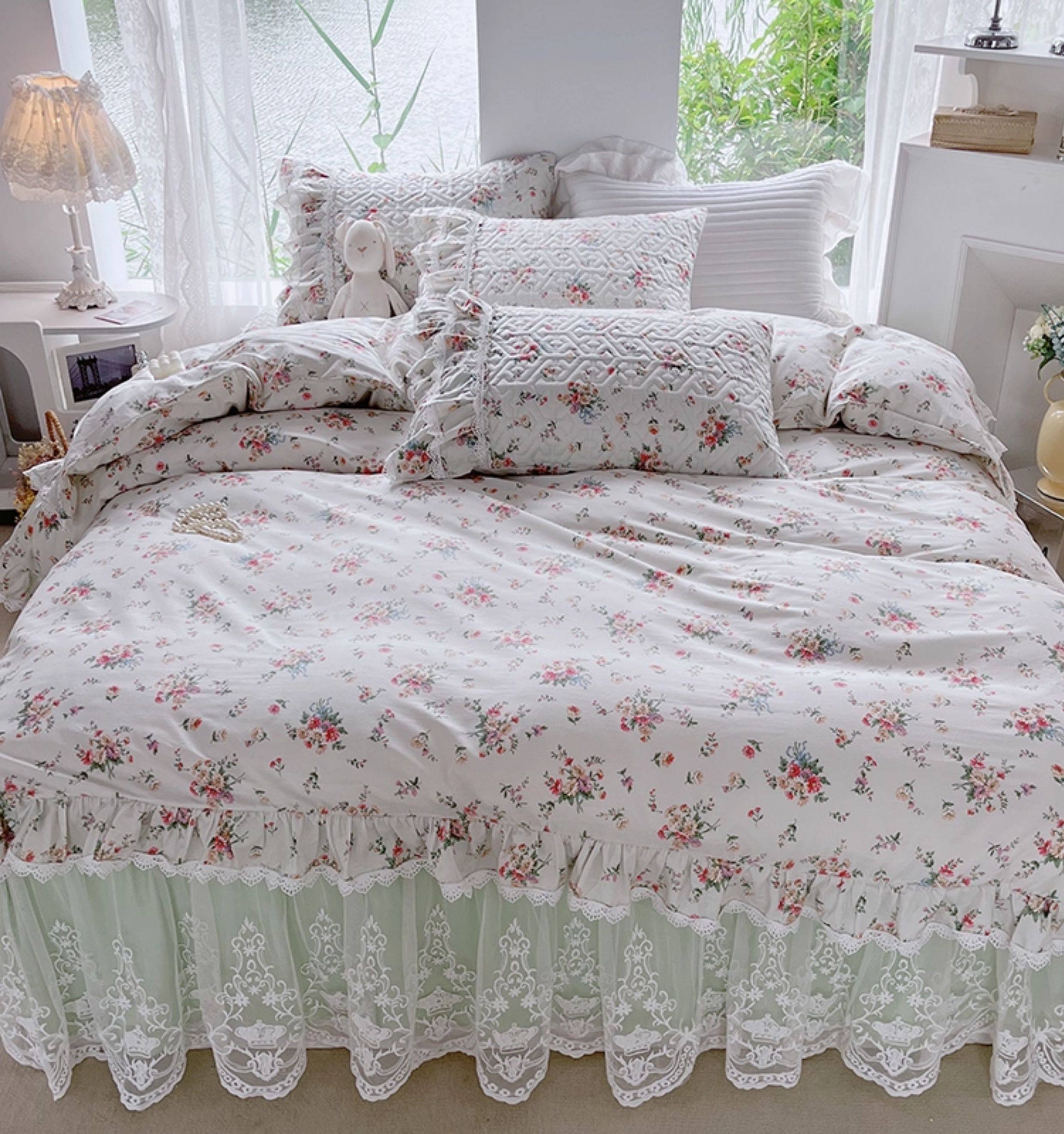 French Lace Bed Skirt Single Piece Pure Cotton Thickened Bedspread Three-Piece Set European Style All-Cotton Non-Slip Bed Cover Pastoral Princess Style