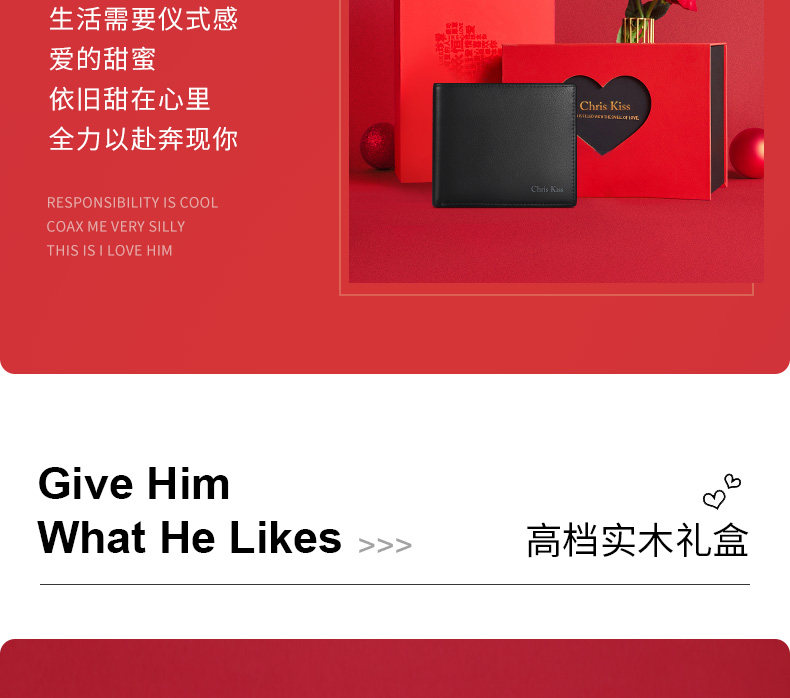 Chris Kiss Official Flagship Store Men's Wallet Short Style Genuine Leather Cowhide Wallet Business Authentic Gift Box