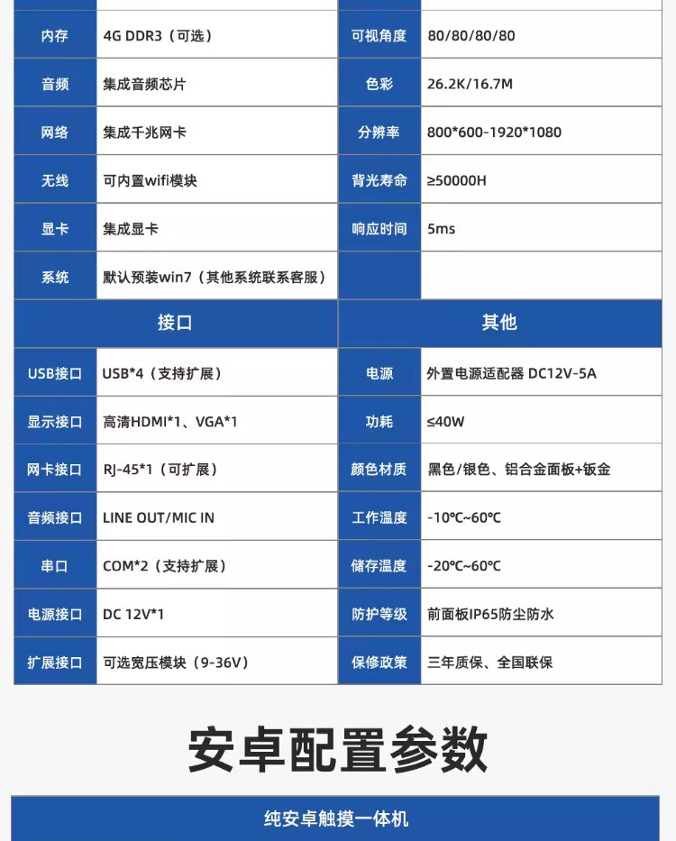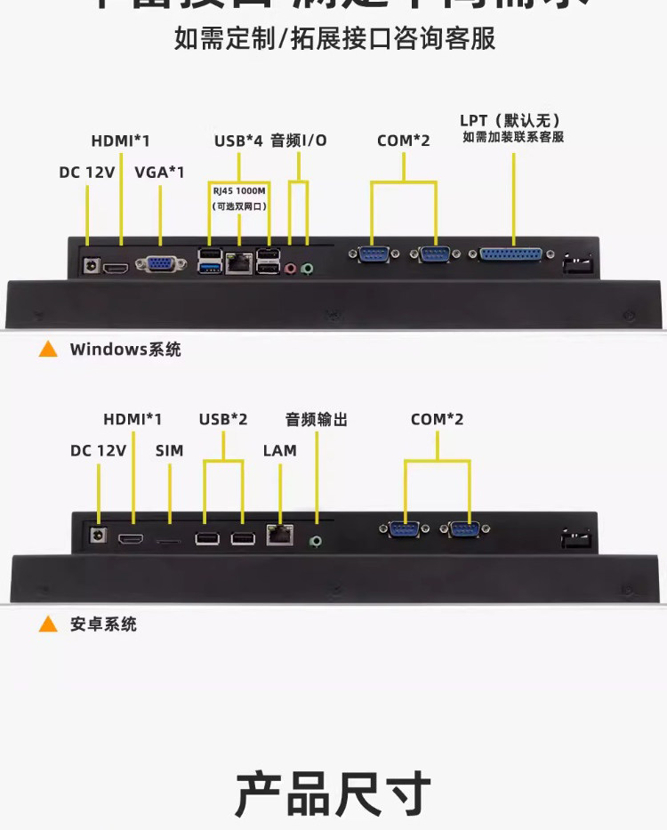 颜色分类 工业触摸显示器【无系统】,【安卓系统】RK3288(2G+16G),【安卓系统】RK3288(4G+32G),【安卓系统】RK3399(2G+16G),【安卓系统】RK3399(4G+64G),【安卓系统】RK3566(4G+32G),【安卓系统】RK3588(4G+32G),【Win7/10】赛扬J6412(4G+128G),【Win7/10】赛扬J1800(4G+64G),【Win7/10】赛扬J1900(4G+64G),【Win7/10】赛扬J1900(4G+128G),【Win7/10】酷睿3代I3(4G+64G),【Win7/10】酷睿3代I5(4G+128G),【Win7/10】酷睿4代I5/4+64G/WiFi,【Win7/10】酷睿4代I5/8+128G/WiFi,【Win7/10】酷睿7代I3/4+128G/WiFi,【Win7/10】酷睿7代I3/8+128G/WiFi,【Win7/10】酷睿7代I5/4+128G/WiFi,【Win7/10】酷睿7代I5/8+128G/WiFi,【Win7/10】酷睿8代I3/4+128G/WiFi,【Win7/10】酷睿8代I5/8+128G/WiFi,【Win7/10】酷睿8代I7/8+128G/WiFi,【Win7/10】酷睿10代I5/8+128G,【Win7/10】酷睿10代I7/8+128G,【Win7/10】酷睿12代I7/8+128G,【Win7/10】酷睿3代I5(4G+64G),【Win7/10】酷睿3代I7(4G+64G)
