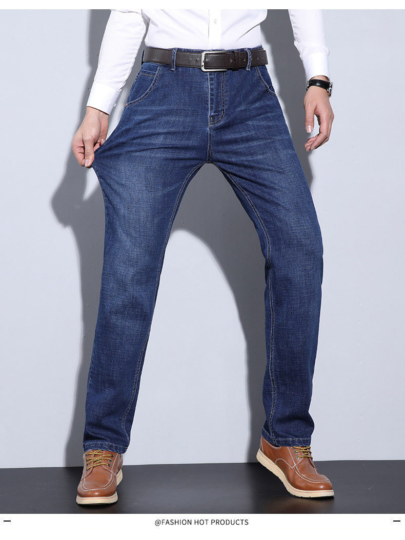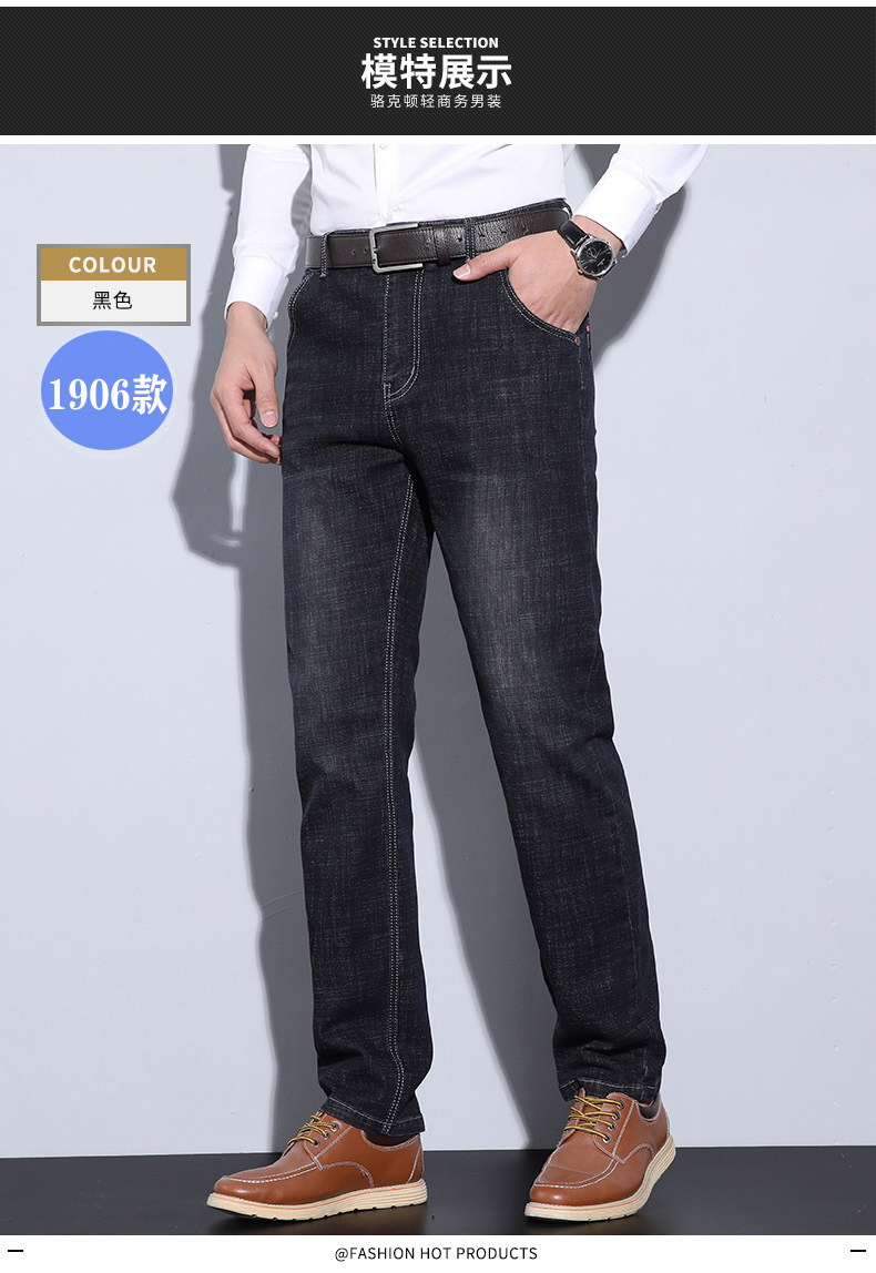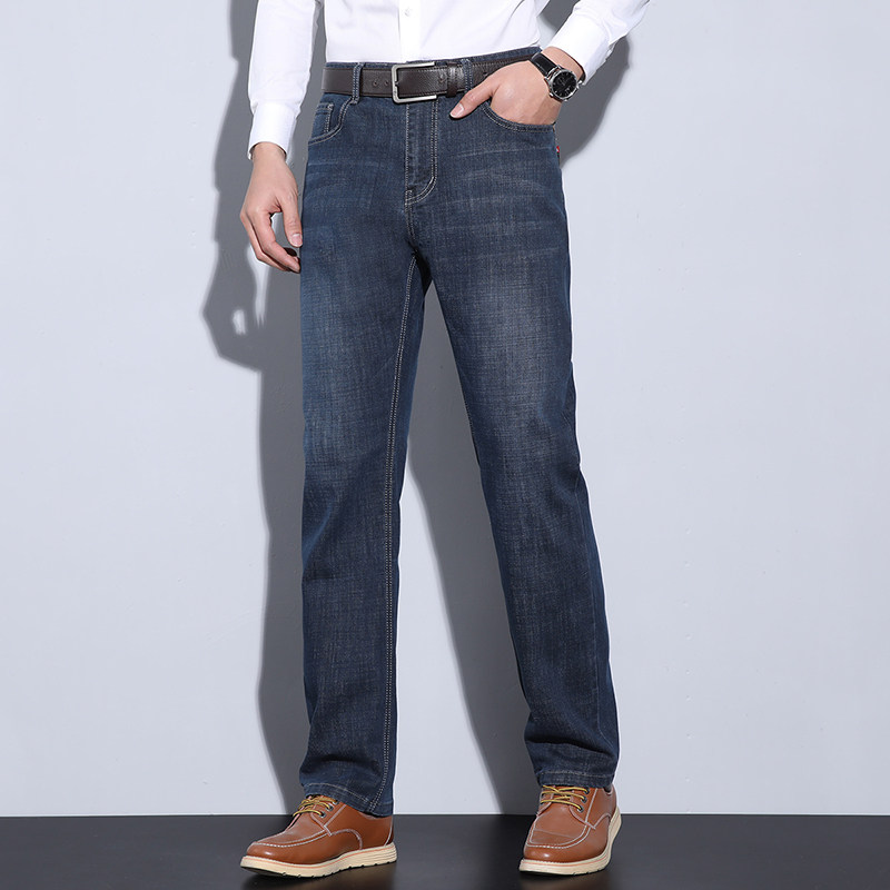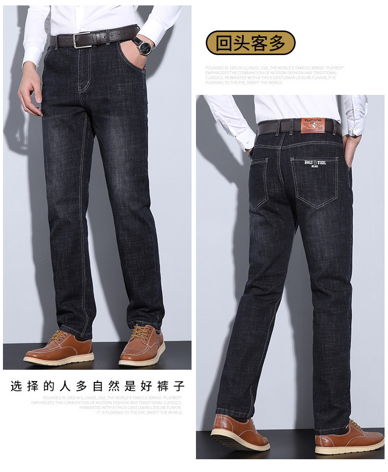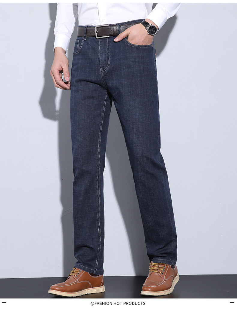 Новые мужские джинсы 2025 года: прямые, свободные, на флисовой подкладке, утепленные, с высокой талией, для делового повседневного стиля, длинные брюки
