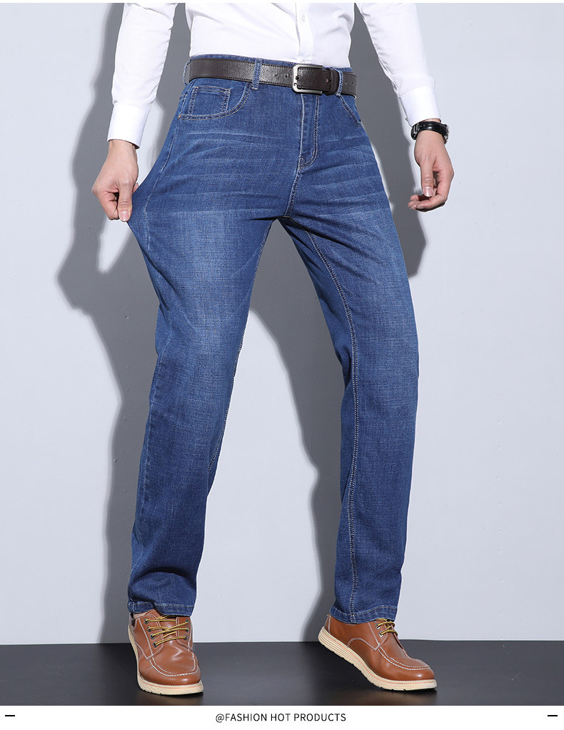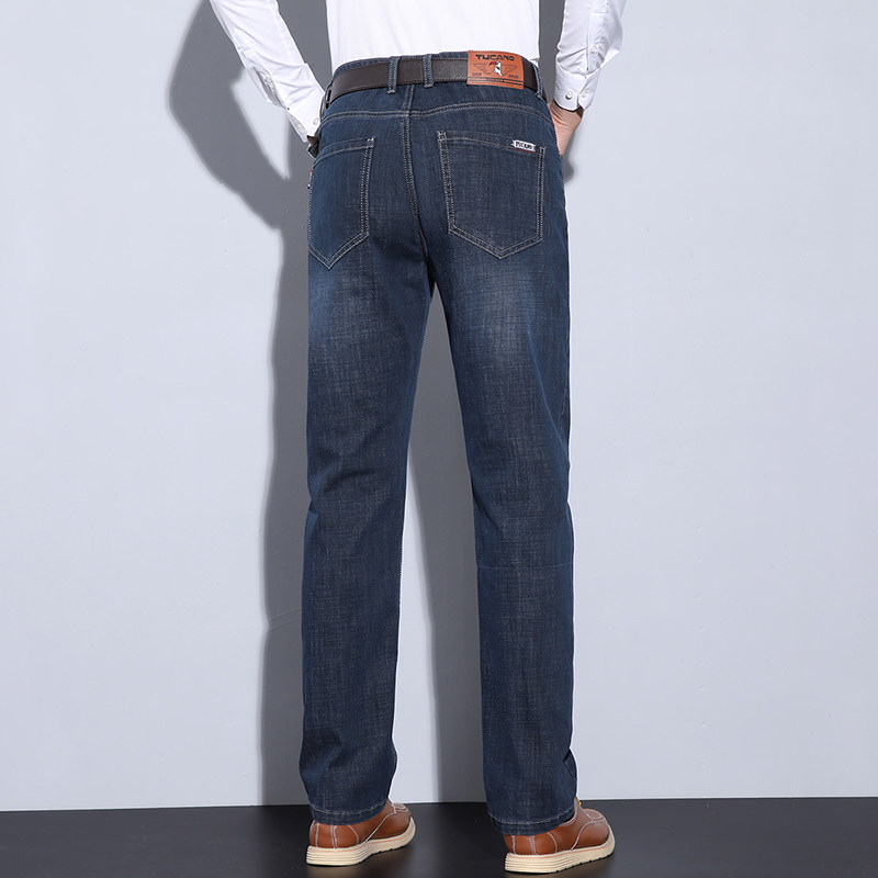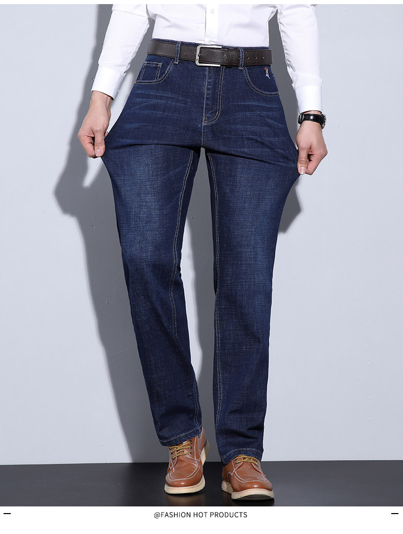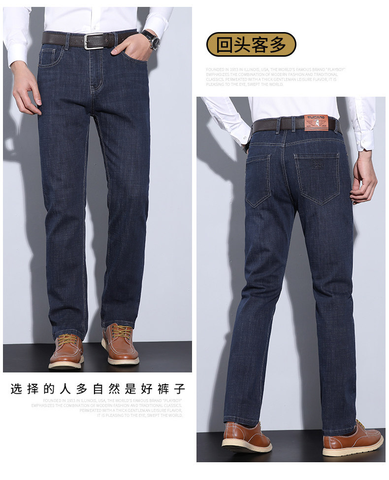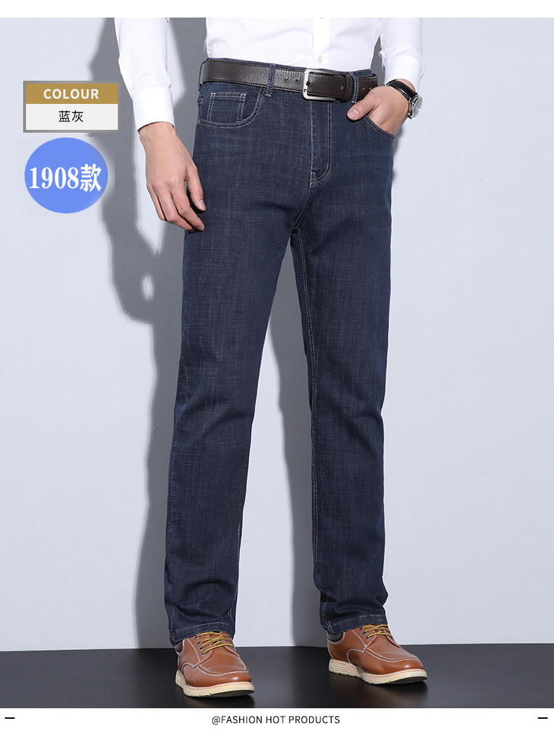 Новые мужские джинсы 2025 года: прямые, свободные, на флисовой подкладке, утепленные, с высокой талией, для делового повседневного стиля, длинные брюки