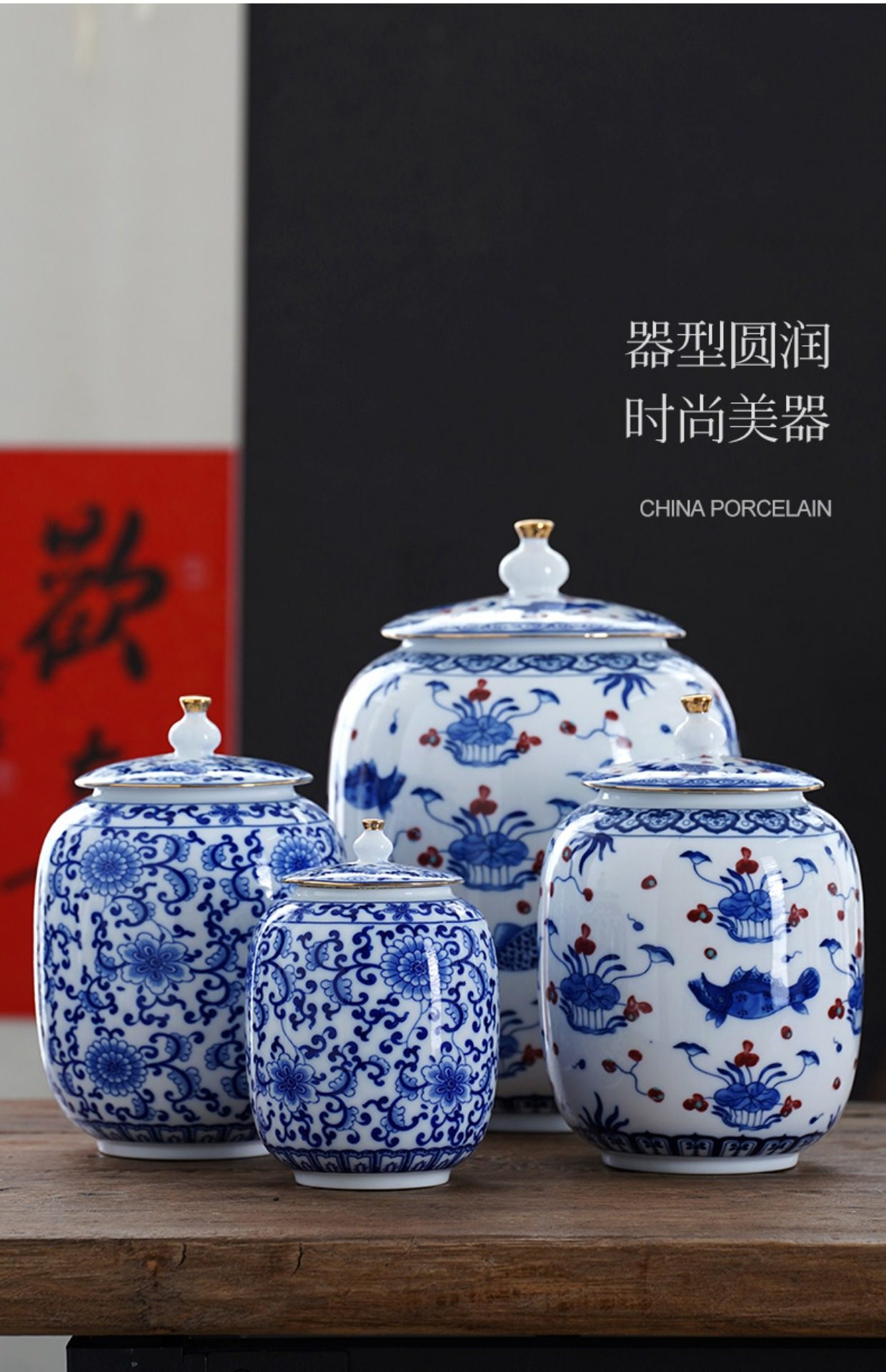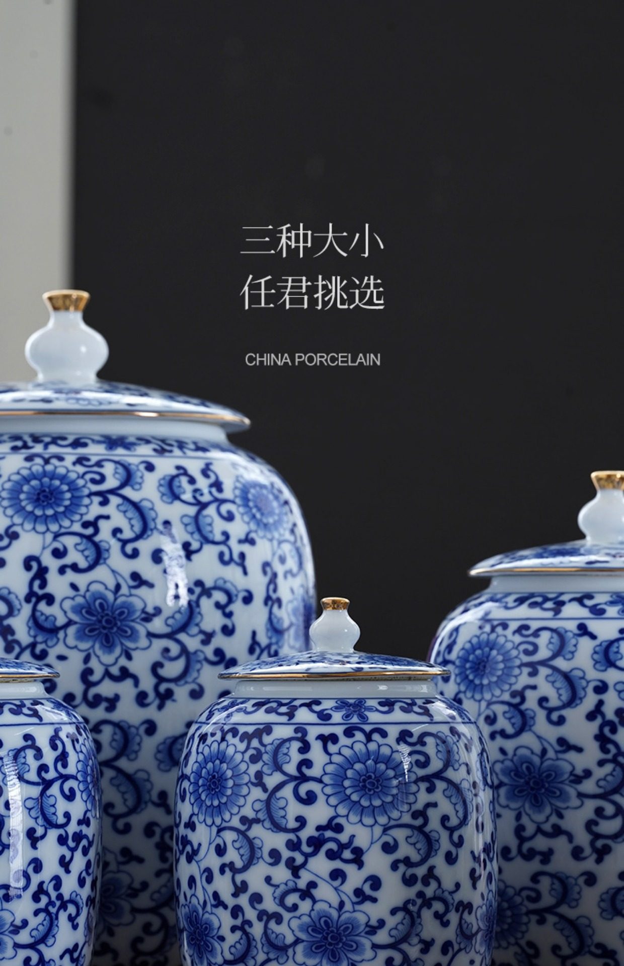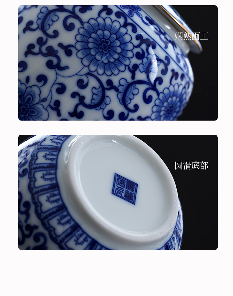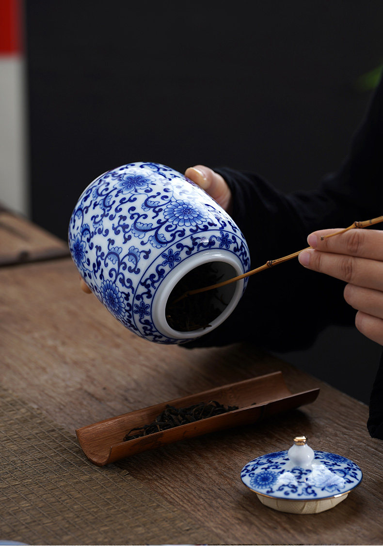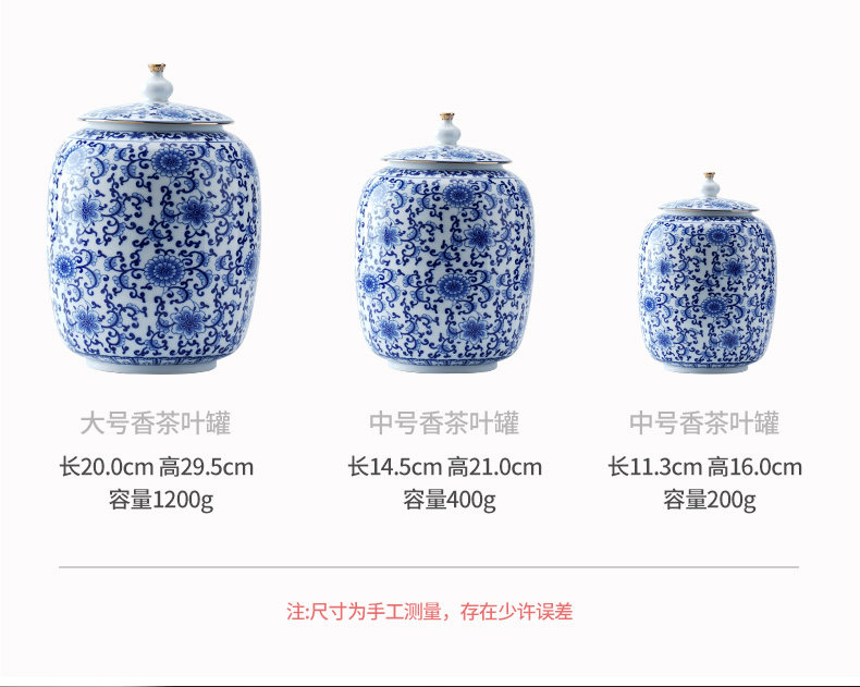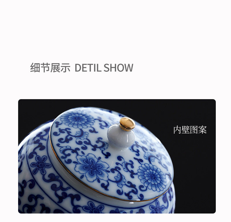 Blue and White Porcelain Tea Can White Porcelain Household Large Storage Can Tea Can Large Pu'Er Tea Cake Storage Box Sealed Double Can