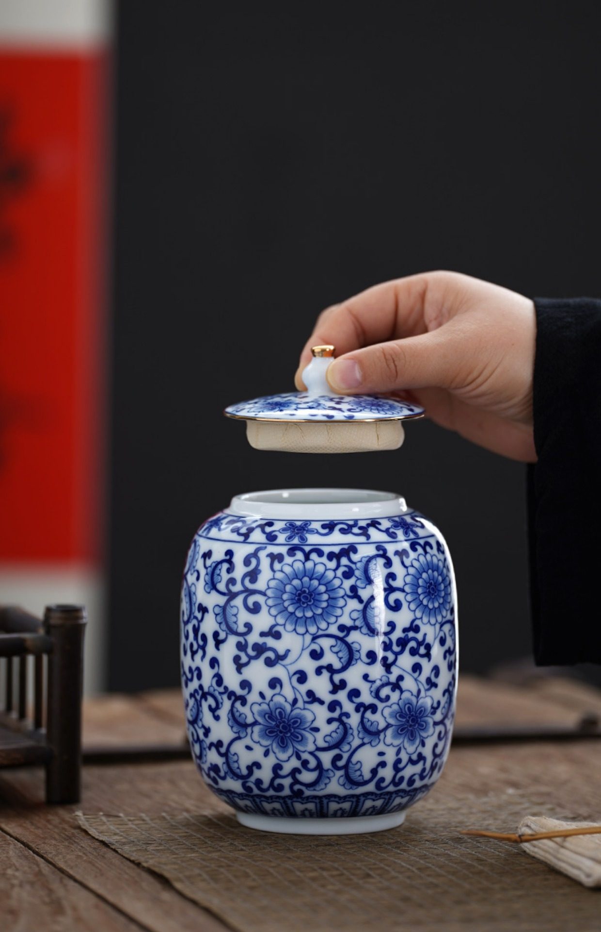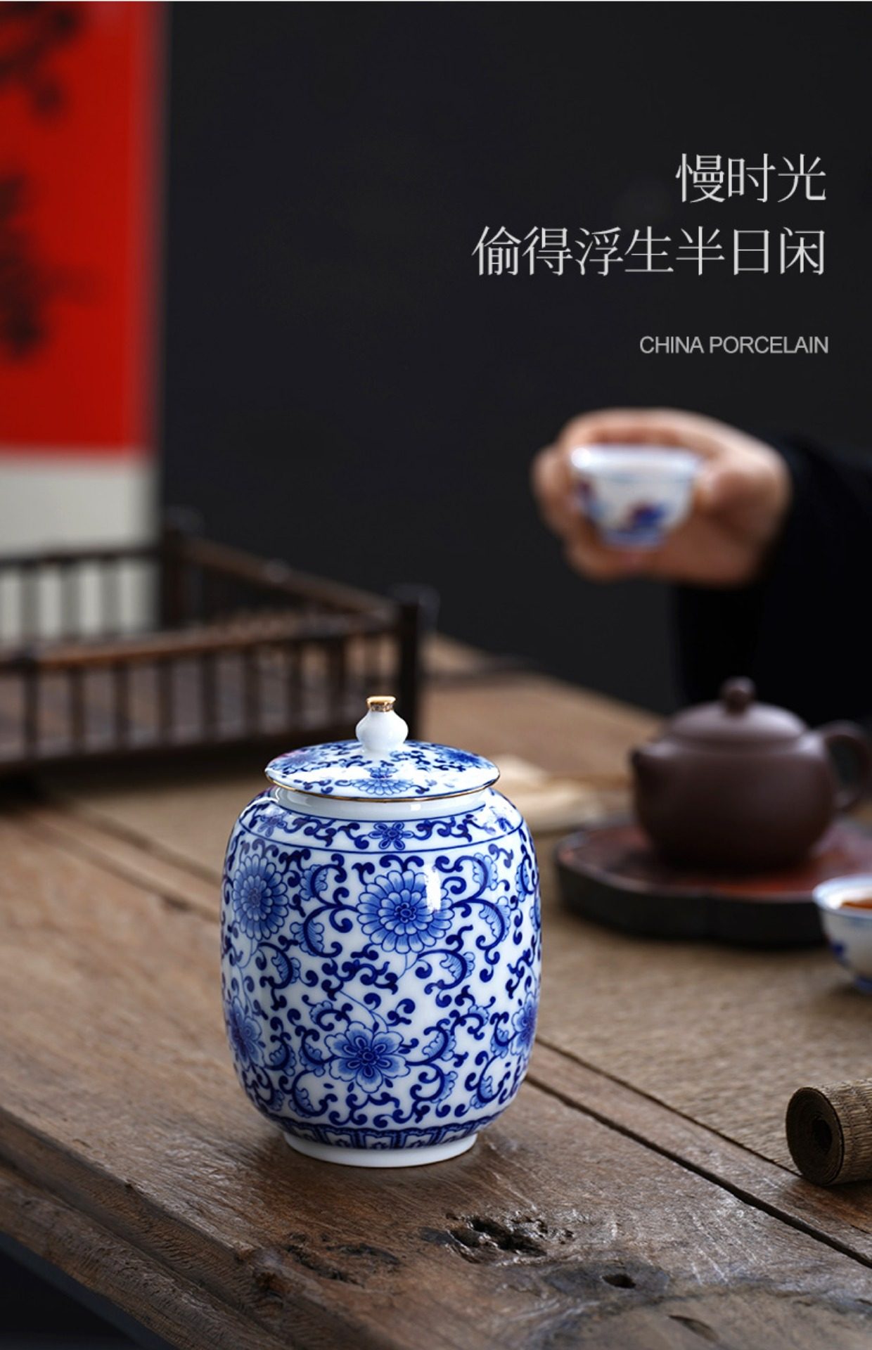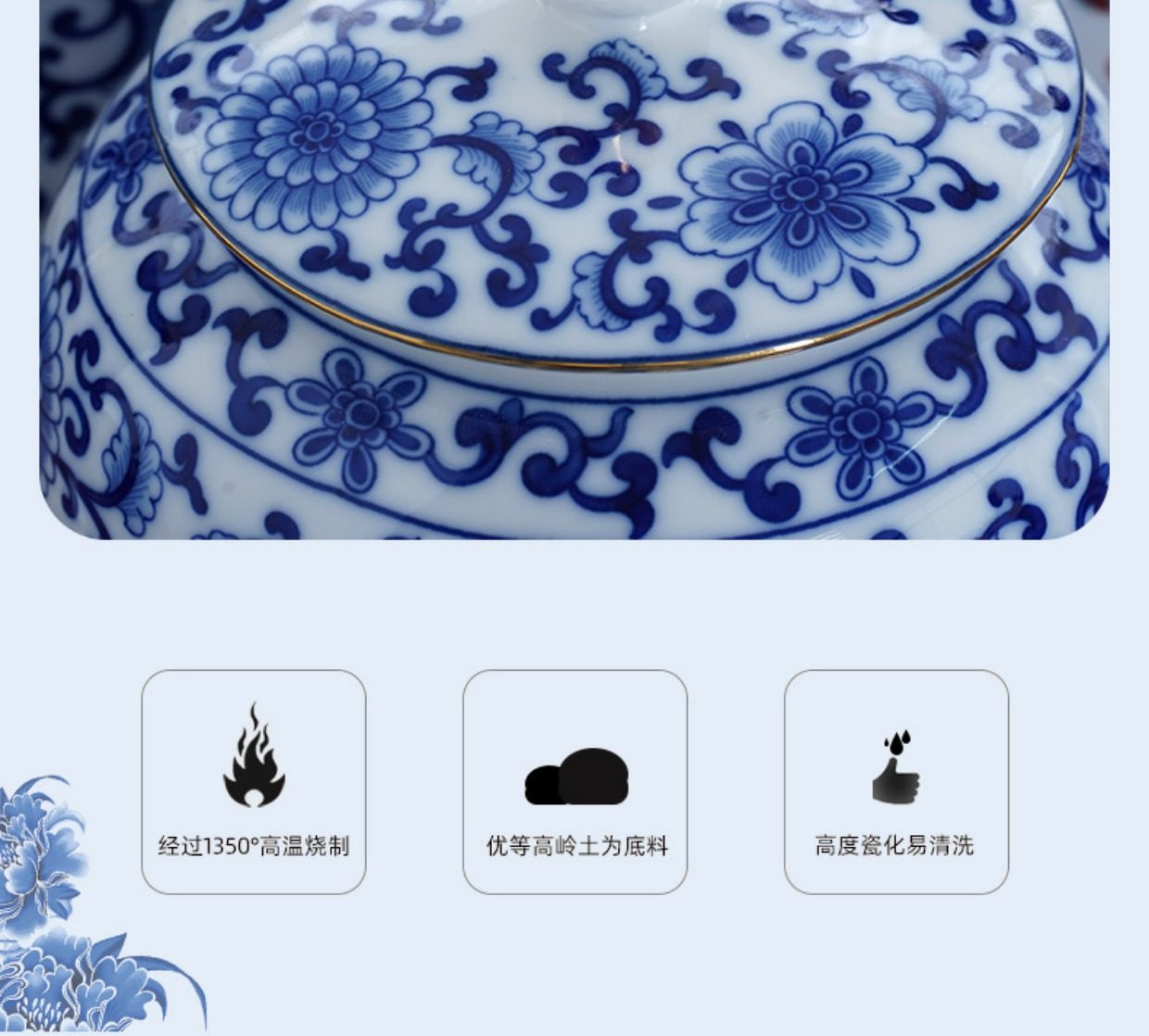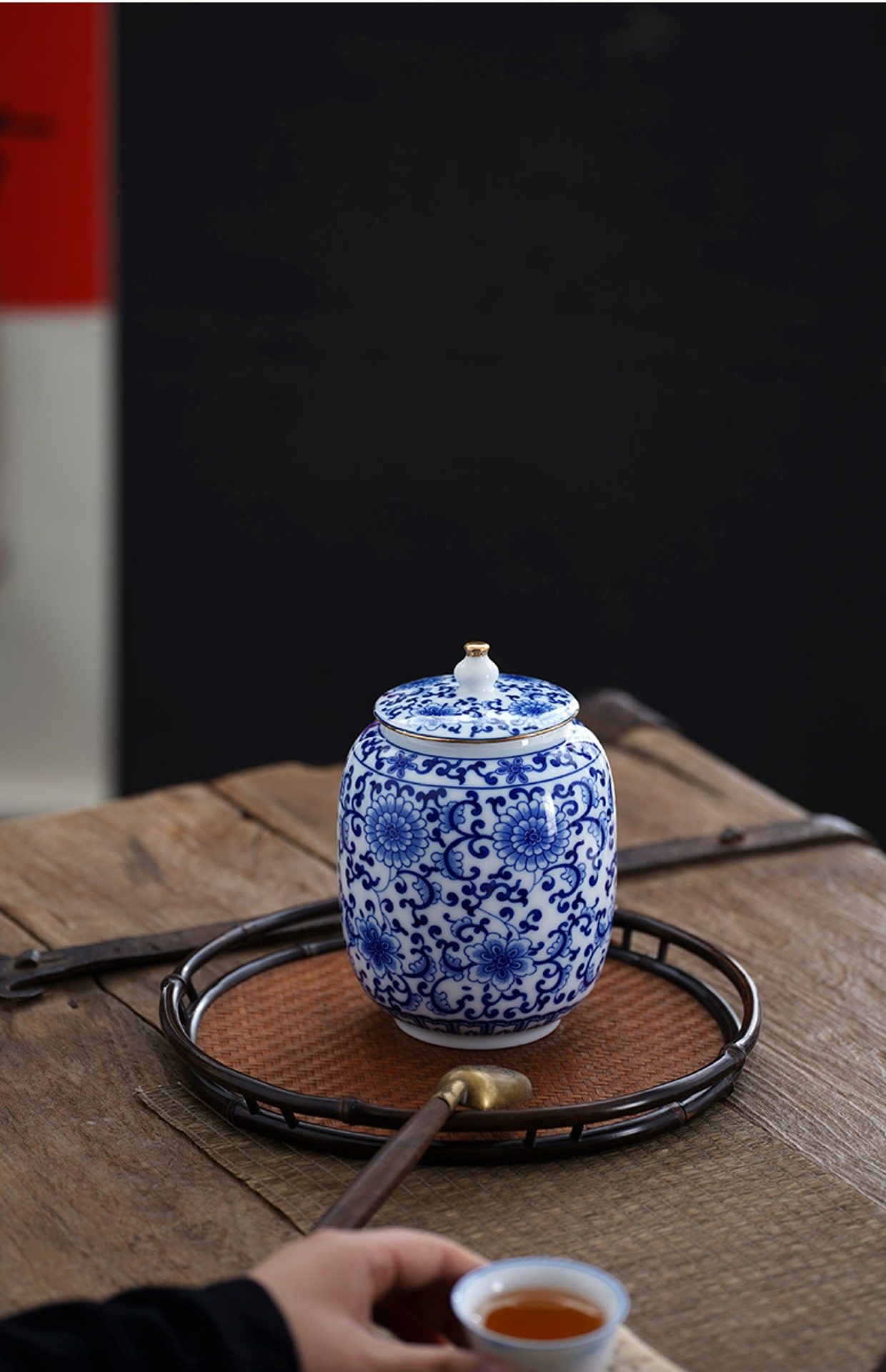 Blue and White Porcelain Tea Can White Porcelain Household Large Storage Can Tea Can Large Pu'Er Tea Cake Storage Box Sealed Double Can