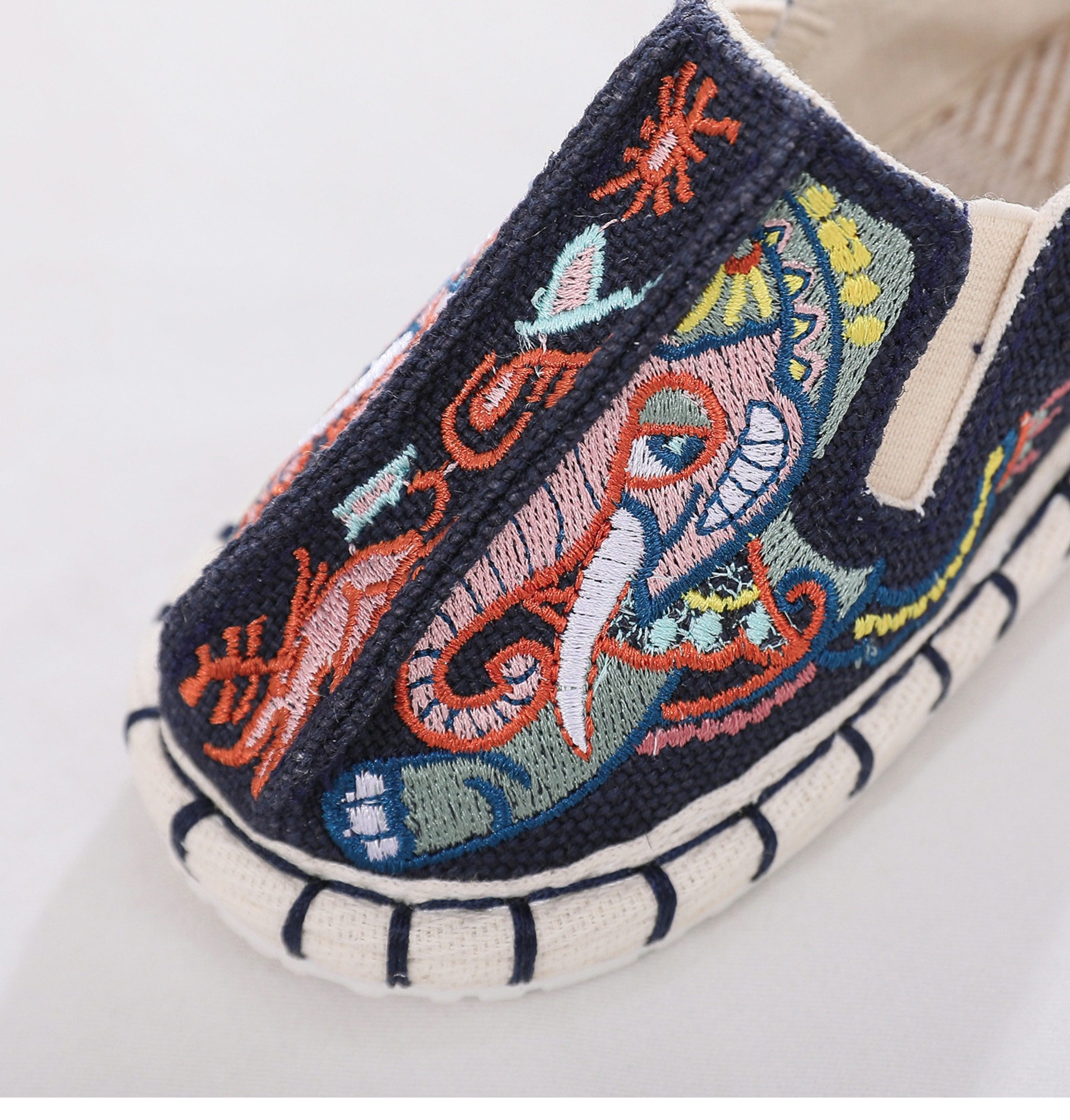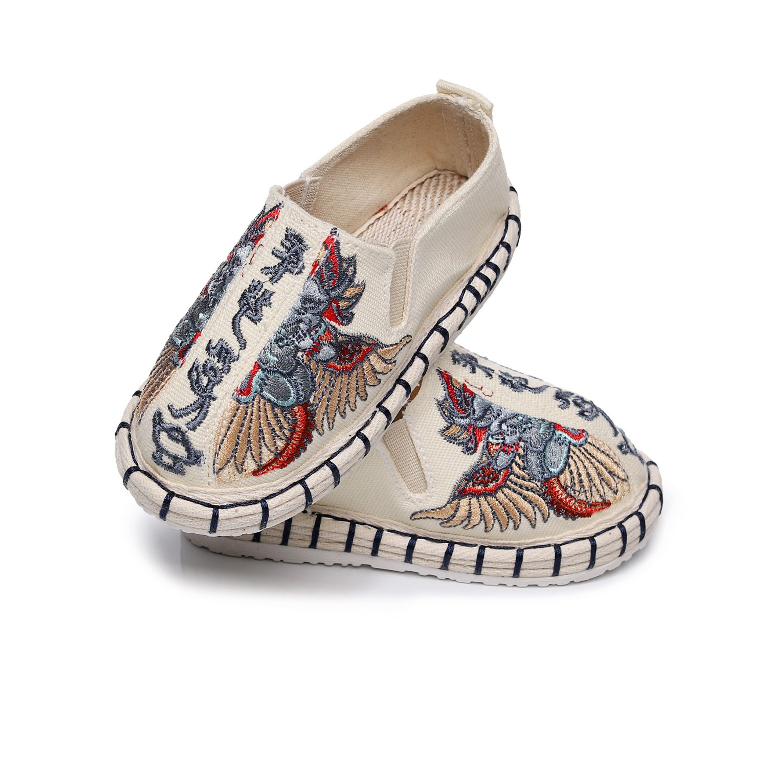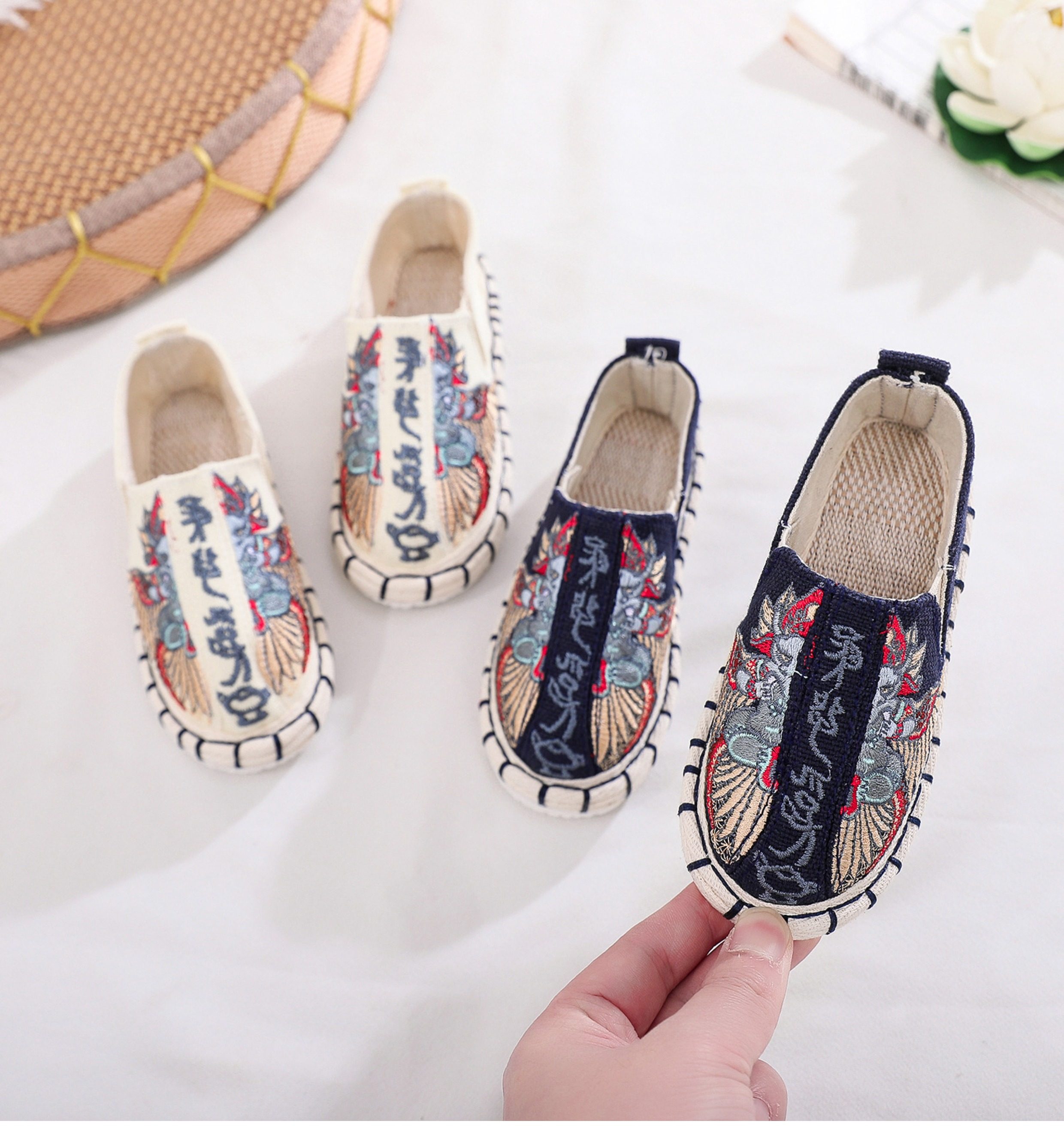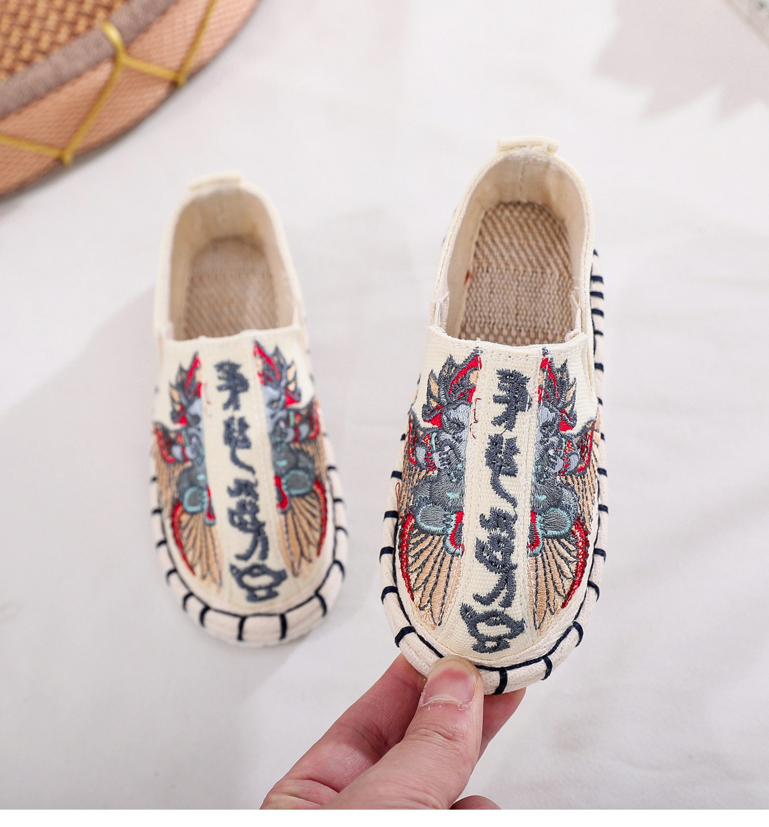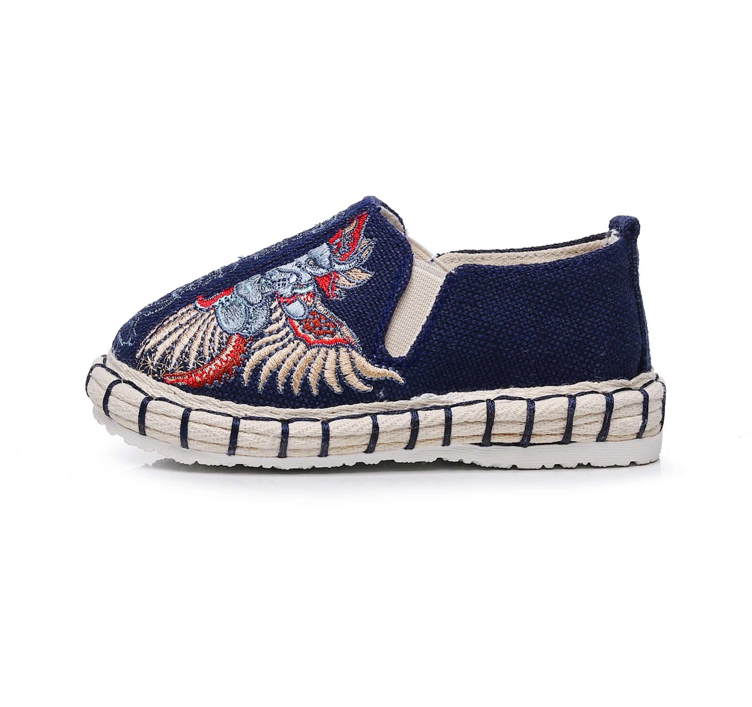 Old Beijing children's cloth shoes, embroidered shoes, boys and girls Hanfu shoes, canvas handmade mille-feuille soles, Chinese style performance