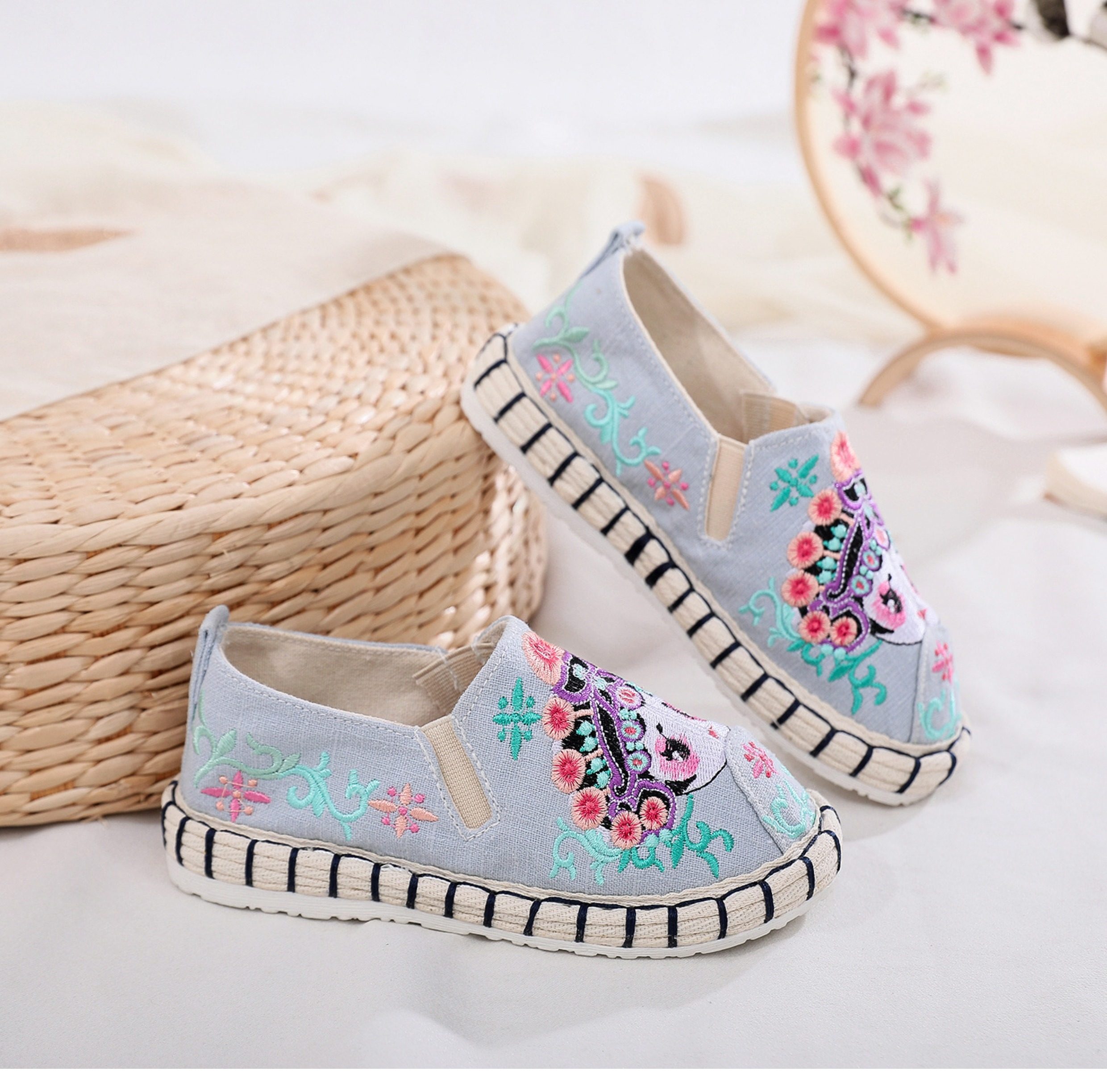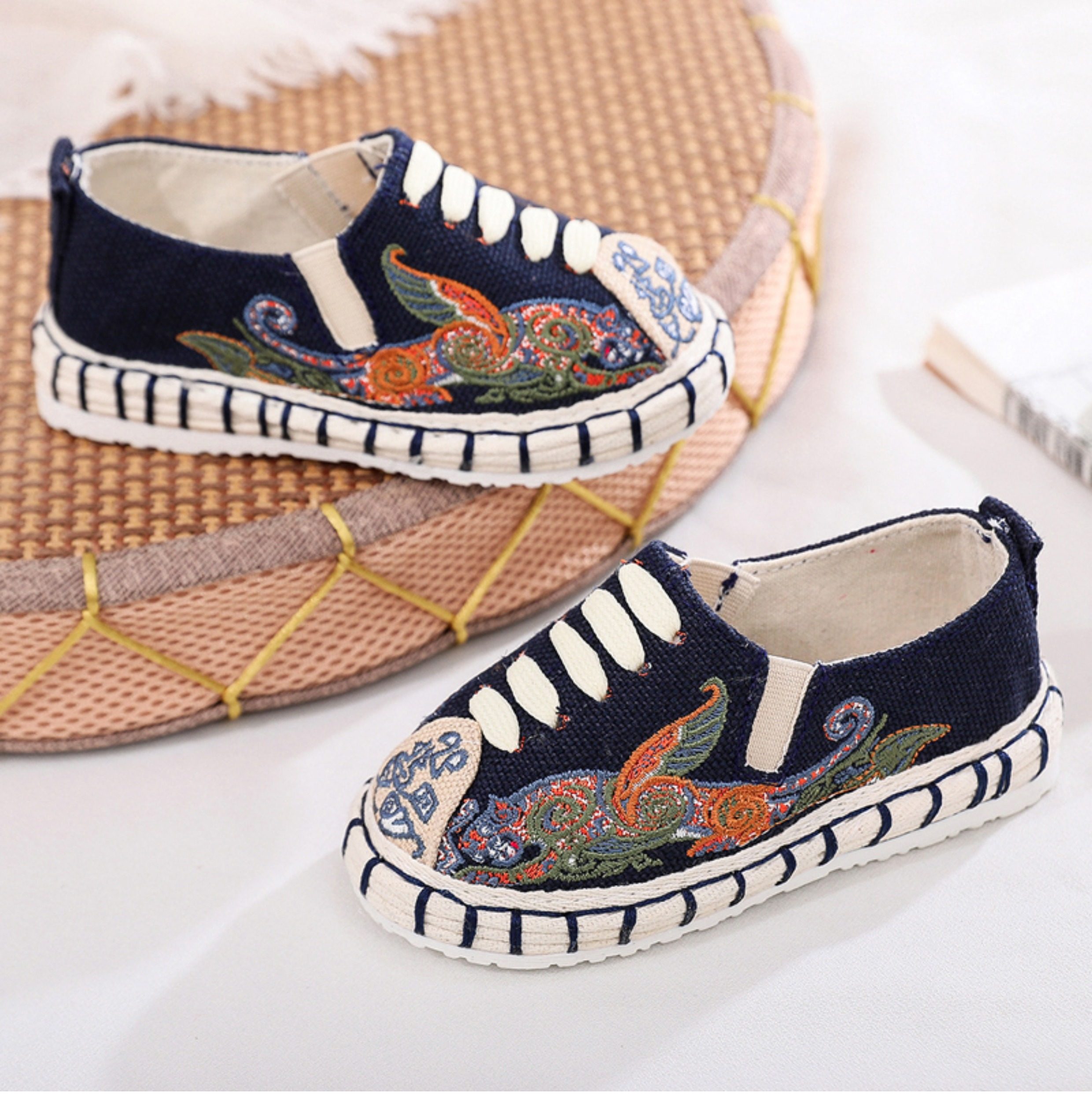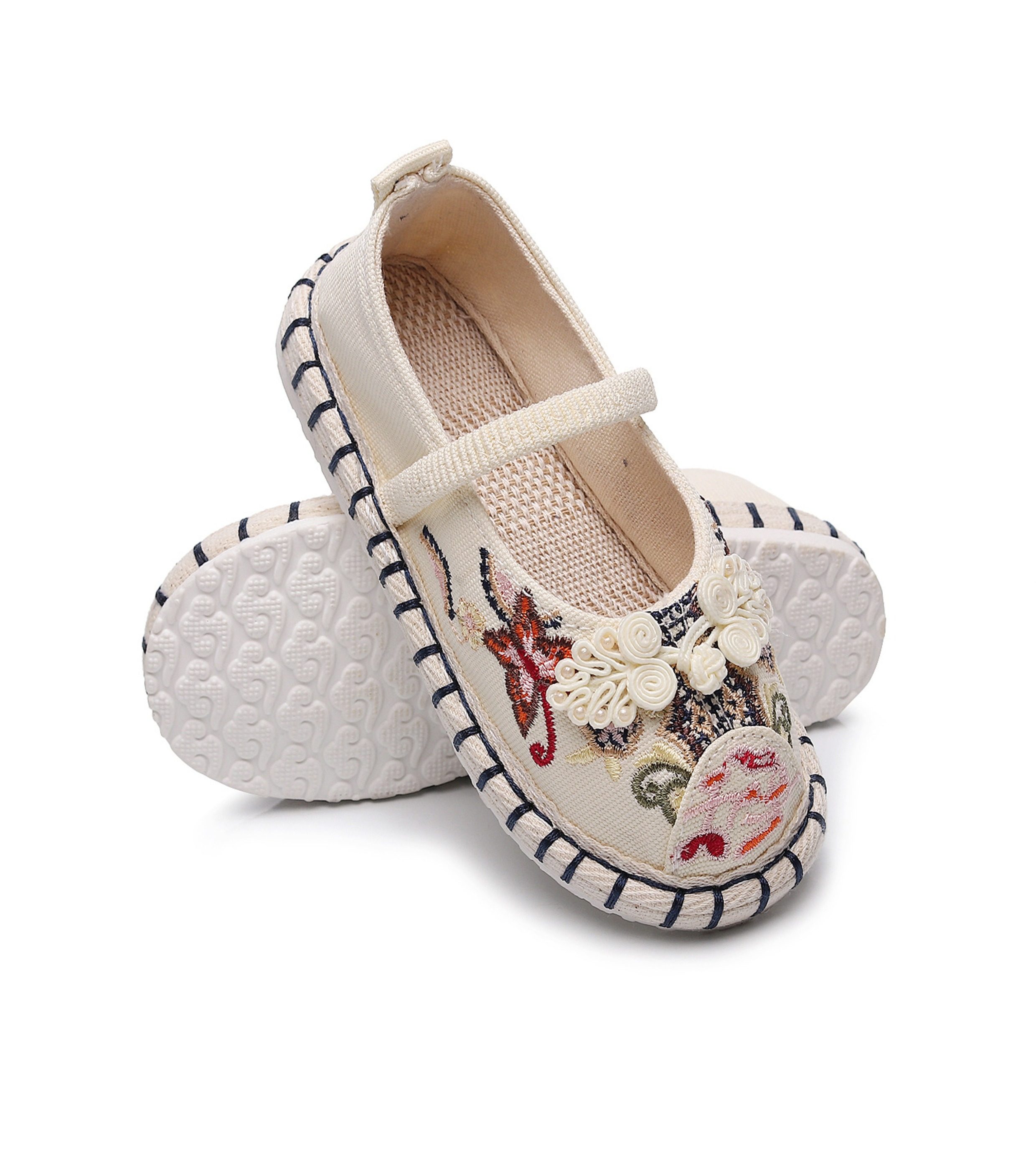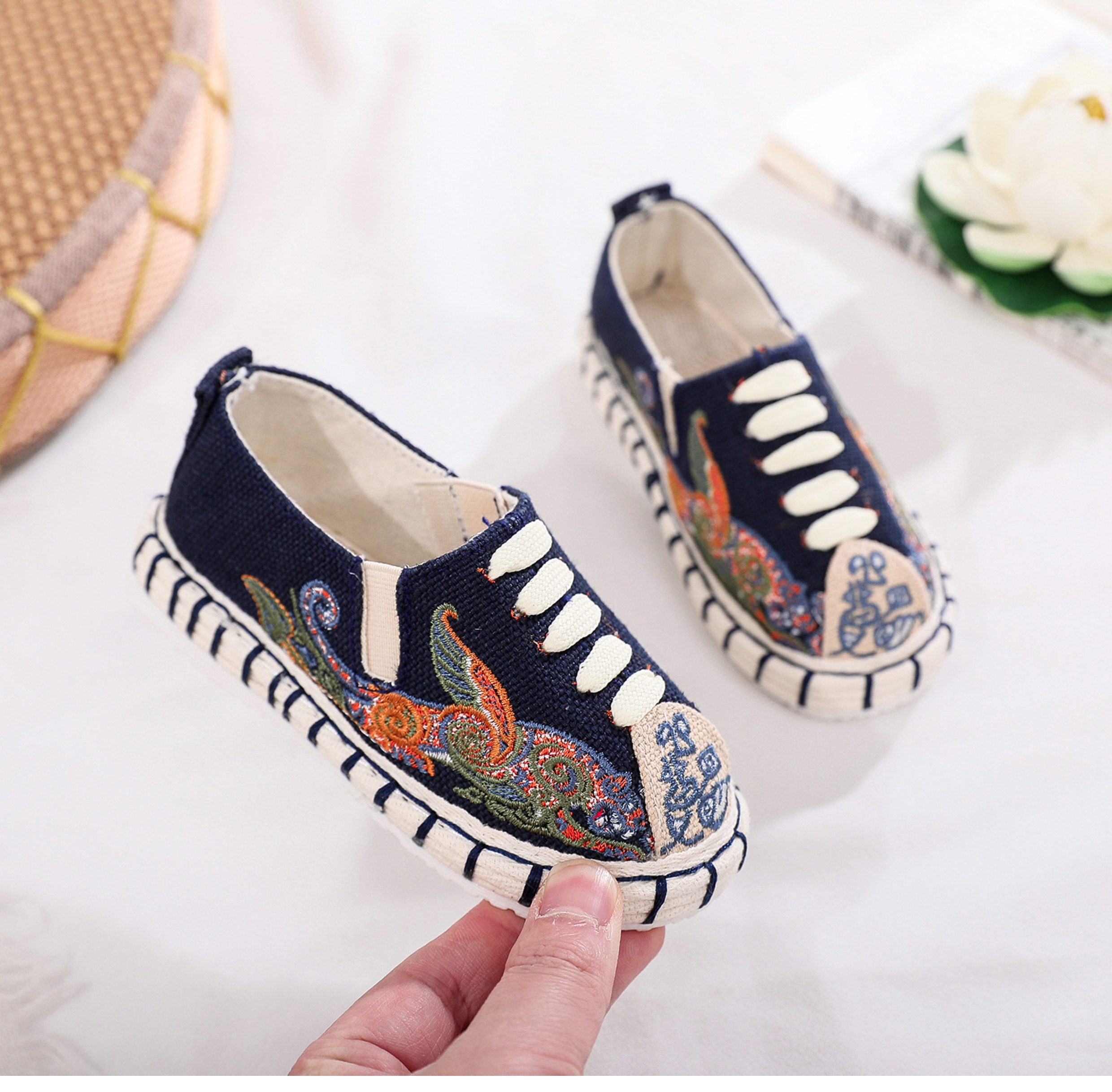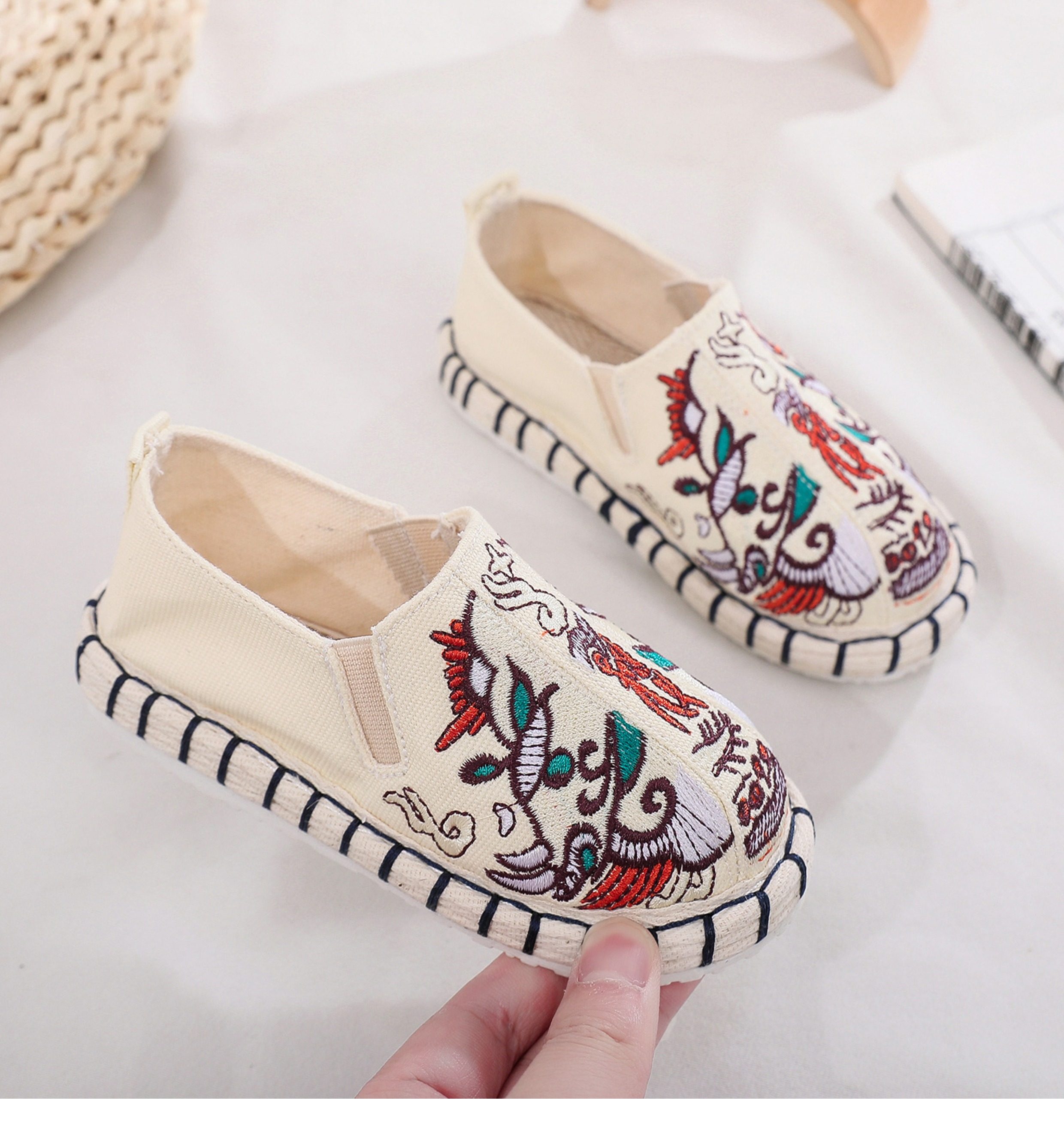 Old Beijing children's cloth shoes, embroidered shoes, boys and girls Hanfu shoes, canvas handmade mille-feuille soles, Chinese style performance