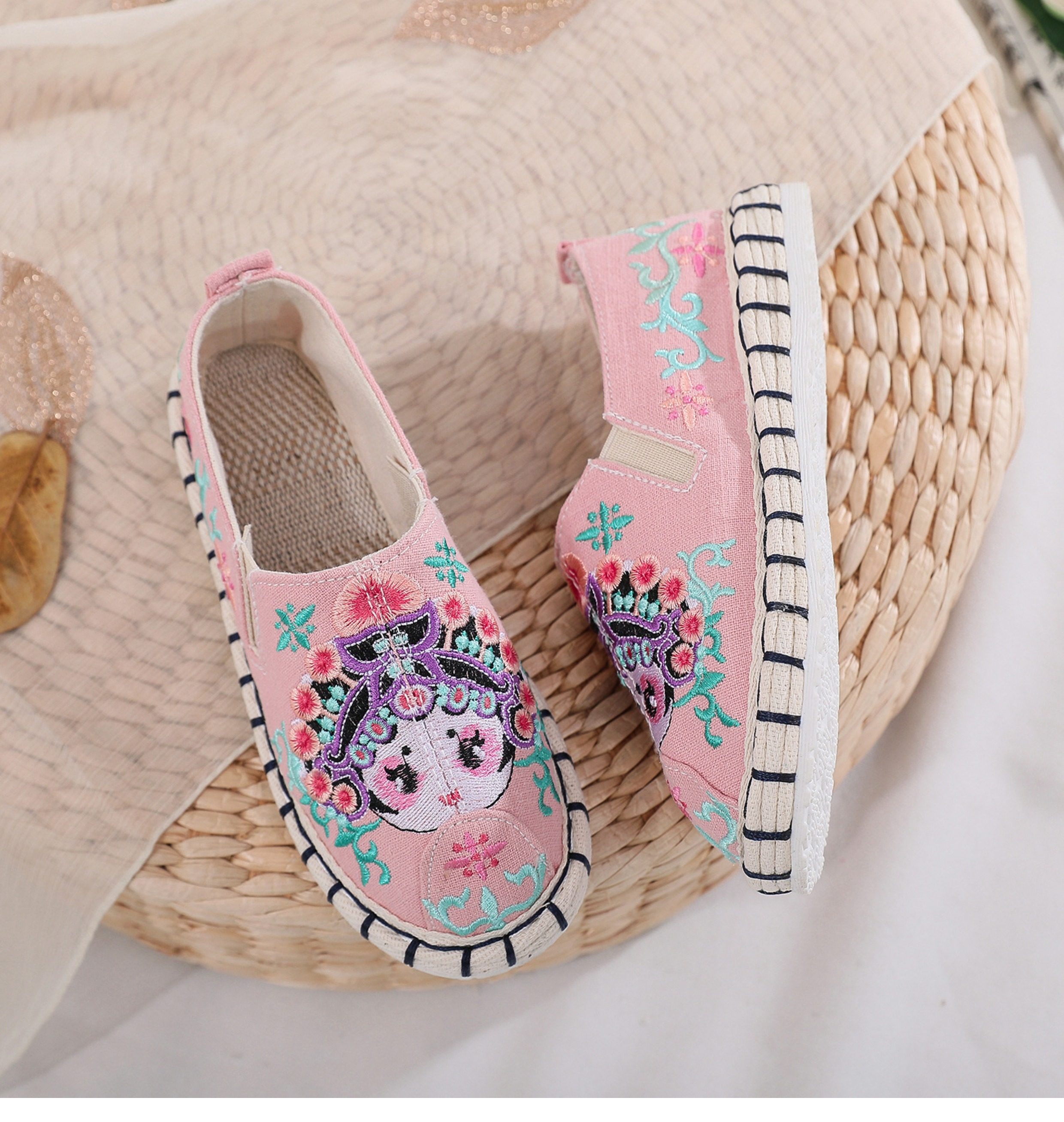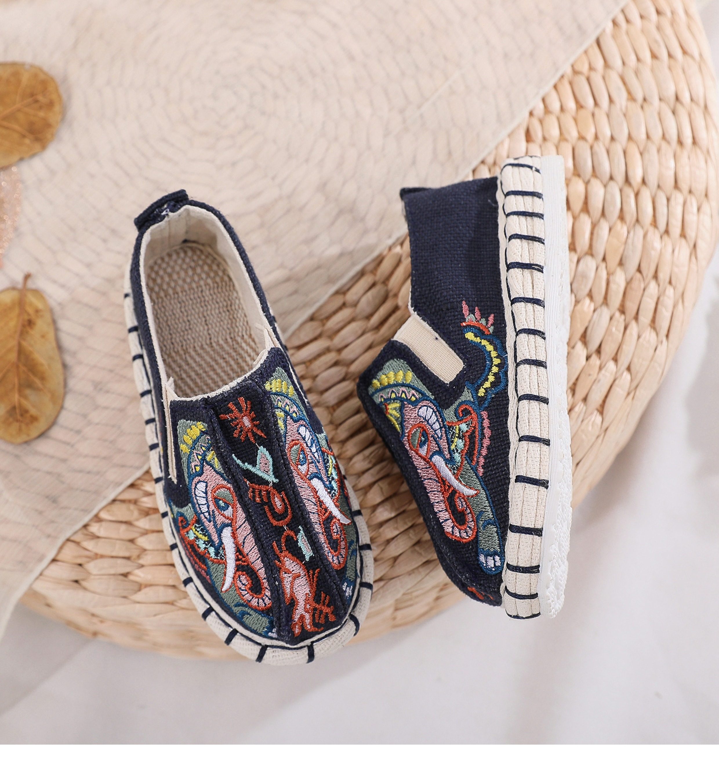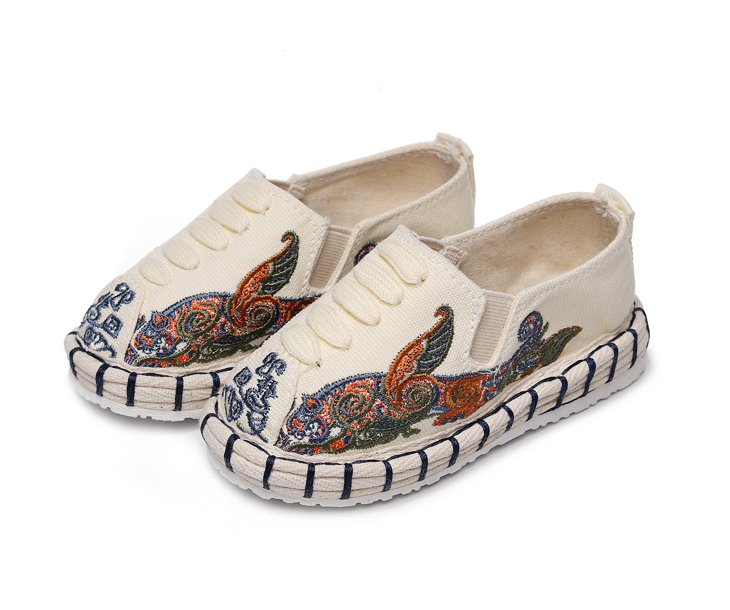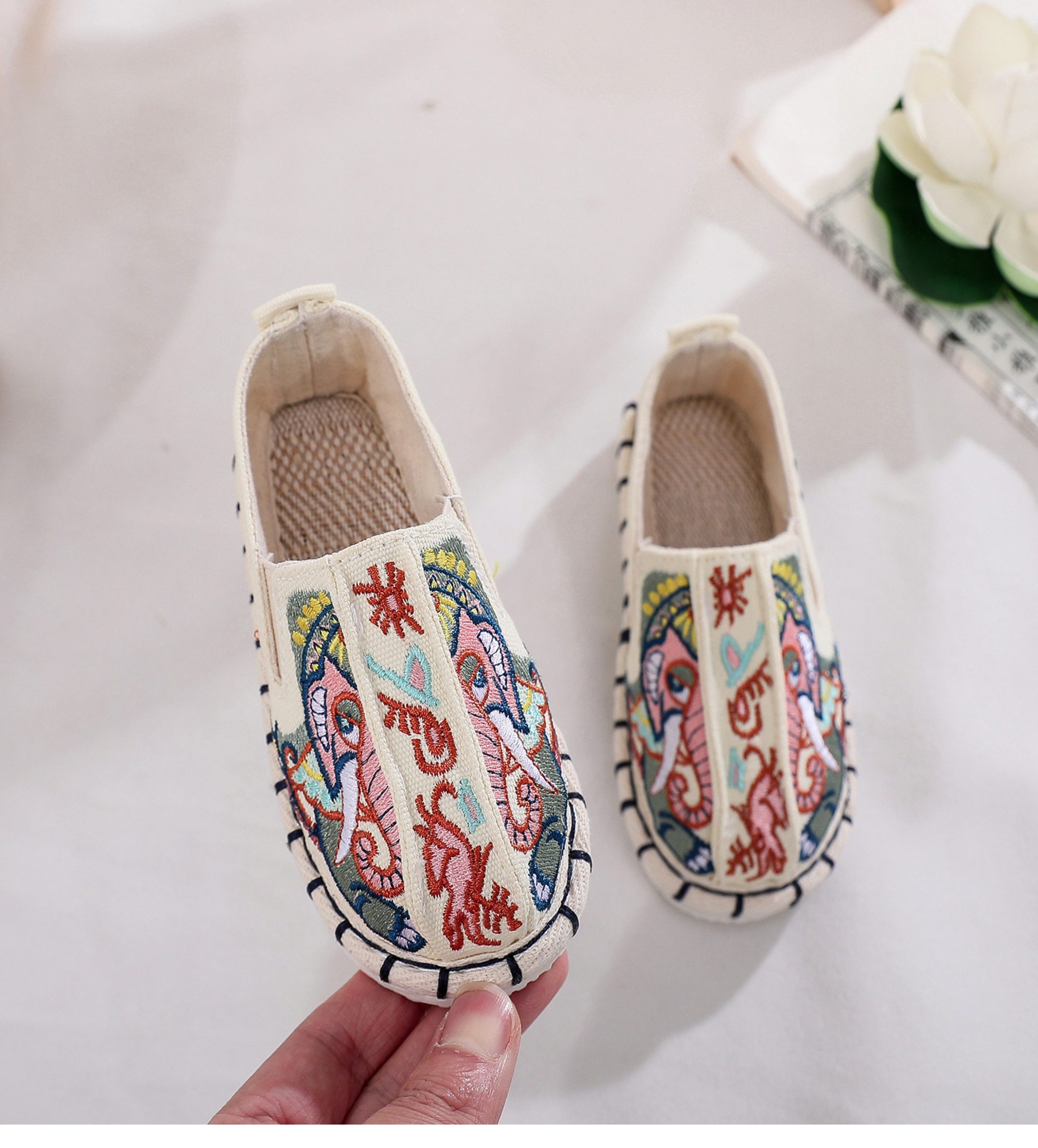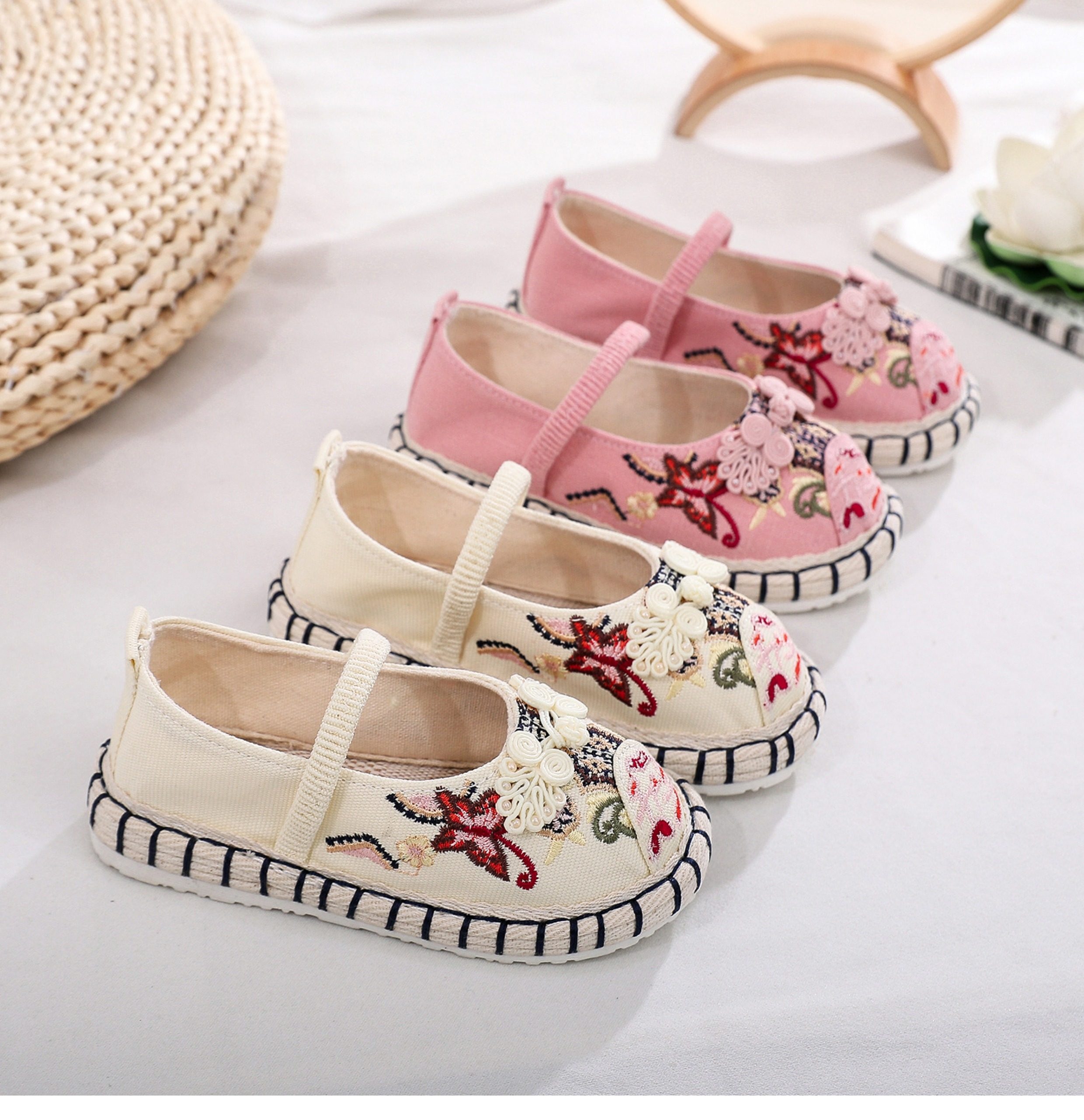 Old Beijing children's cloth shoes, embroidered shoes, boys and girls Hanfu shoes, canvas handmade mille-feuille soles, Chinese style performance