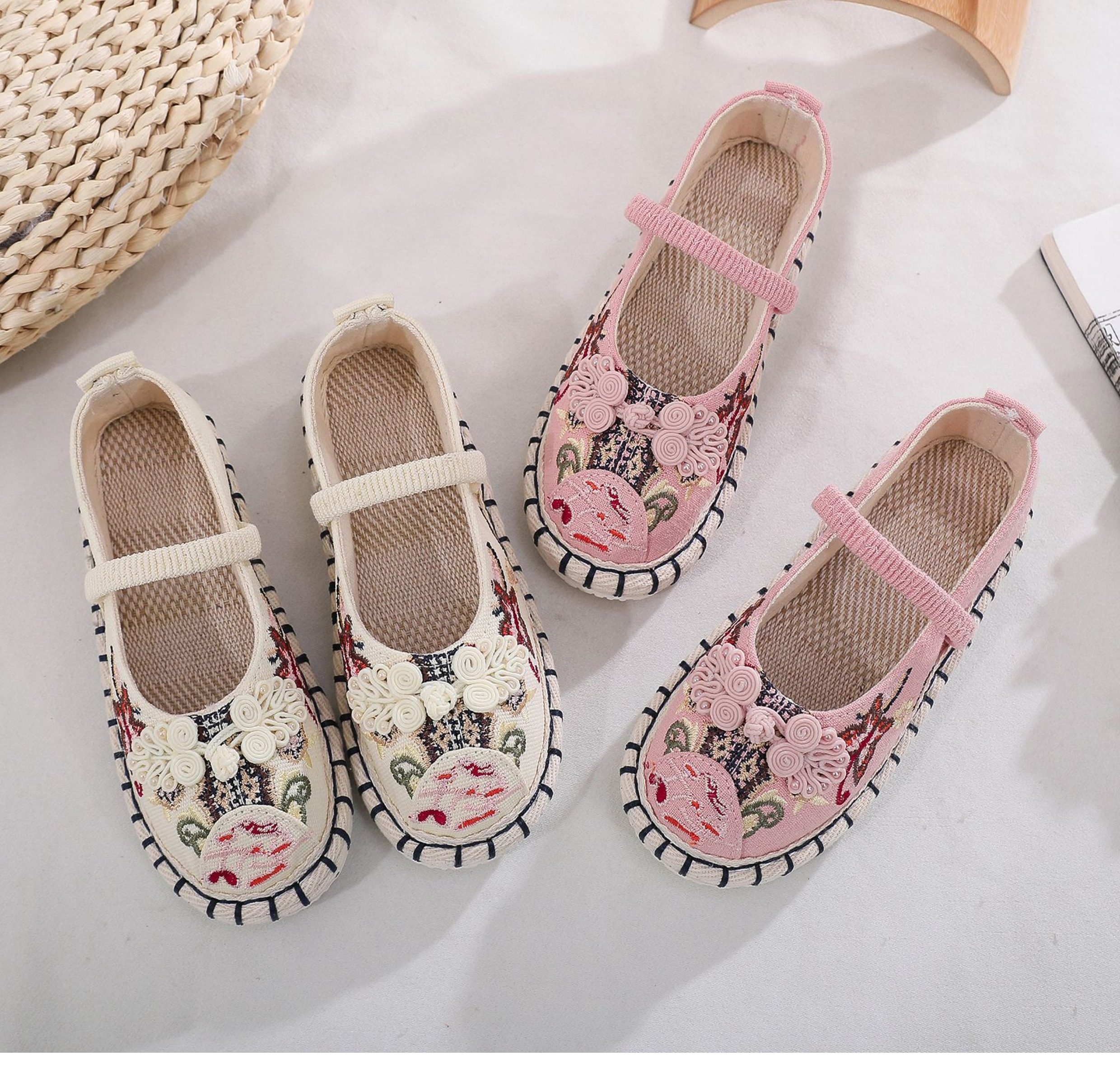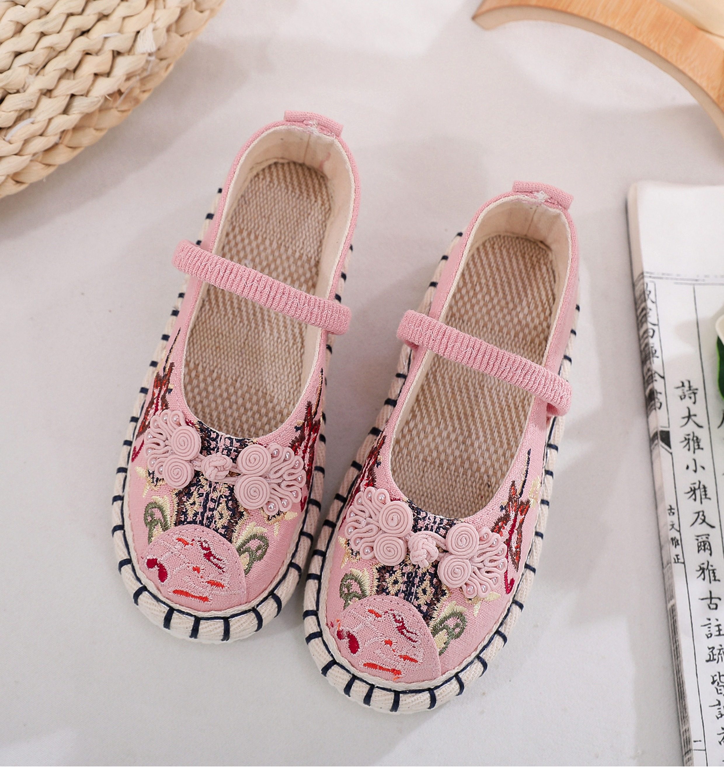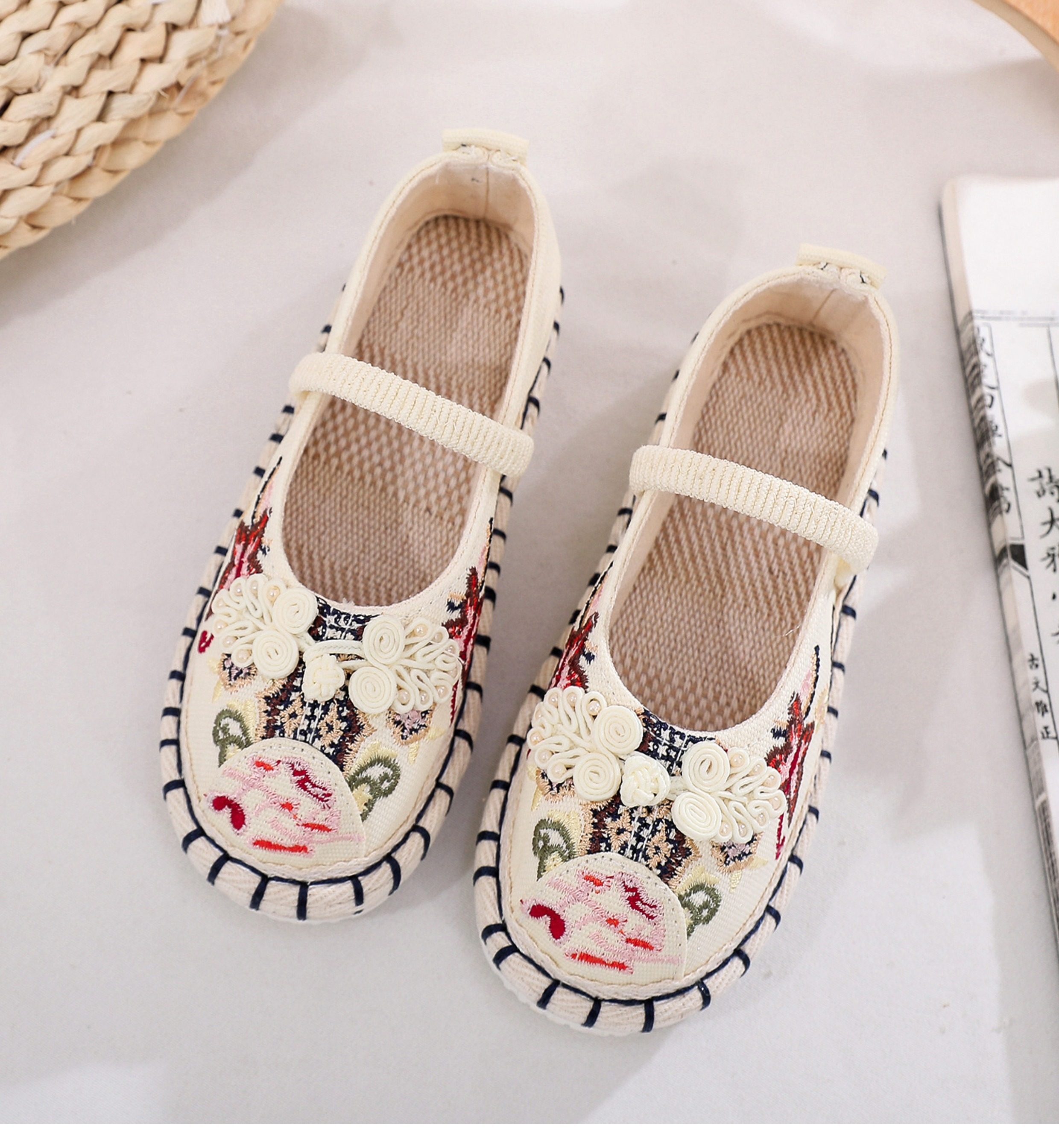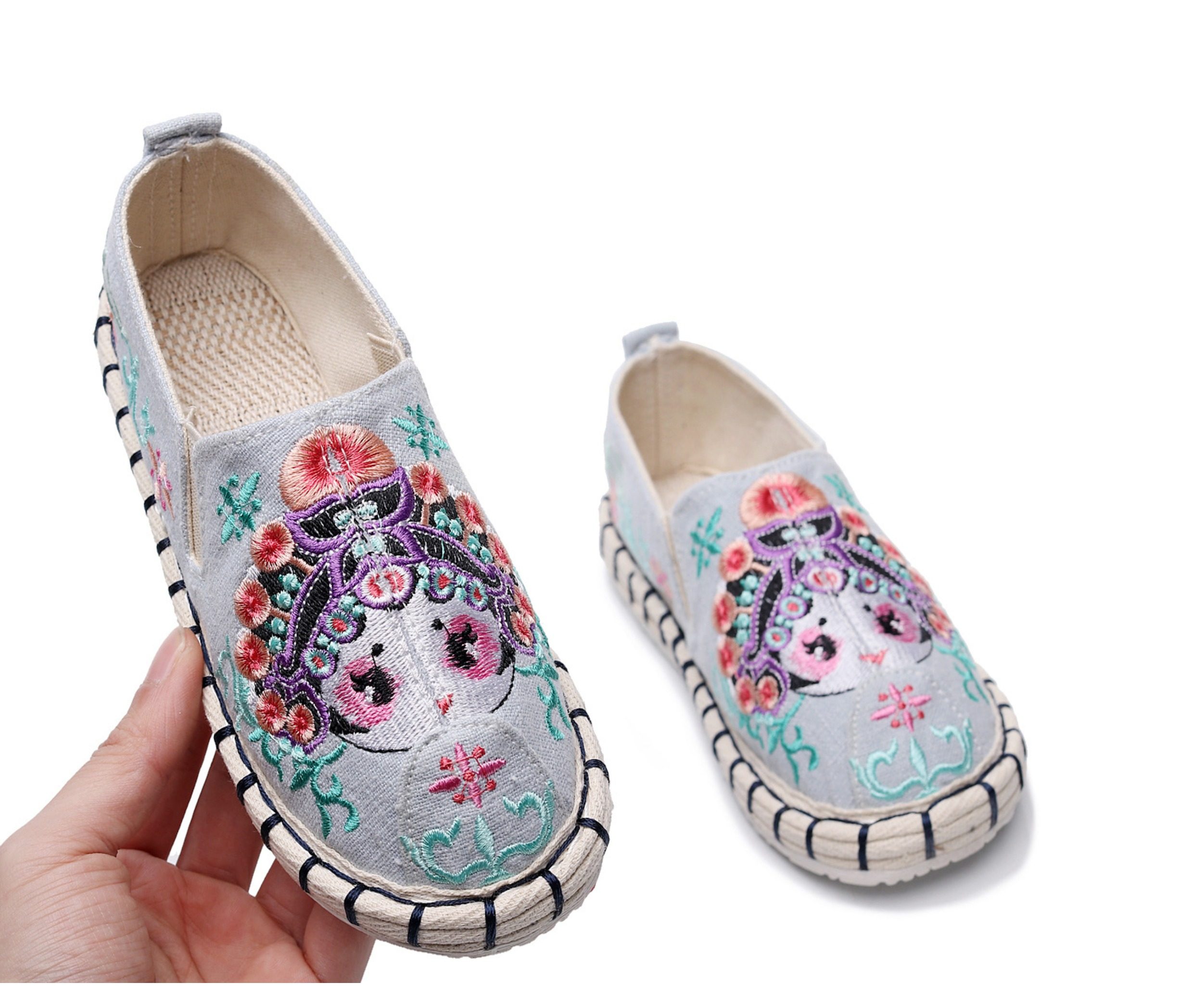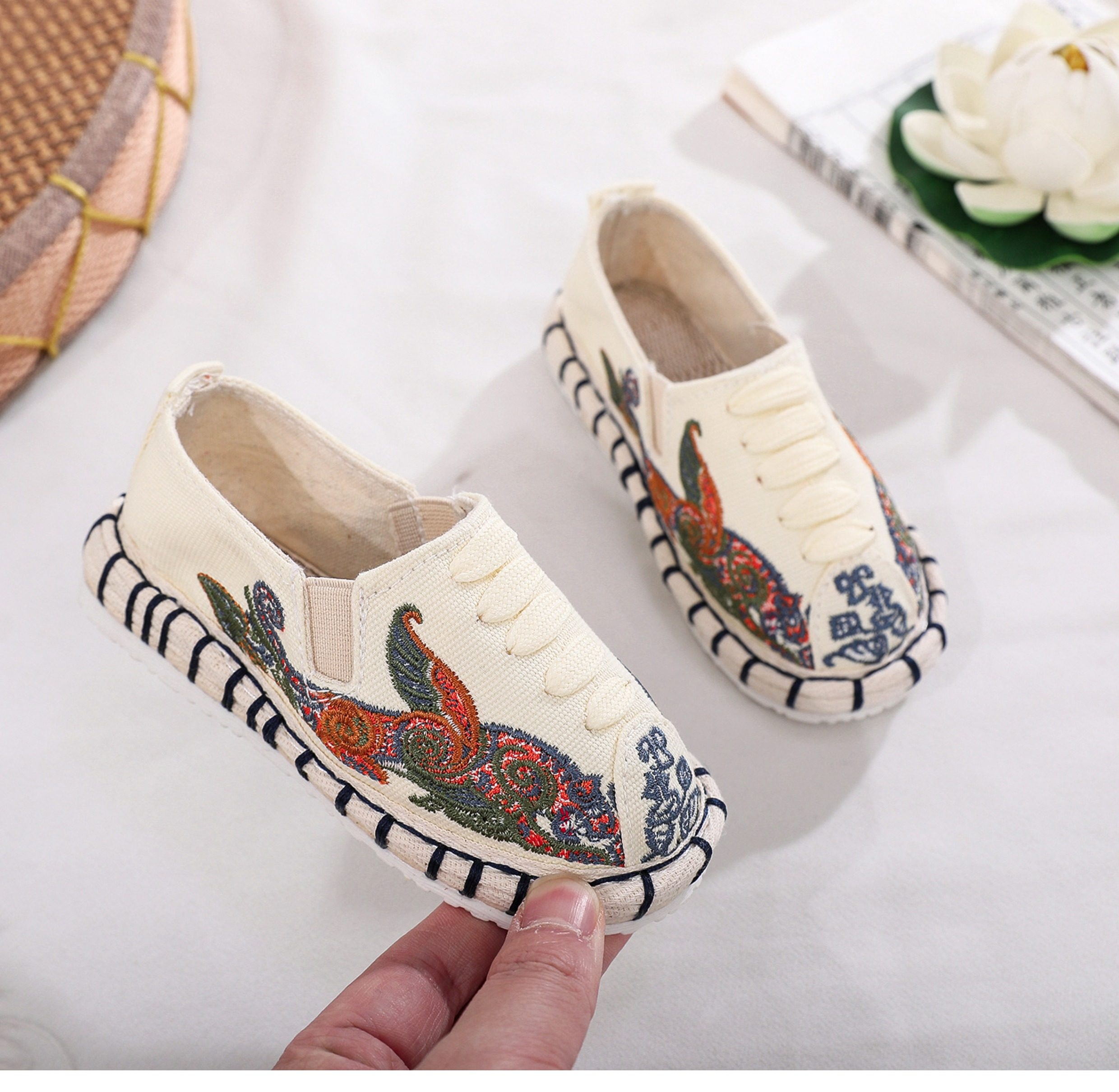 Old Beijing children's cloth shoes, embroidered shoes, boys and girls Hanfu shoes, canvas handmade mille-feuille soles, Chinese style performance