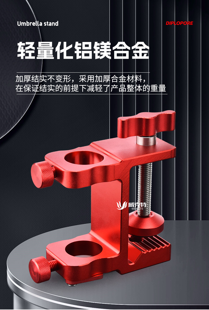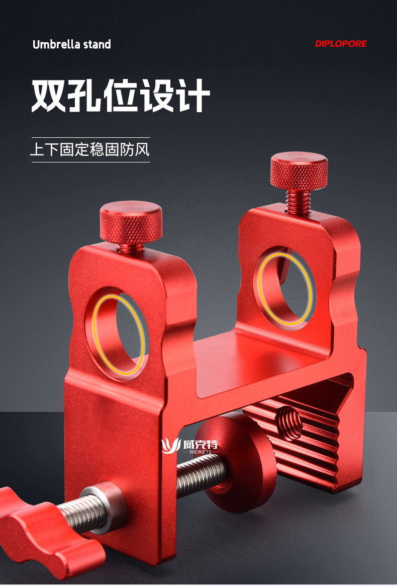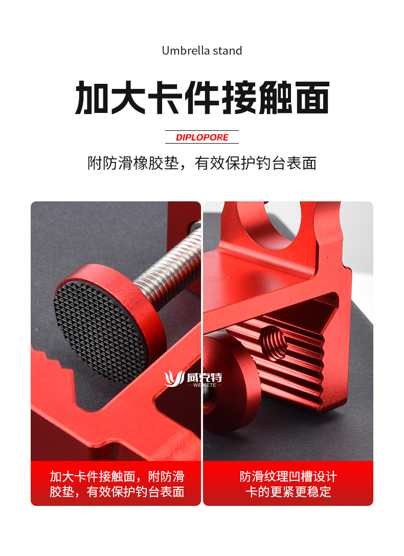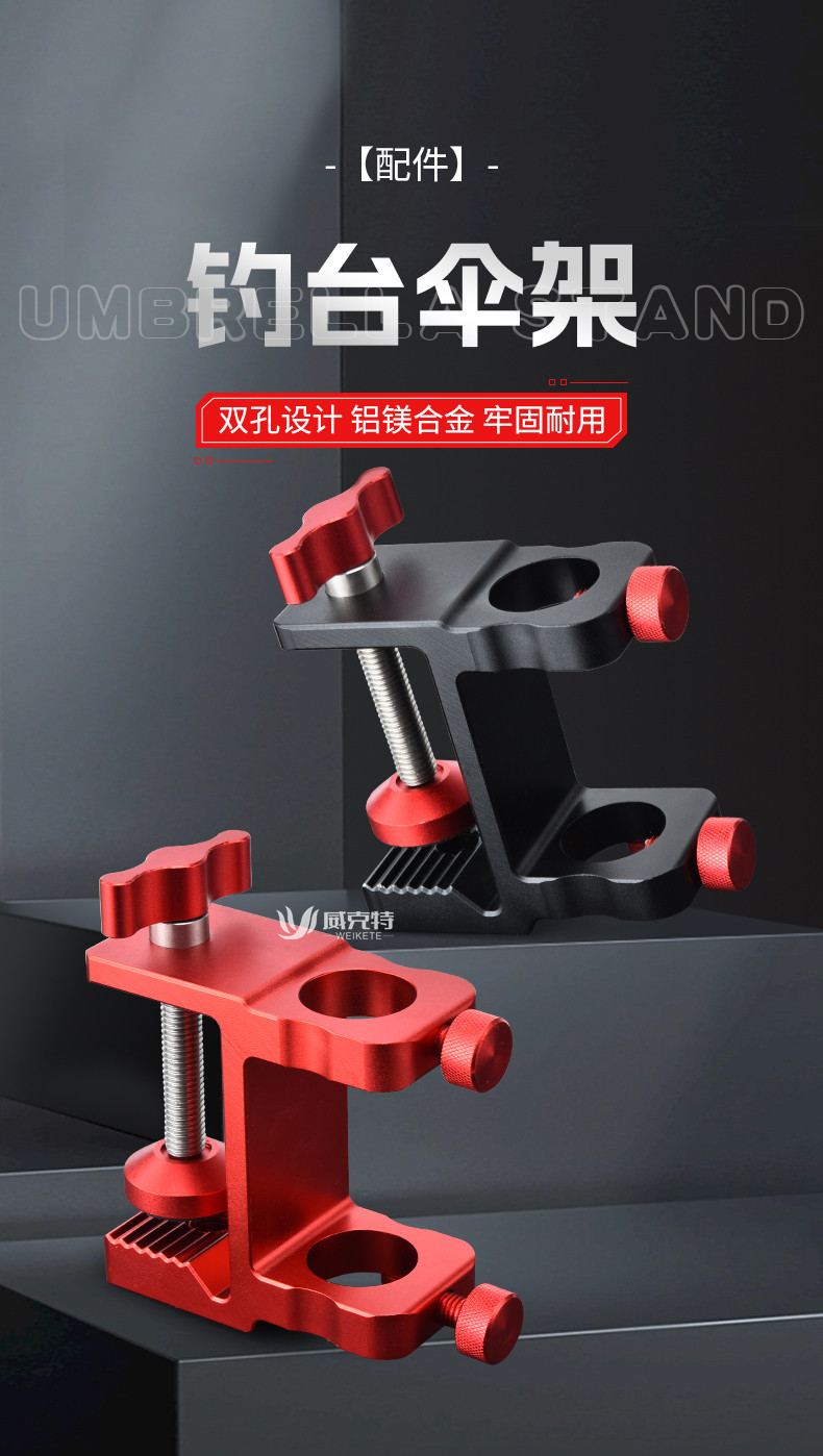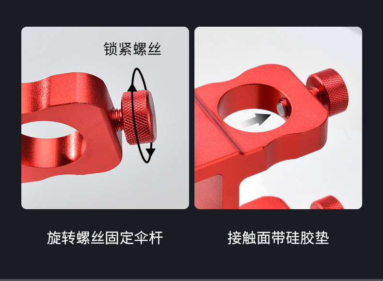 新款防滑丝钓台伞架固定器抗大风双孔伞座滑动式镁铝合金钓台配件