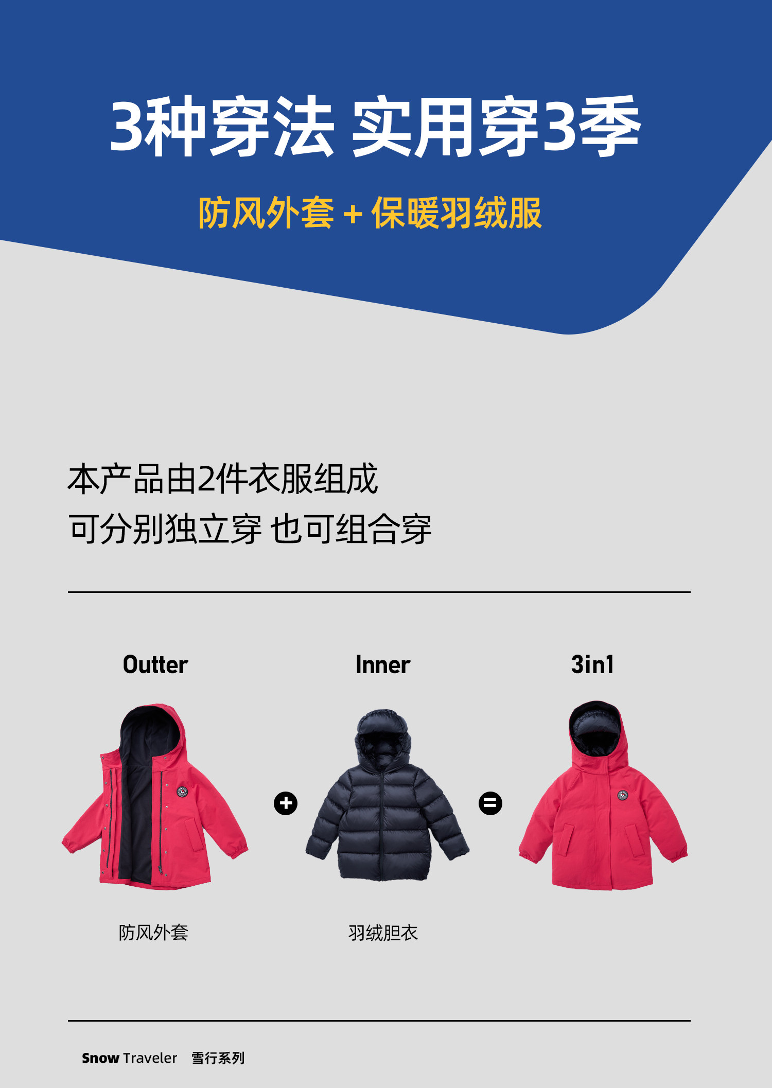 Nanny Goose Chaqueta de plumón para niños 3 en 1, ropa de exterior multiuso, chaqueta para bebé resistente al viento y a la humedad