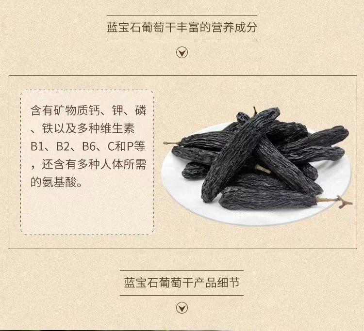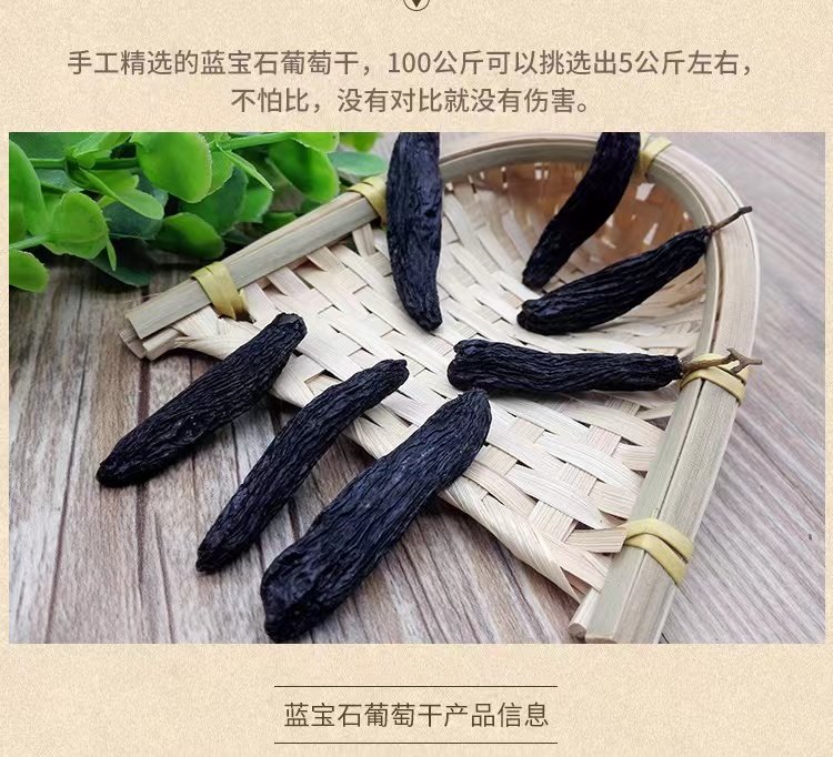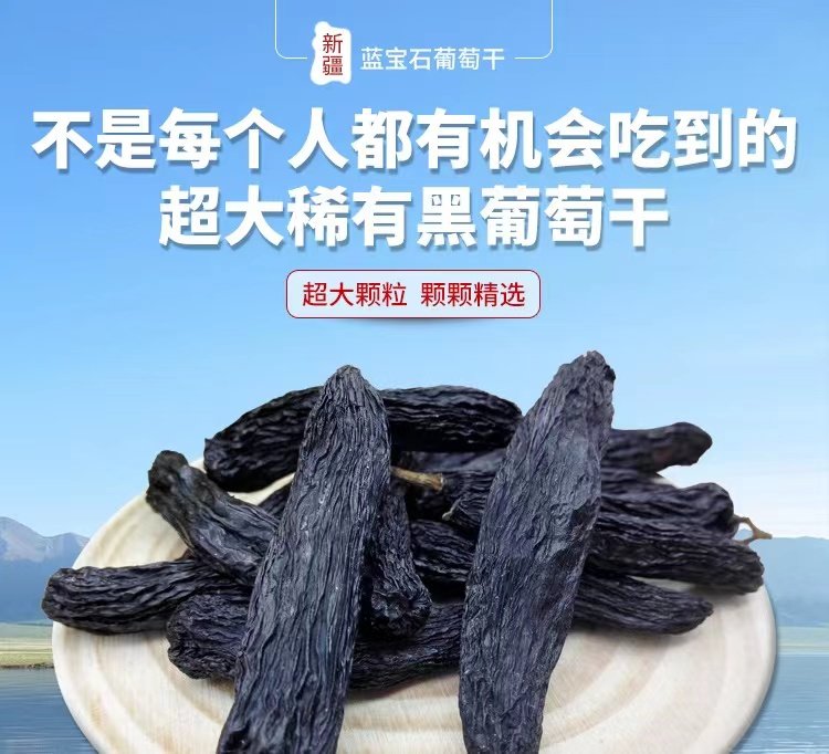 Xinjiang Specialty Sapphire Raisins, Extra Large, Selected Golden Finger Black Beauty, Seedless, Naturally Sun-Dried 500g
