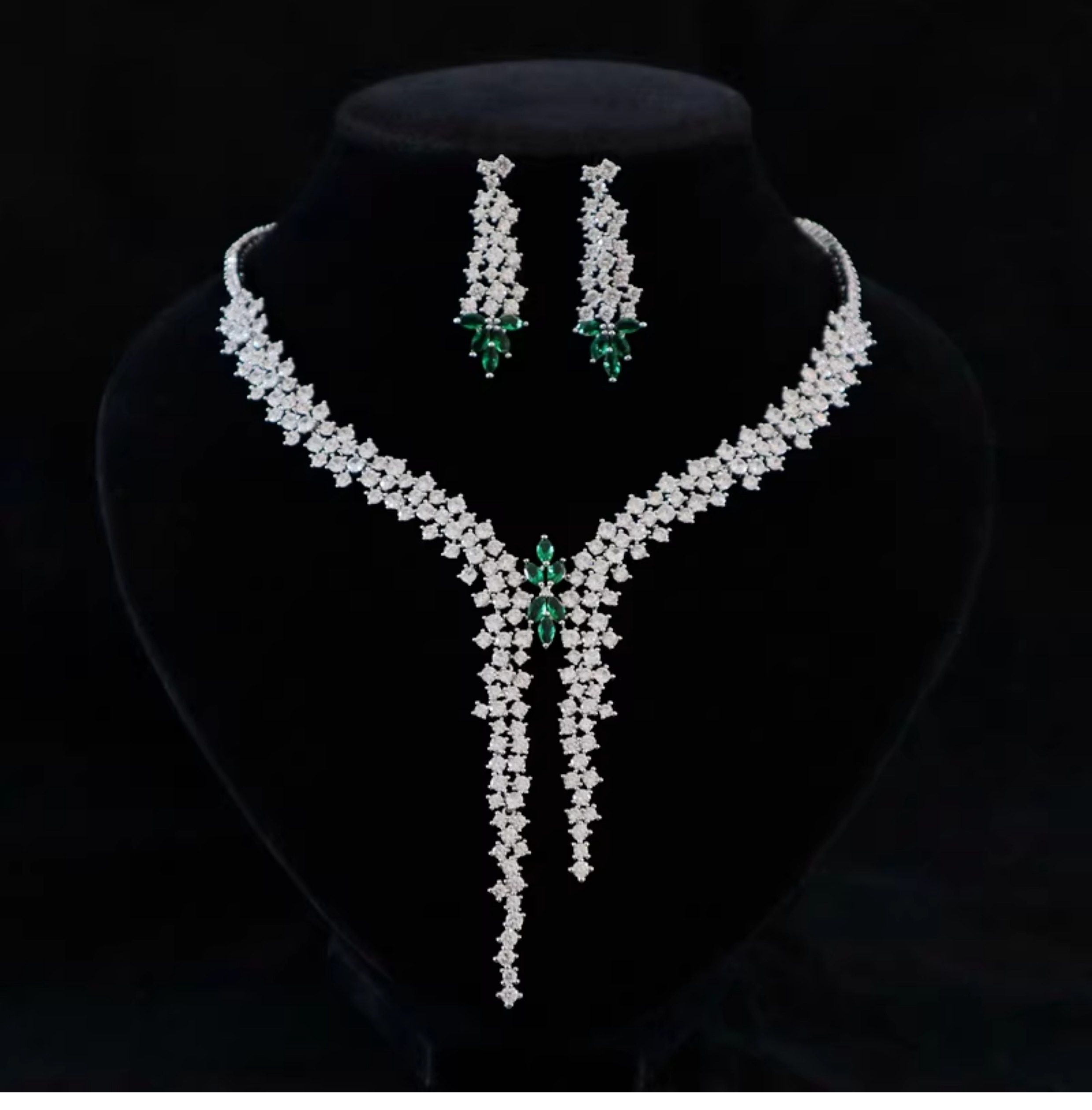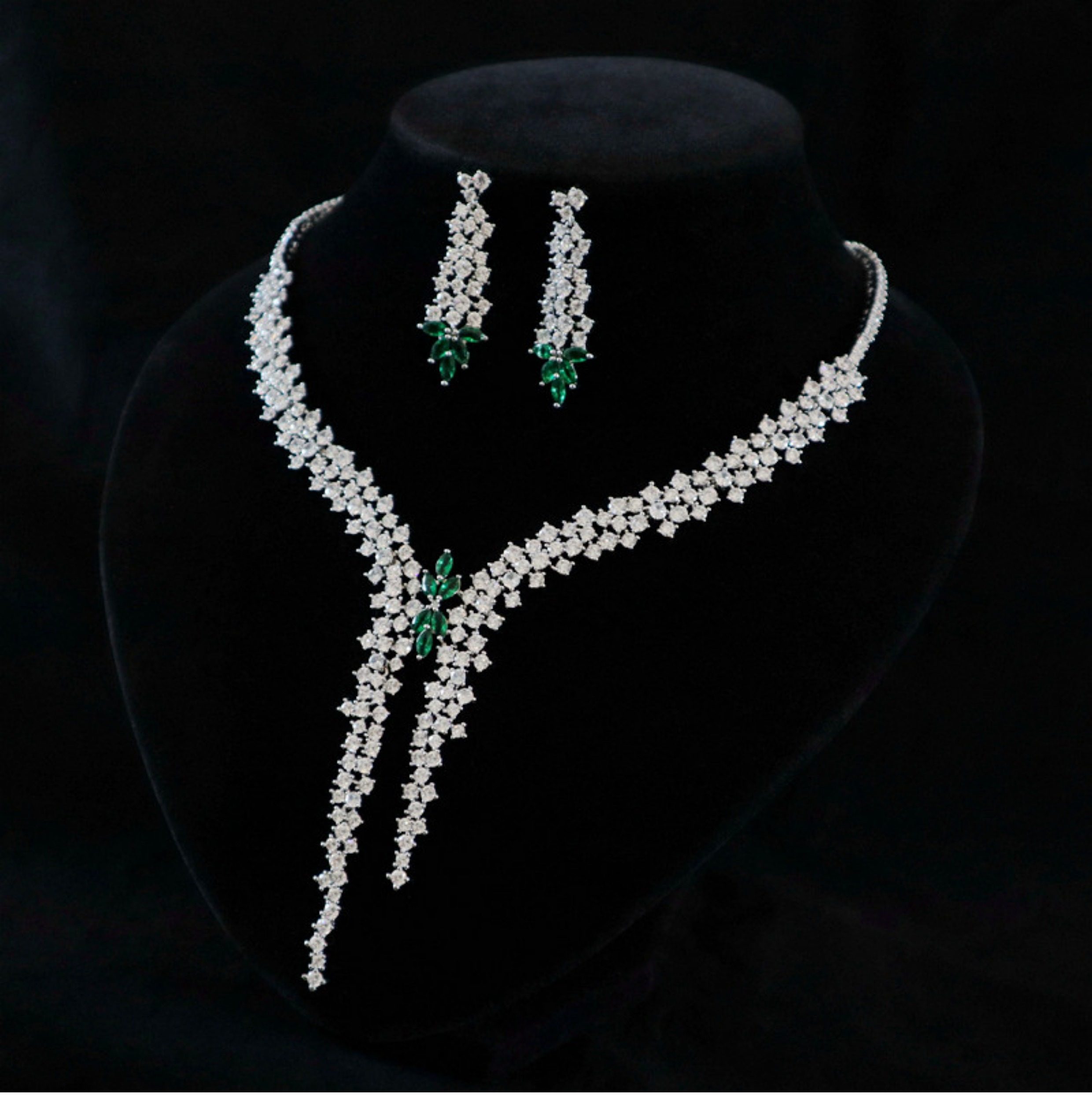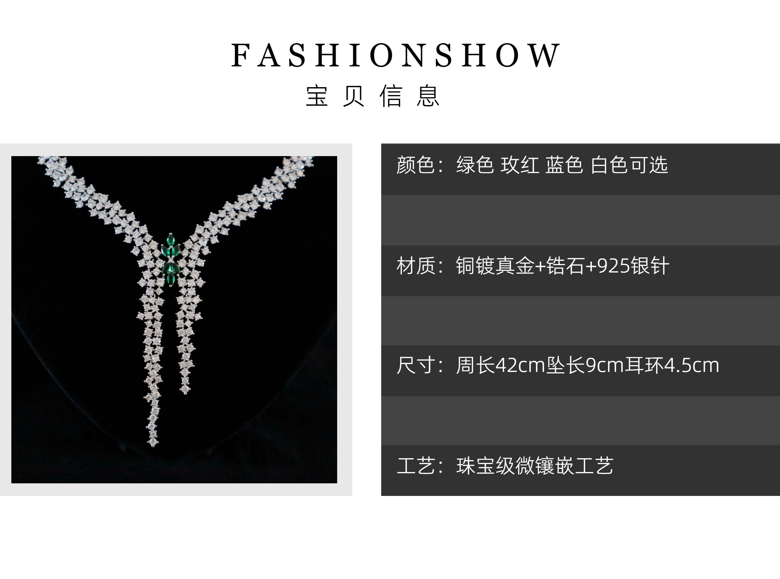 Color Classification Green Necklace + Earrings Set,Rose Necklace + Earrings Set,Blue Necklace + Earrings Set,White Necklace + Earrings Set,Green Necklace + Ear Clip Set,Rose Necklace + Ear Clip Set,Blue Necklace + Ear Clip Set,White Necklace + Ear Clip Set
