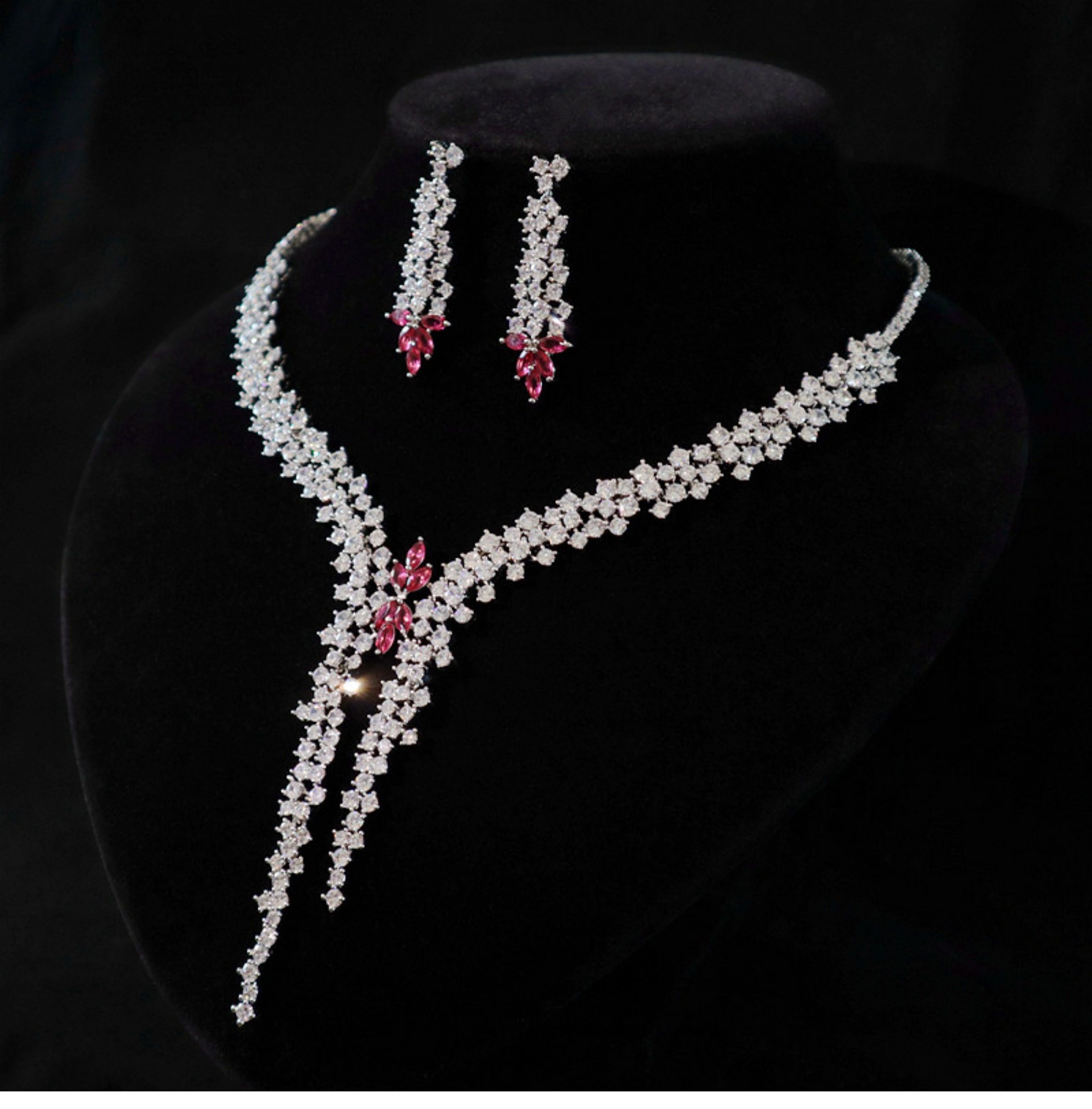 High-End New Jewelry, Light Luxury Zircon Evening Dress Accessories, Wedding Jewelry Necklace and Earrings Two-Piece Set with Silver Needle
