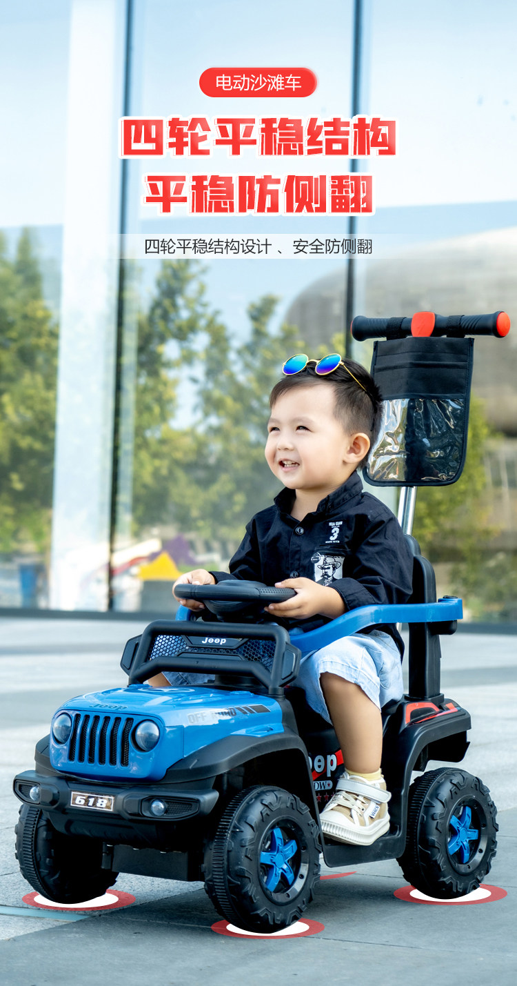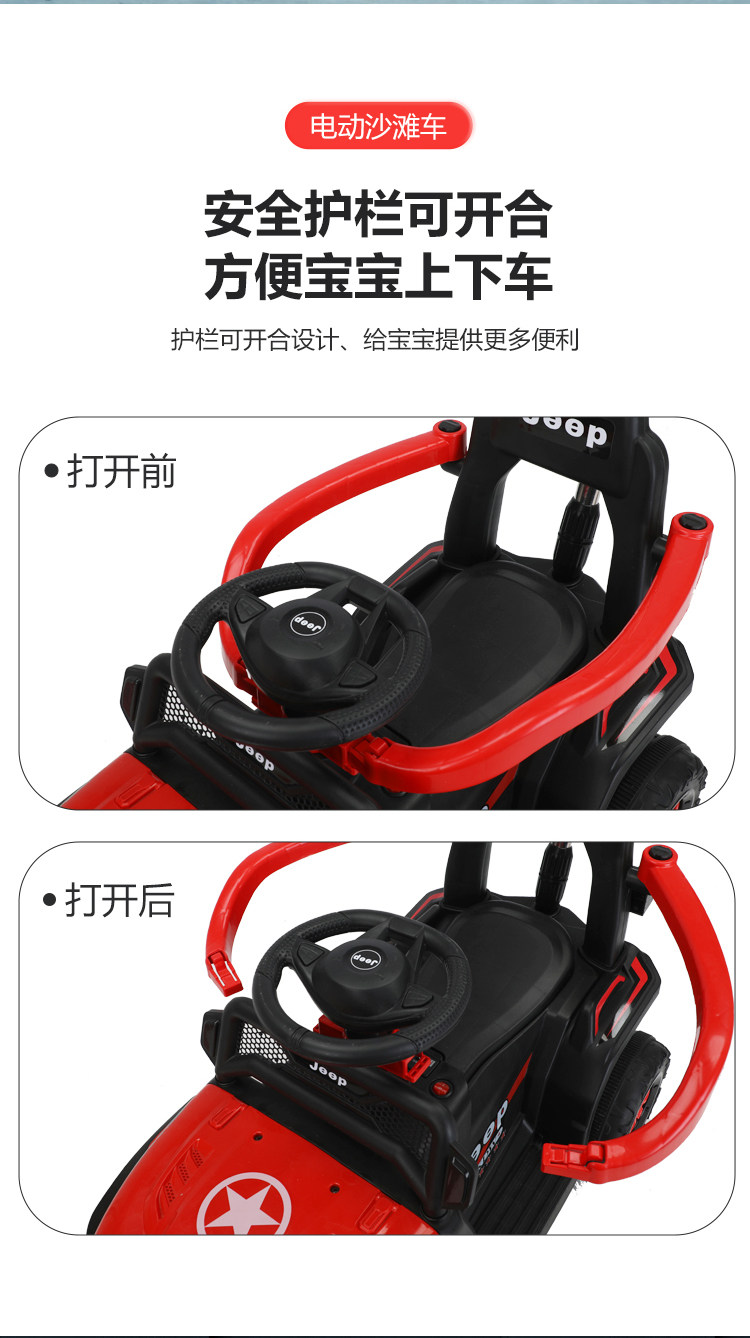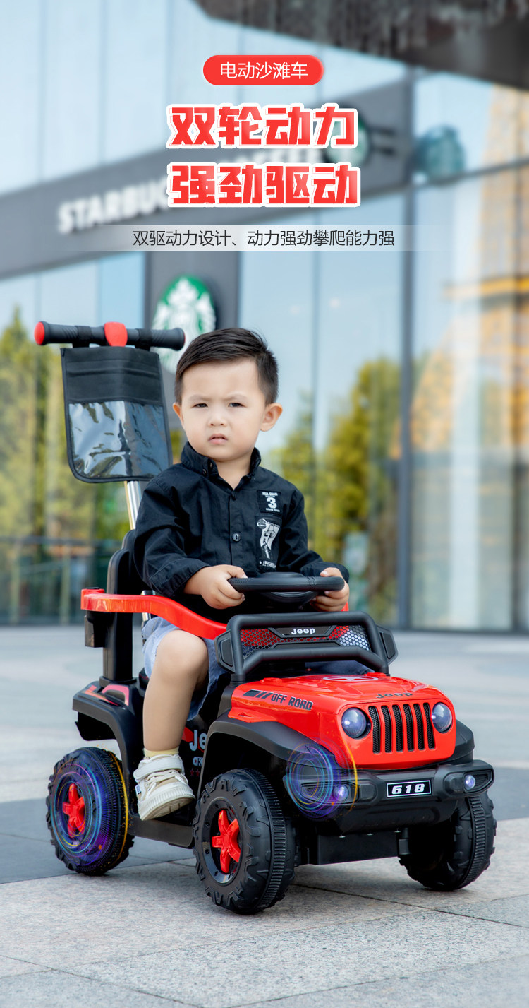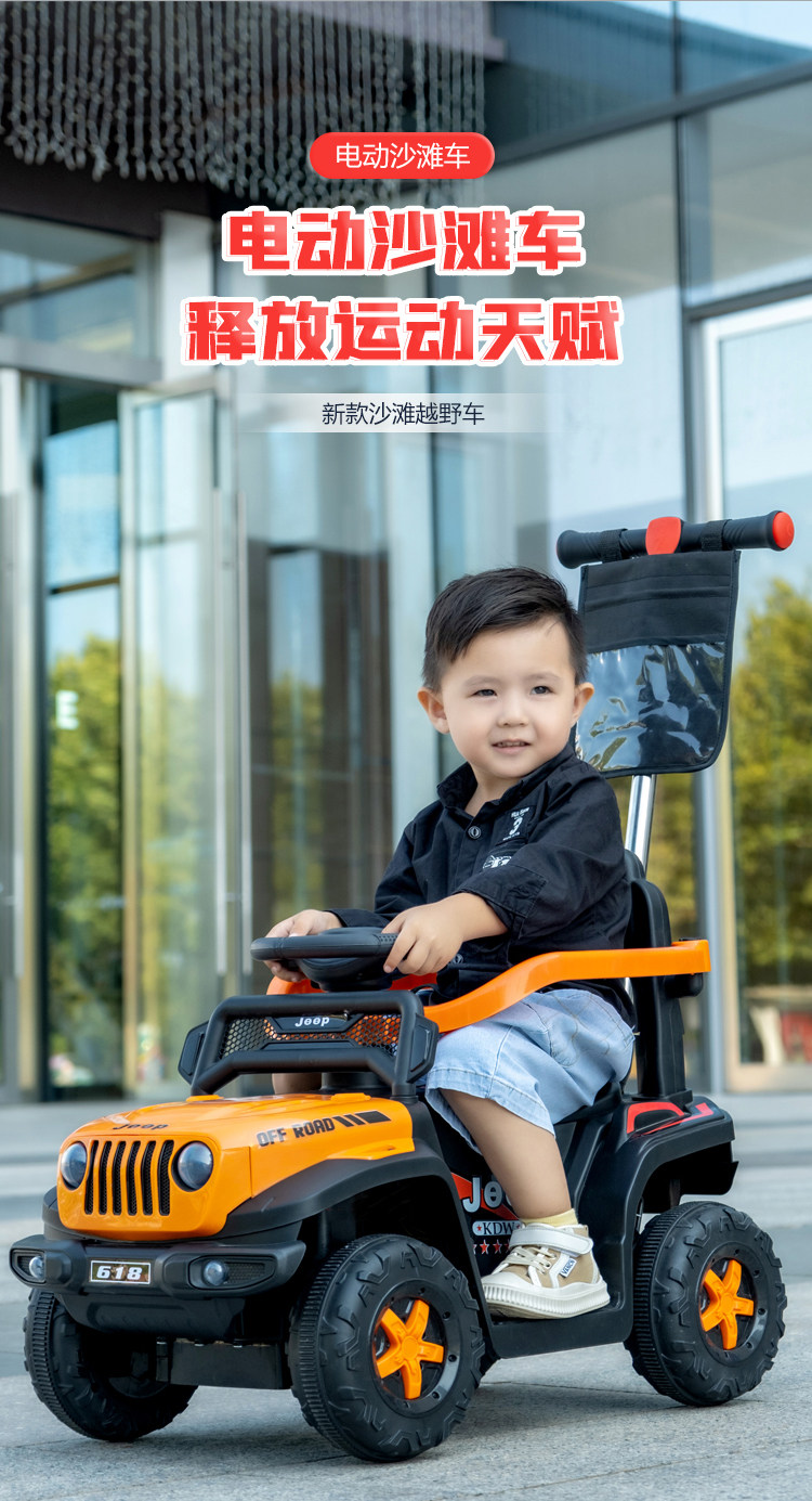 Children's Electric Off-Road Vehicle, Jeep Four-Wheel Beach Vehicle, Rechargeable Remote Control Toy Car for Boys and Girls, Can Be Ridden by Children