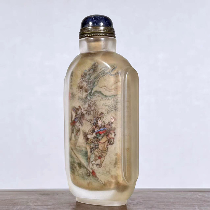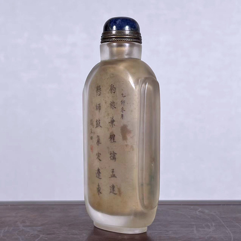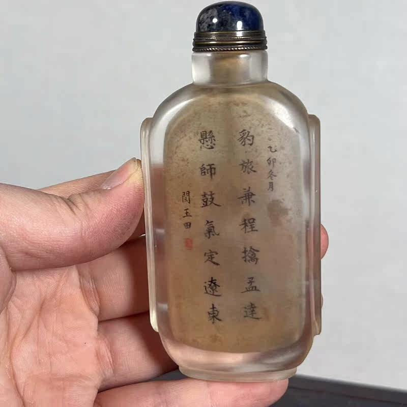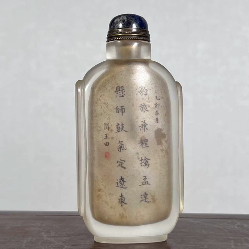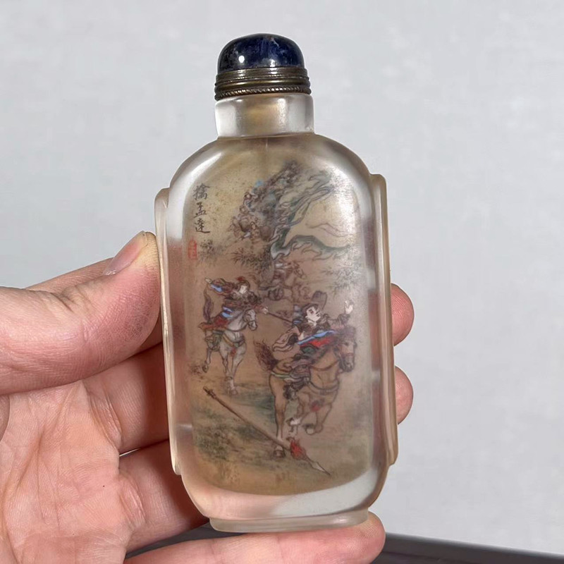 清代闫玉田款天然琉璃胎内画人物鼻烟壶老物件收藏品文玩古董把件