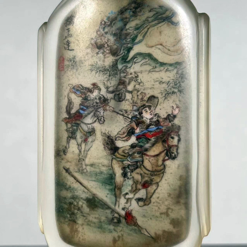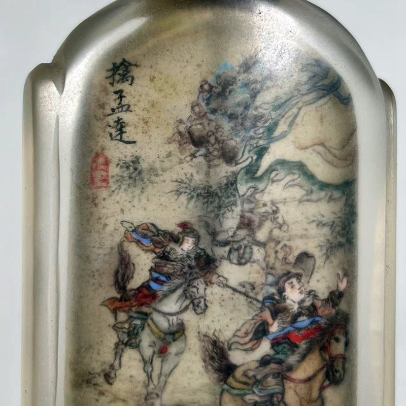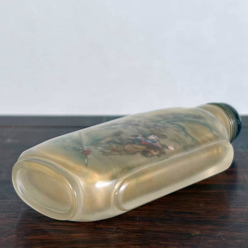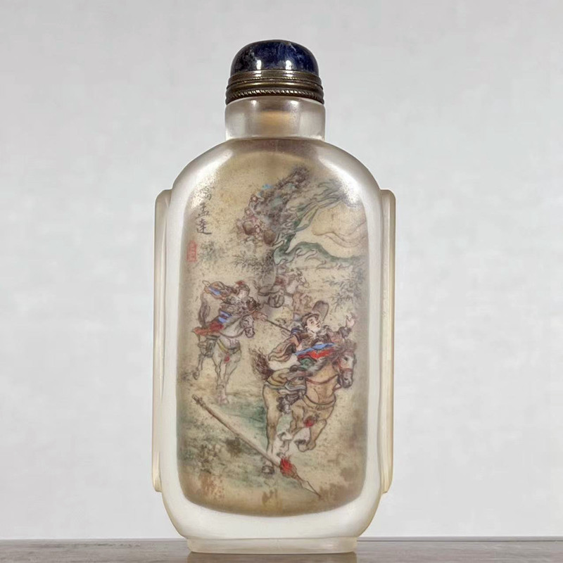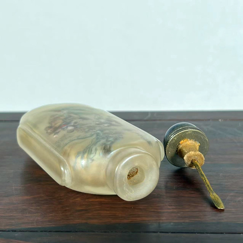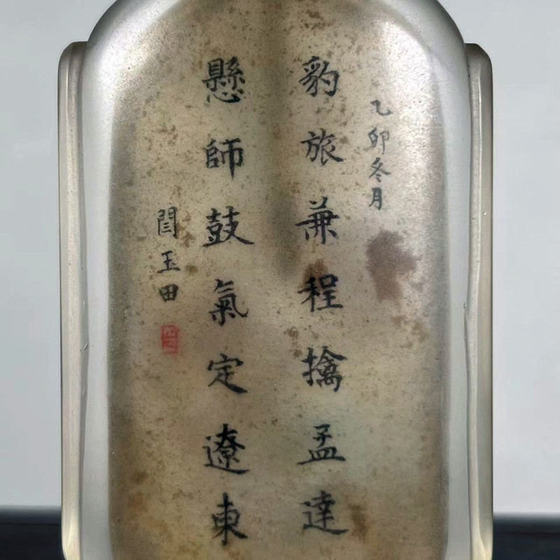 清代闫玉田款天然琉璃胎内画人物鼻烟壶老物件收藏品文玩古董把件