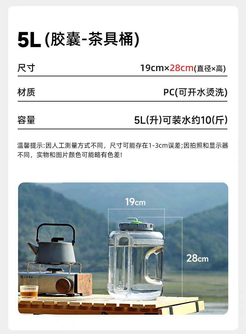 家用储水用纯净水桶空桶矿泉水手提食品级饮水机PC桶装水储水桶5L