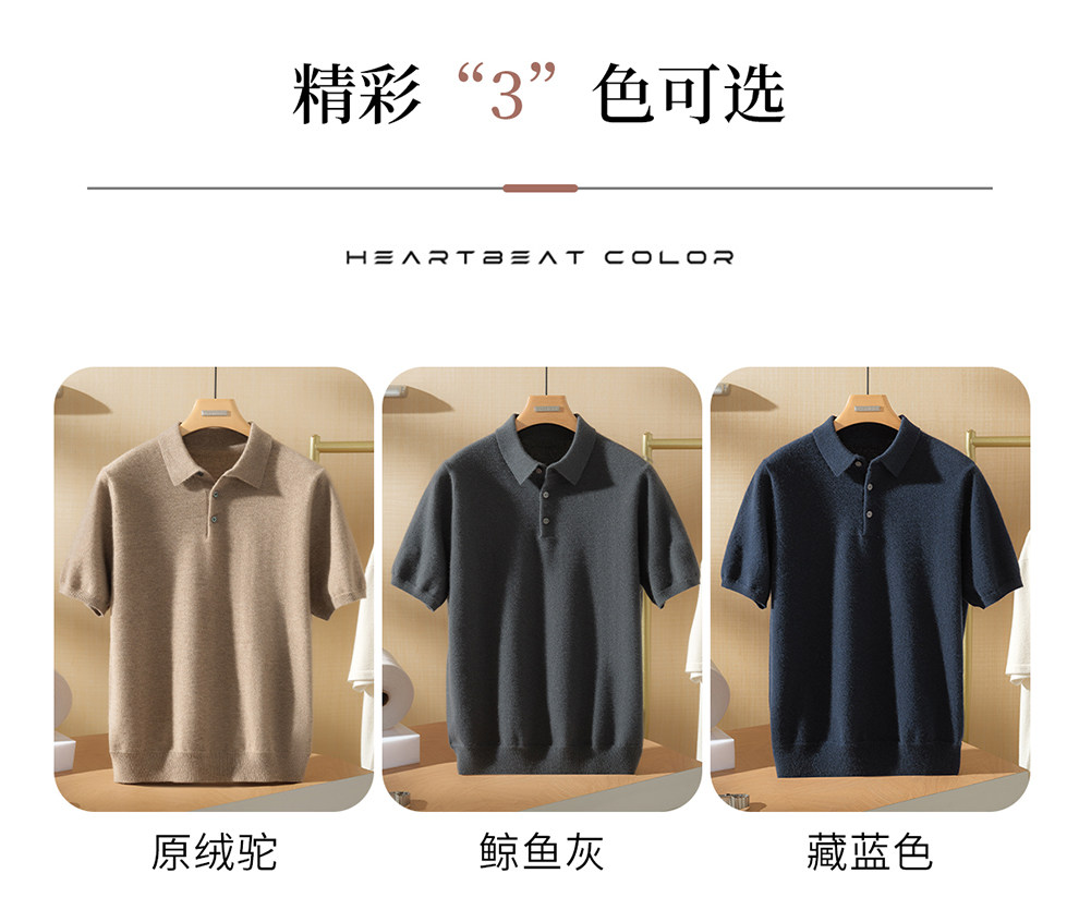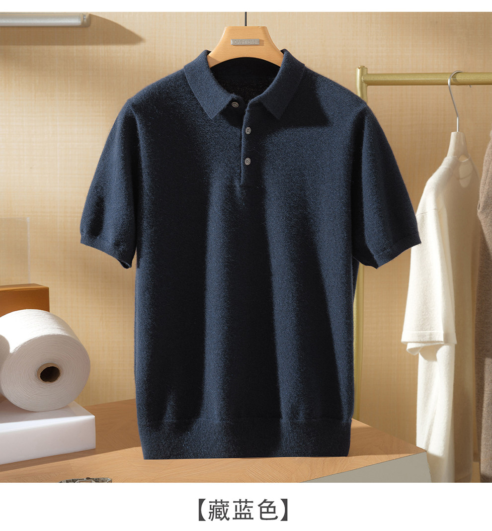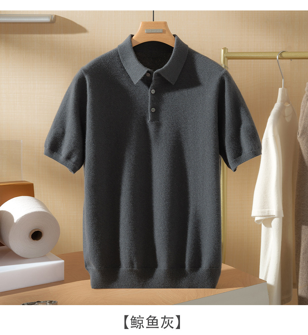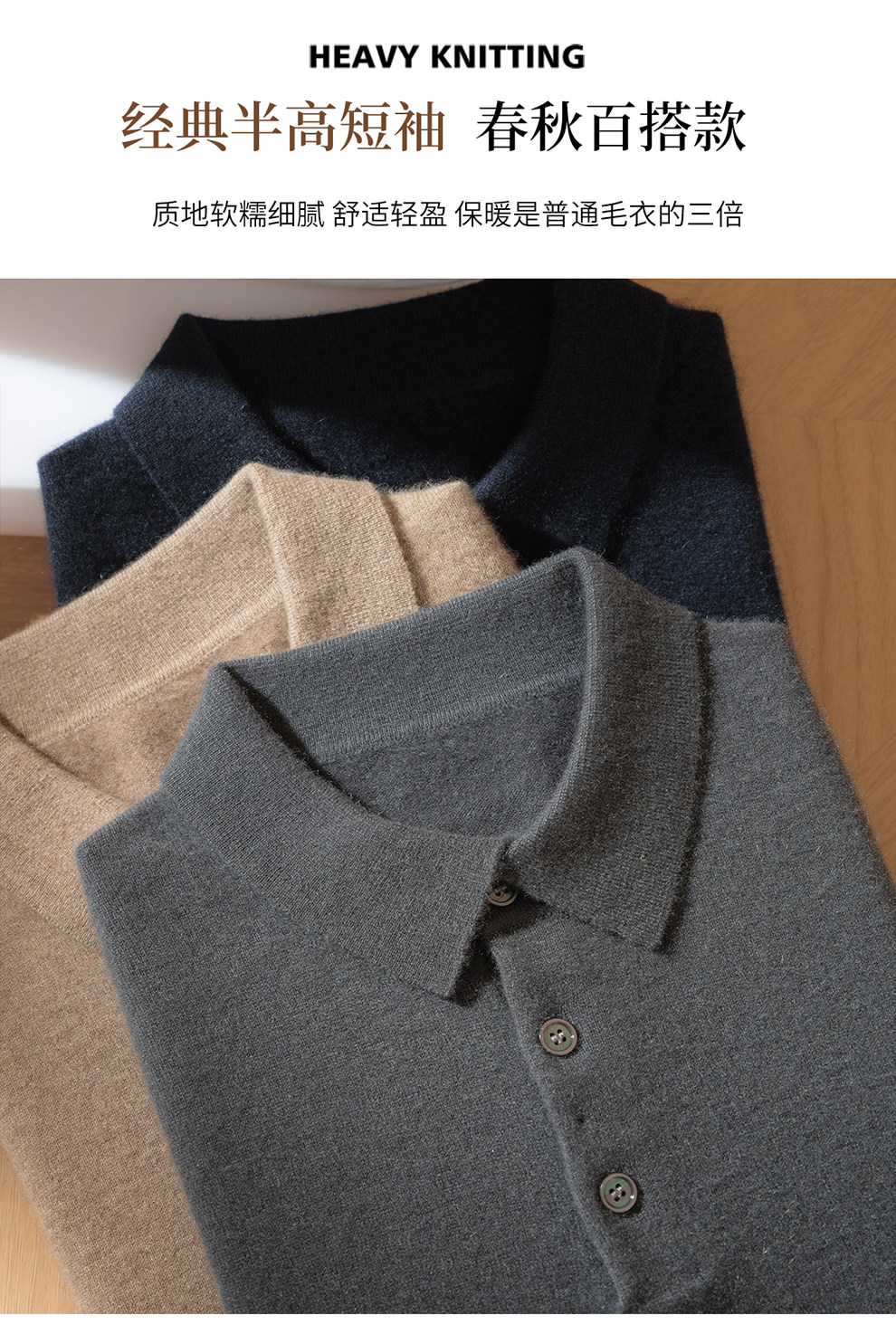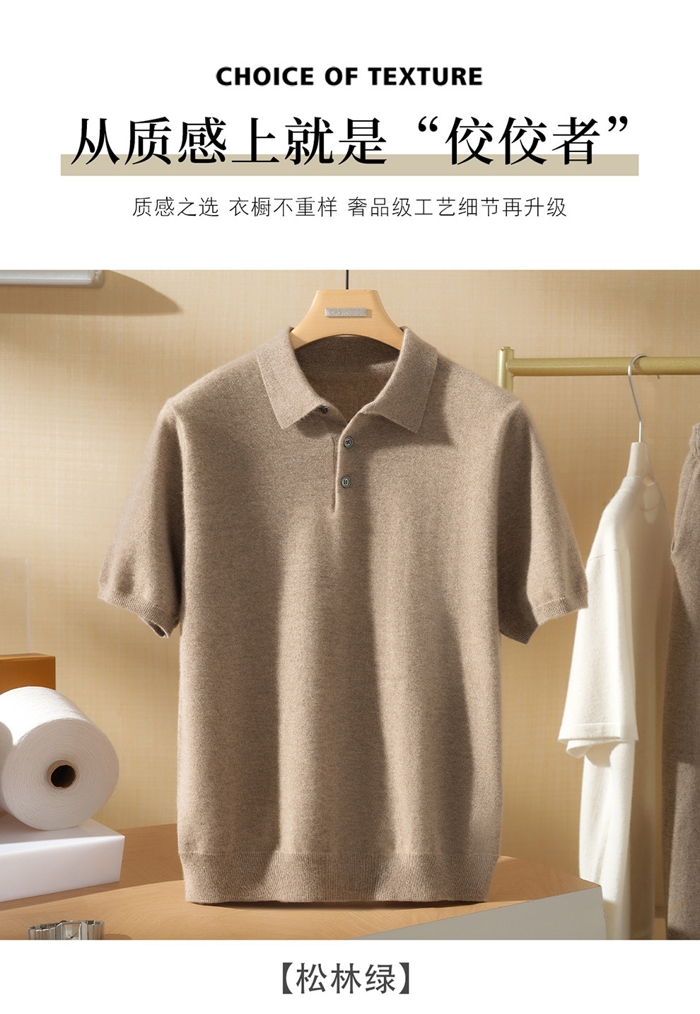 Polo Collar 100% Pure Cashmere Sweater Short-Sleeve T-Shirt Men's Spring and Autumn Short Pullover Half-Sleeve Knitwear Loose Fit
