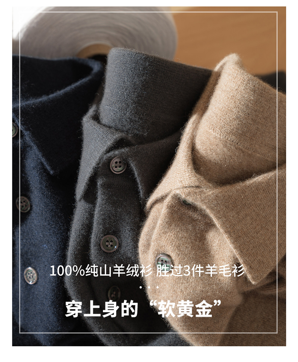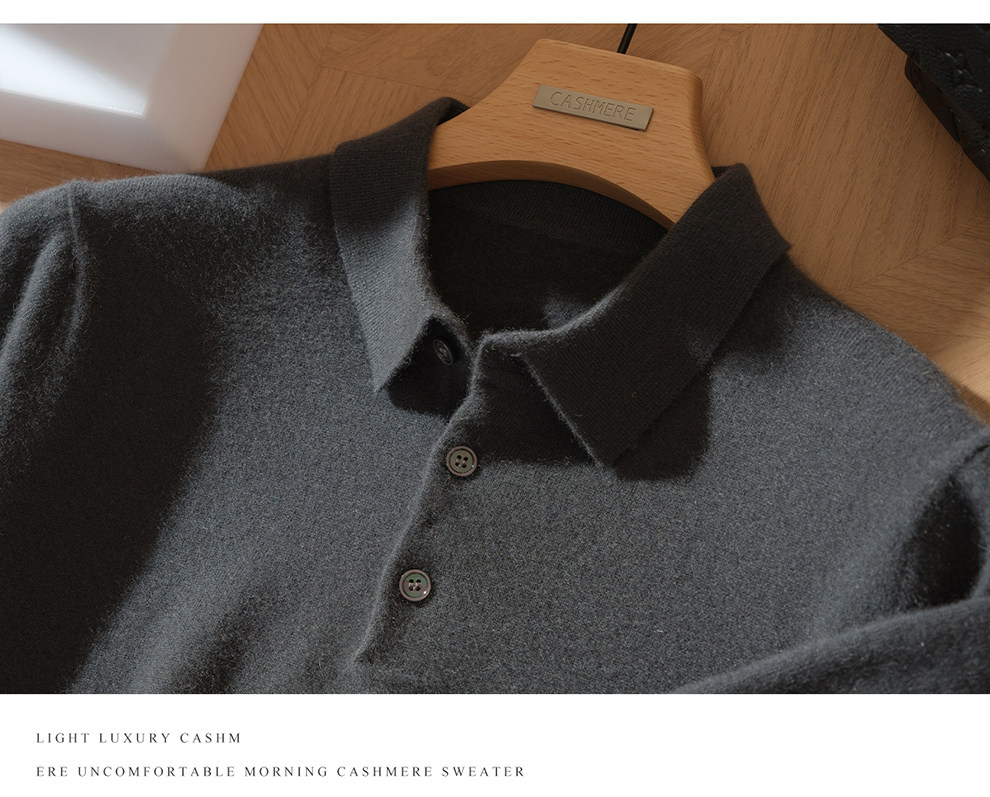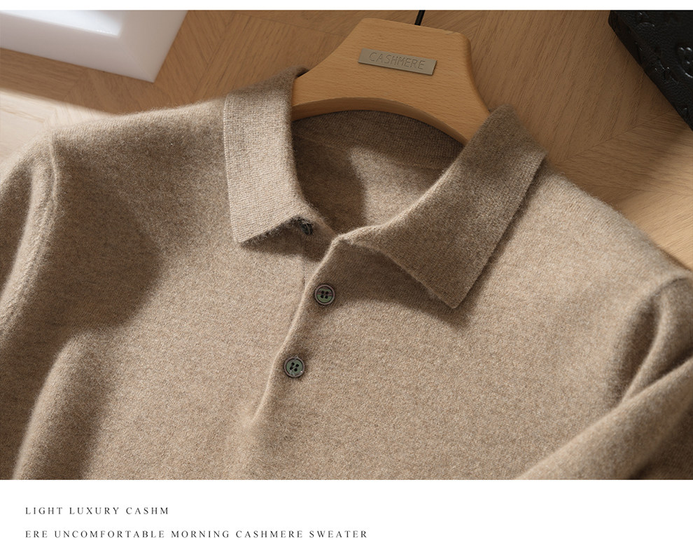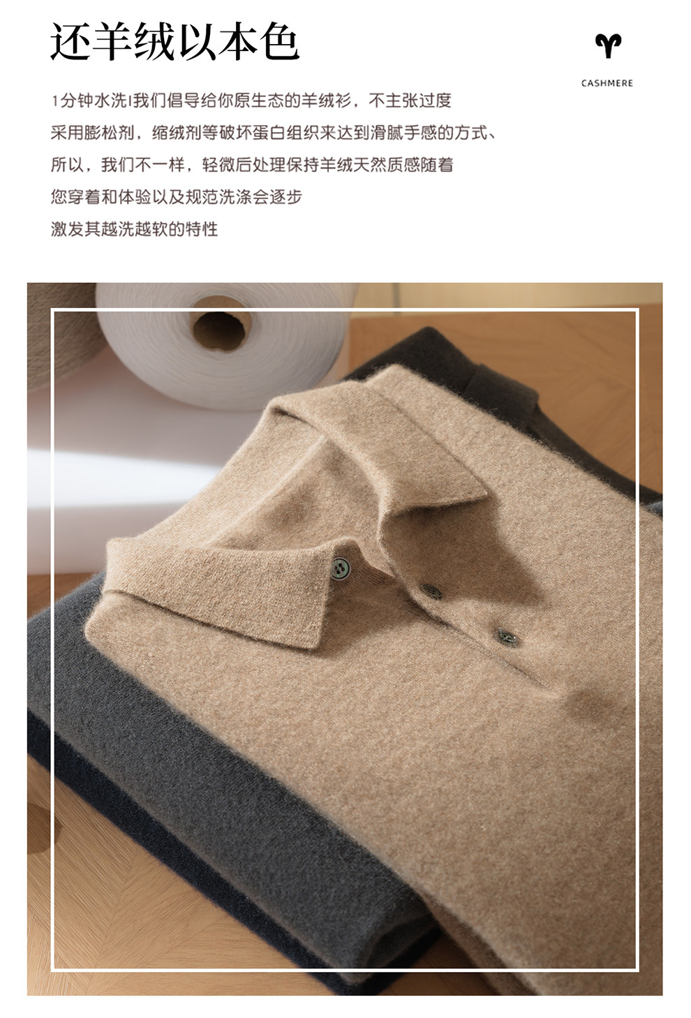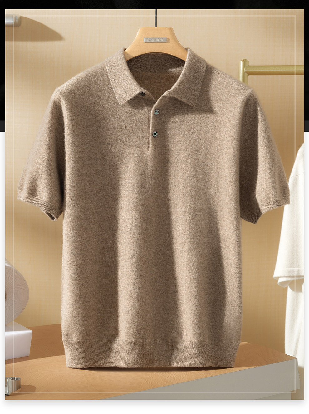 Polo Collar 100% Pure Cashmere Sweater Short-Sleeve T-Shirt Men's Spring and Autumn Short Pullover Half-Sleeve Knitwear Loose Fit