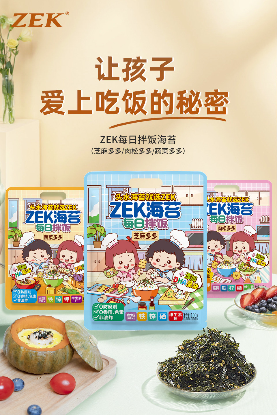 Zek daily bibimbap, seaweed, meat floss, vegetable flavor, original ready-to-eat sesame and seaweed shredded nutritious and healthy snack bag