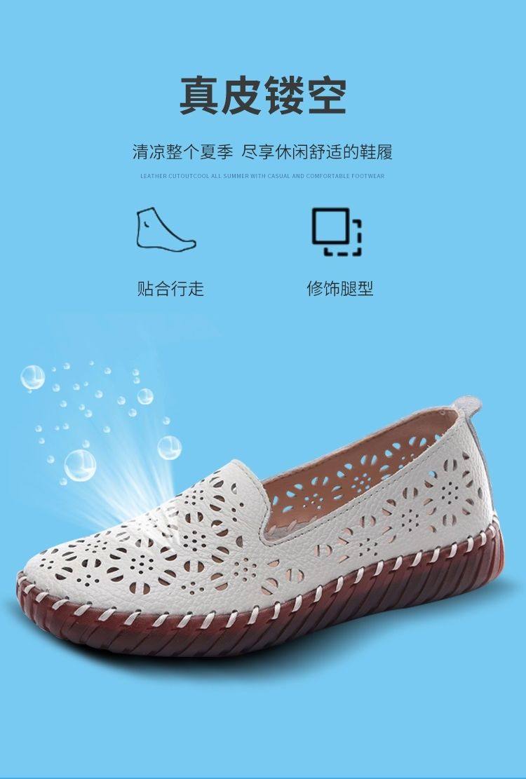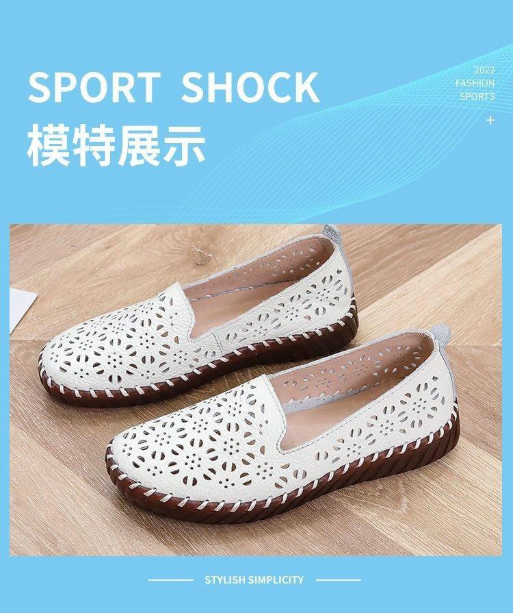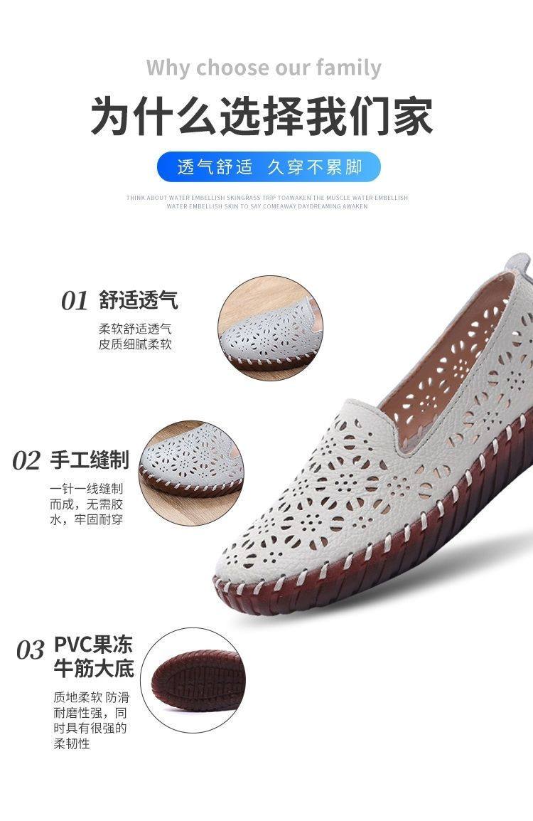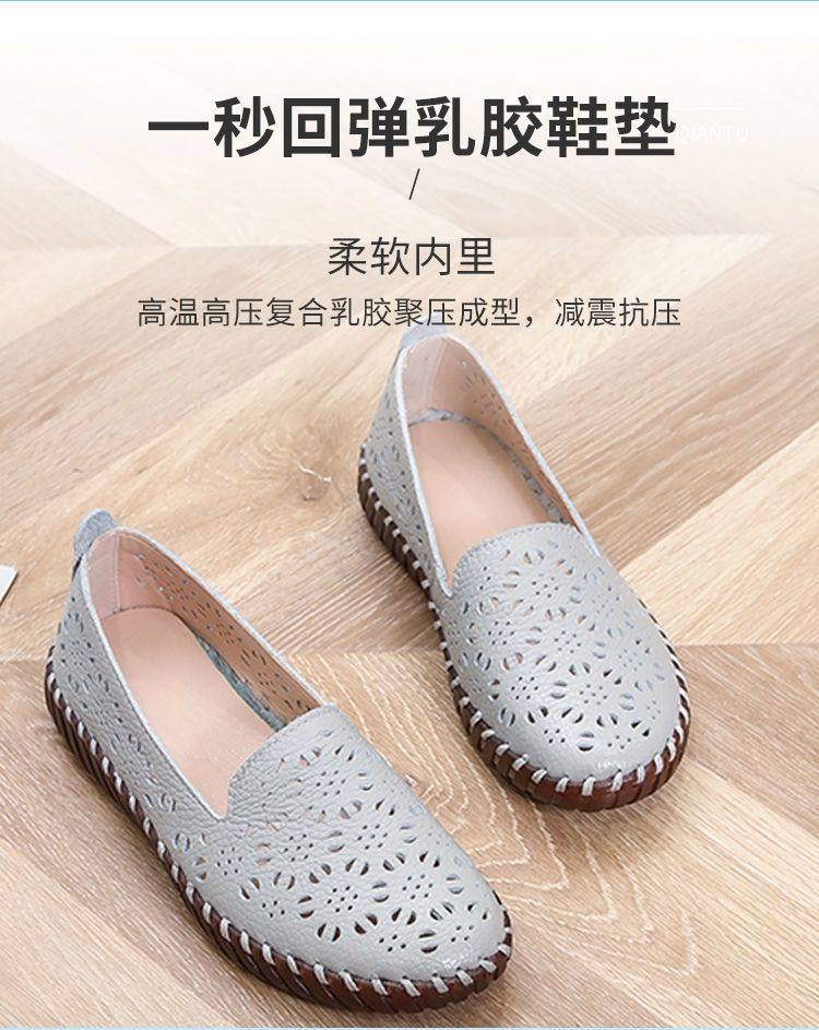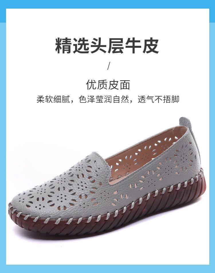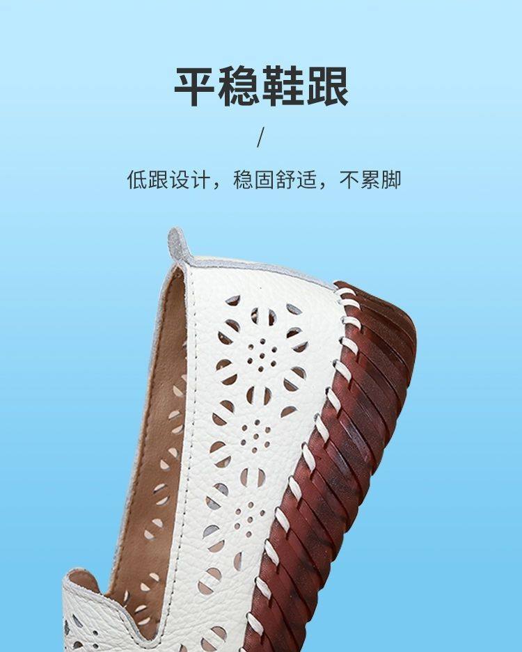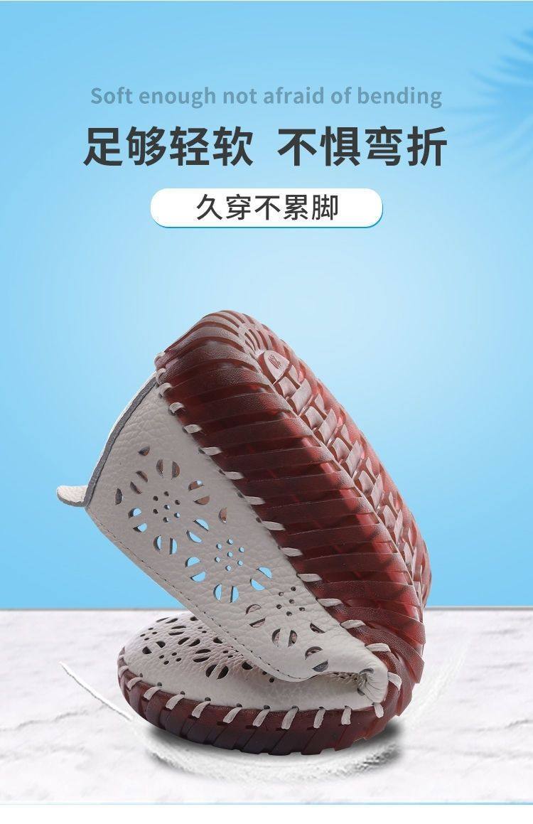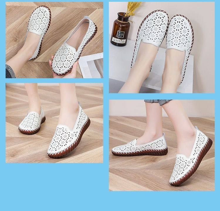 Genuine Leather Mother's Shoes for Women, Soft Sole, Comfortable and Lightweight, Hollowed-Out Design, Women's Leather Shoes, Sandals, Summer Flats