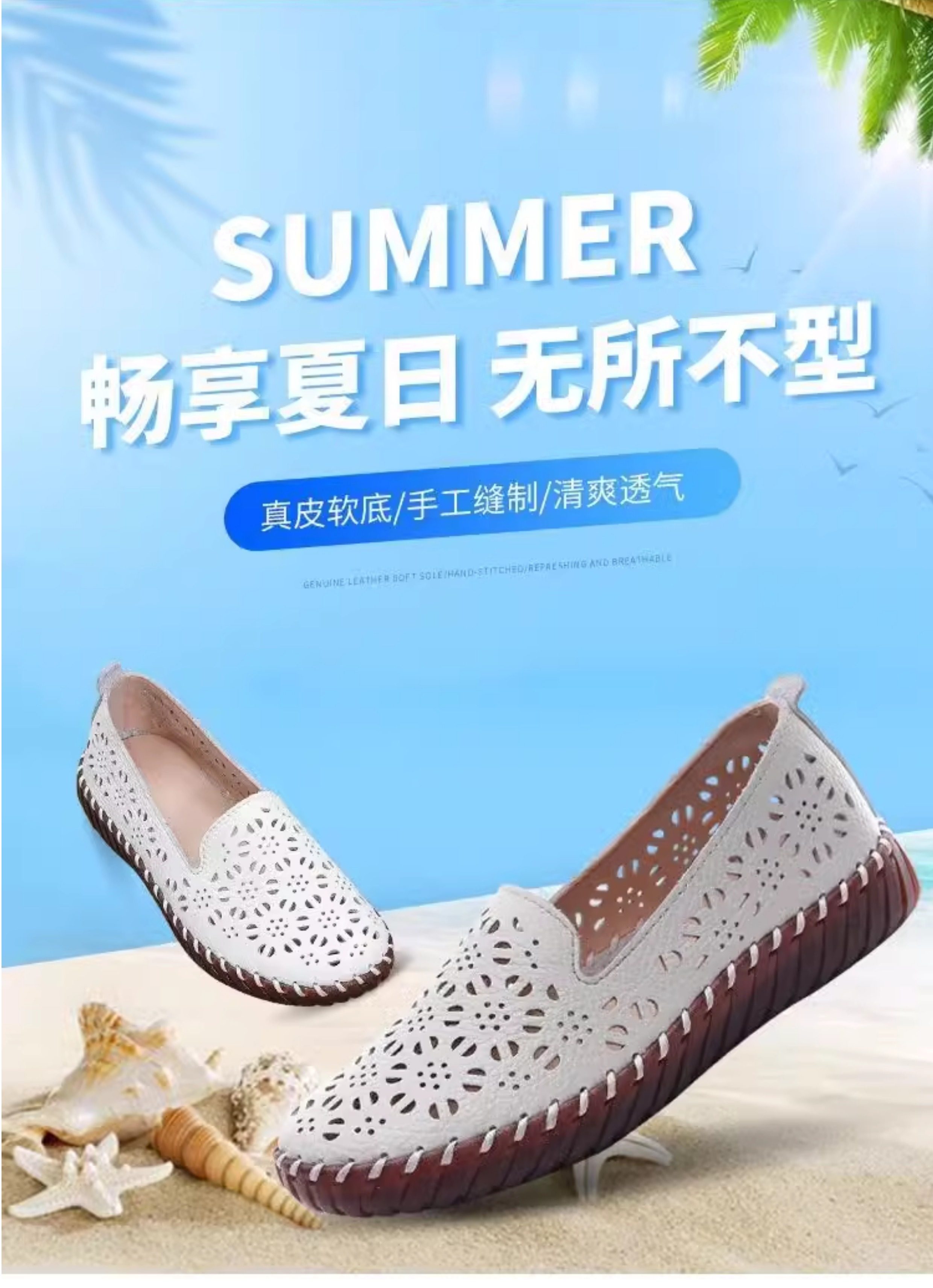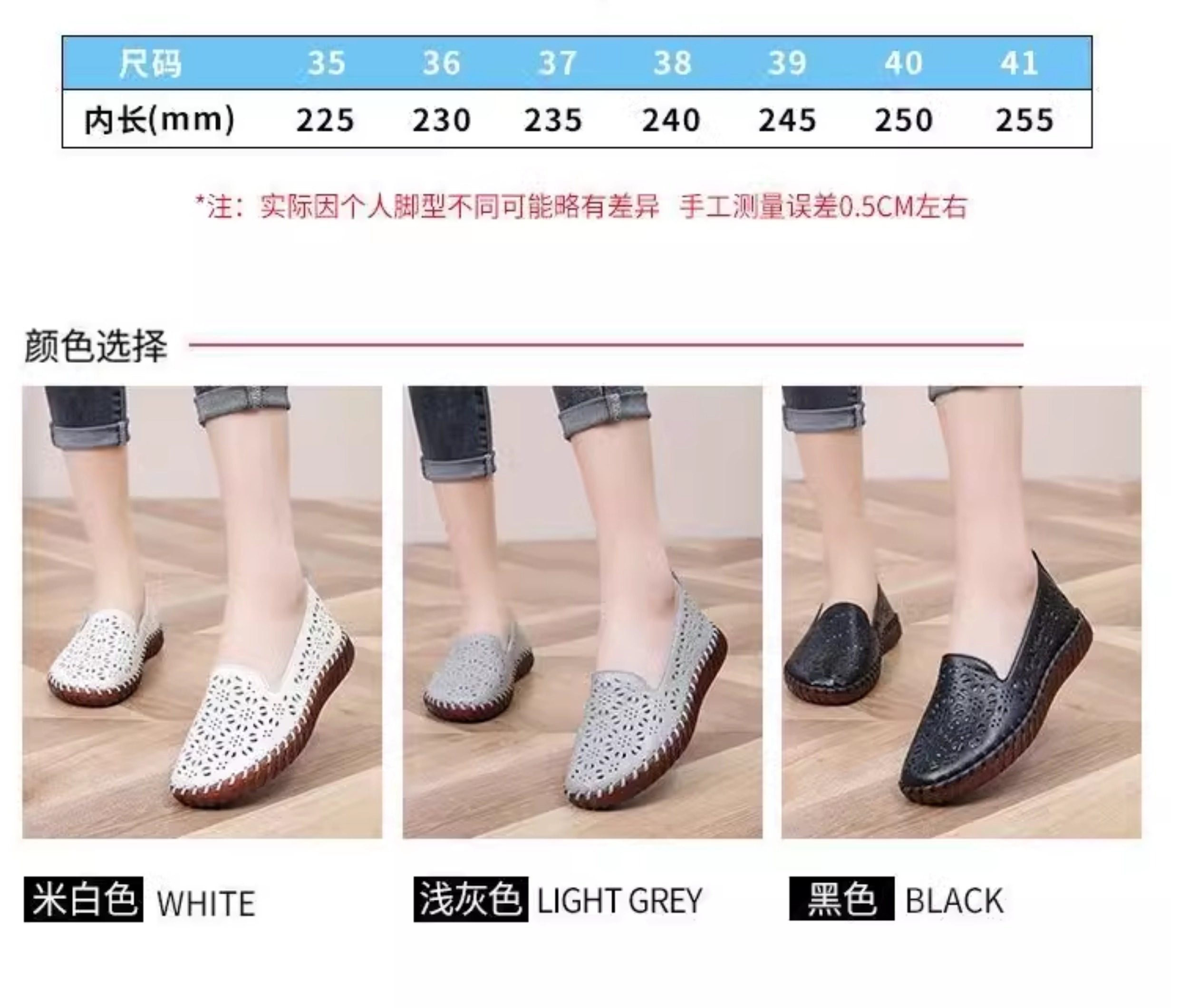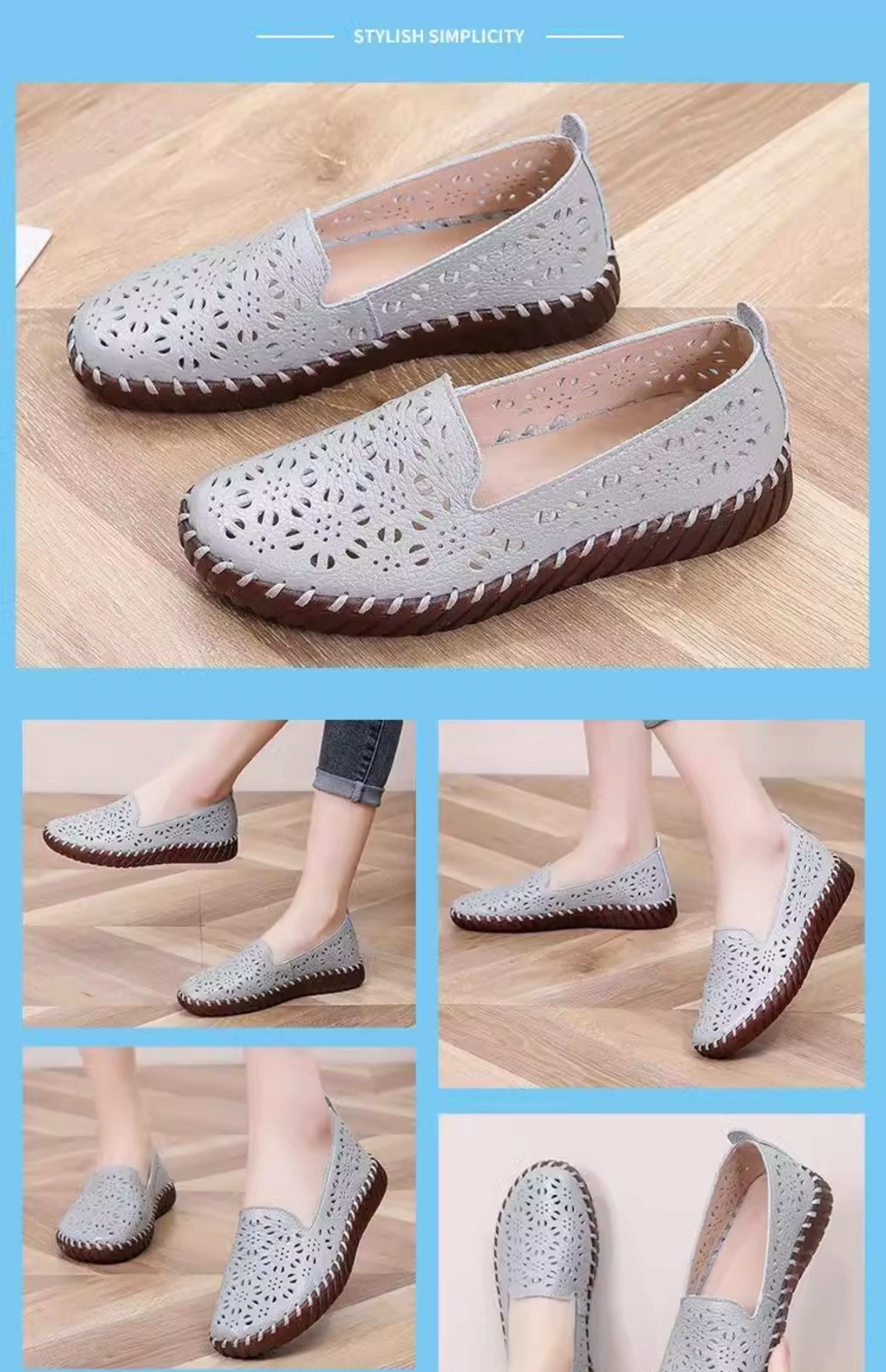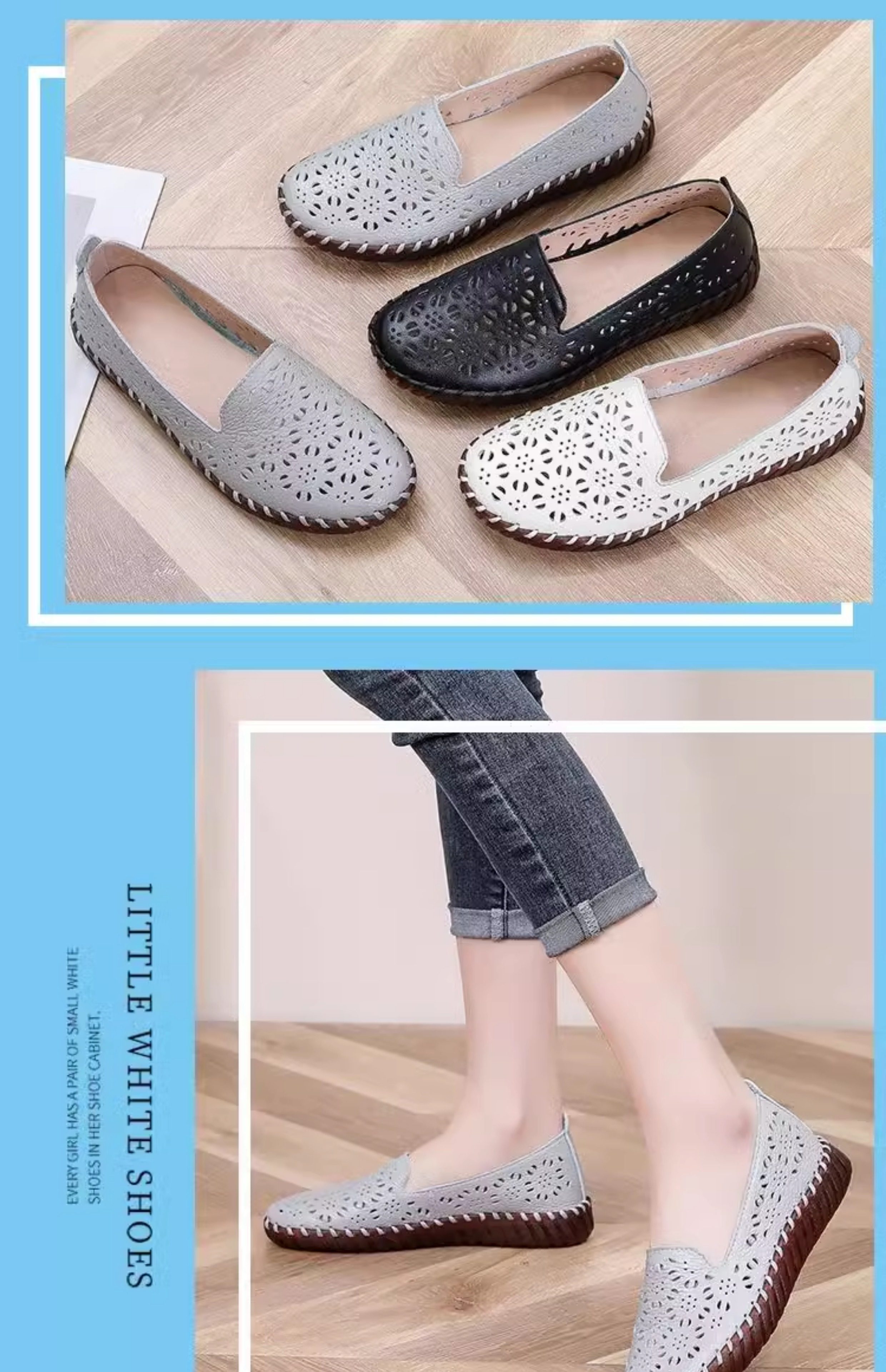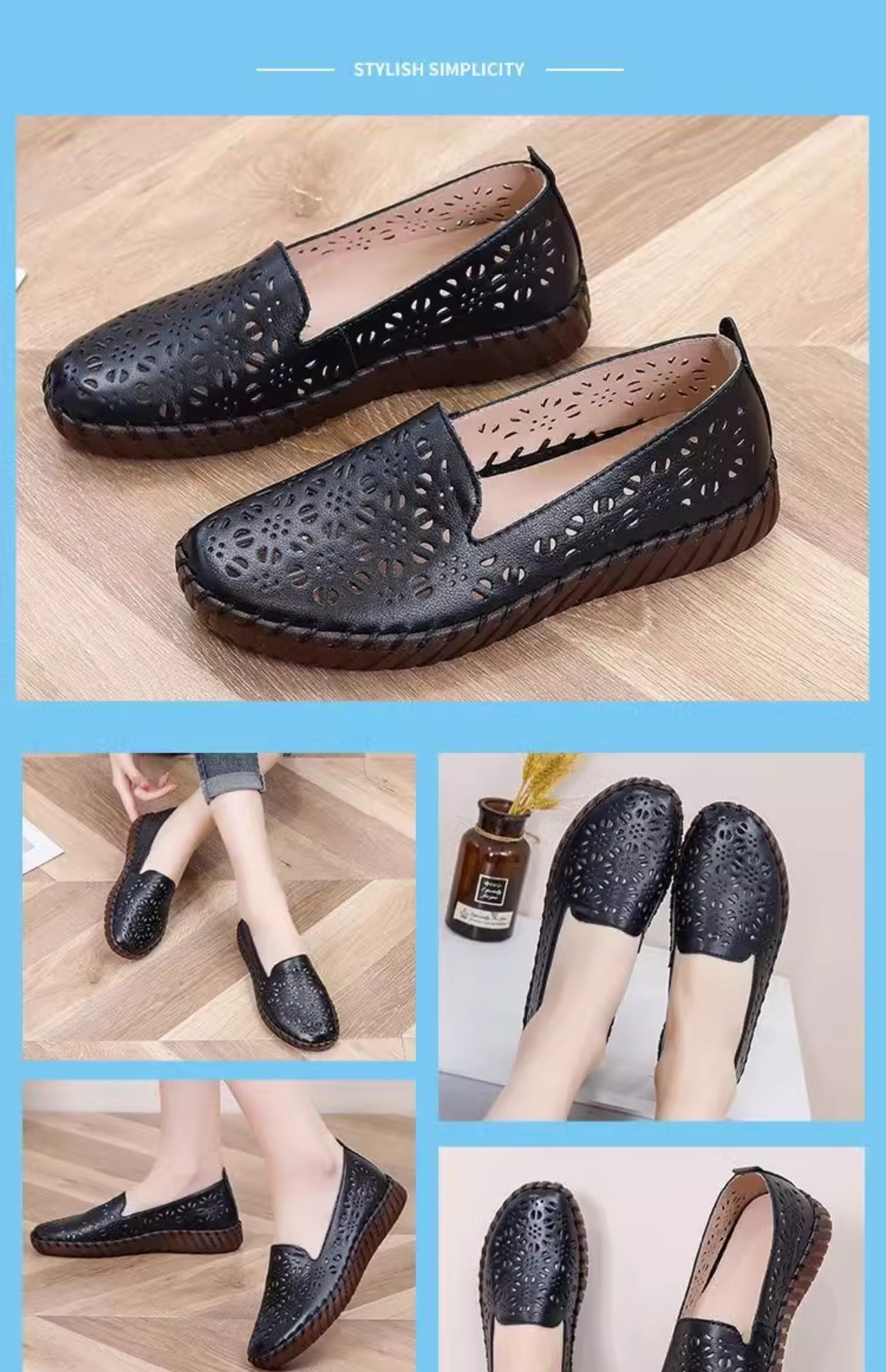 Genuine Leather Mother's Shoes for Women, Soft Sole, Comfortable and Lightweight, Hollowed-Out Design, Women's Leather Shoes, Sandals, Summer Flats