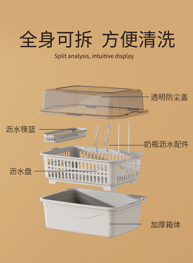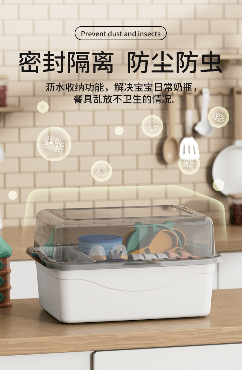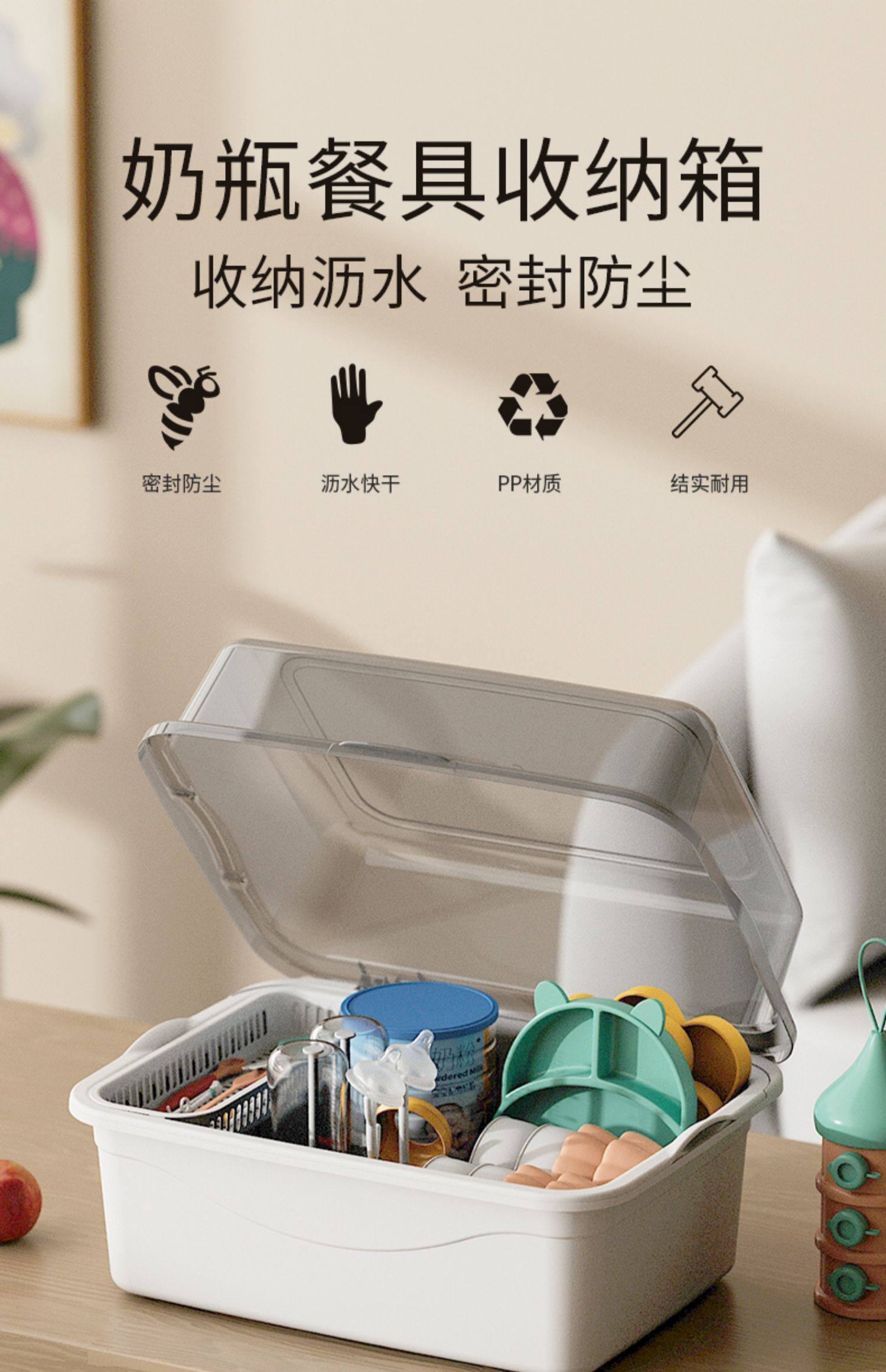 宝宝餐具收纳盒奶瓶沥水架收纳箱婴儿专用儿童辅食工具碗收纳防尘