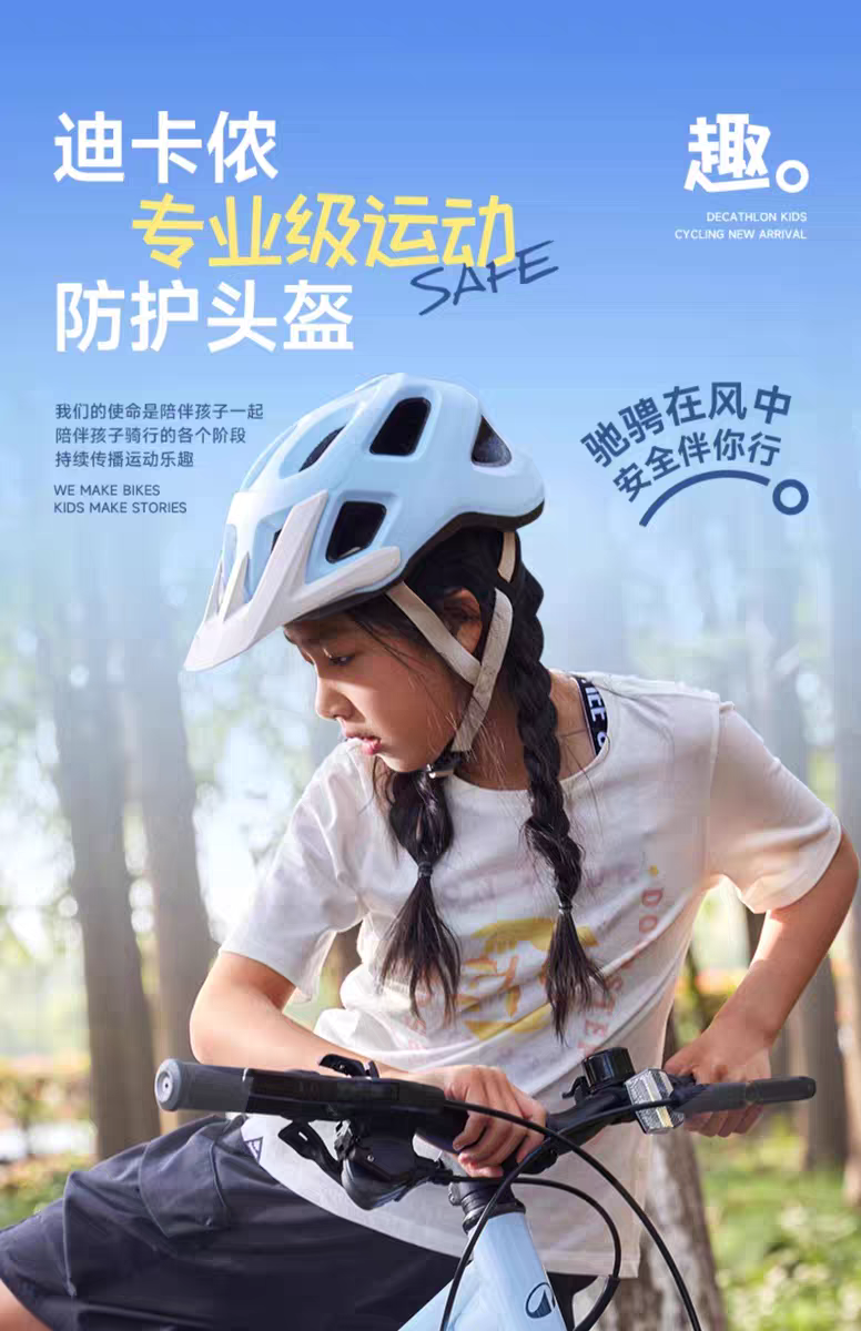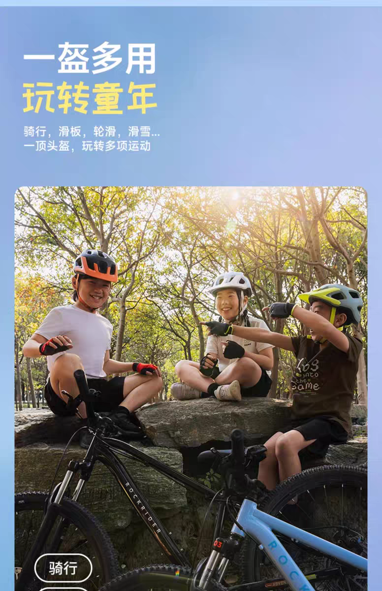迪卡侬骑行头盔儿童轮滑自行车护具装备平衡车男女童OVBK