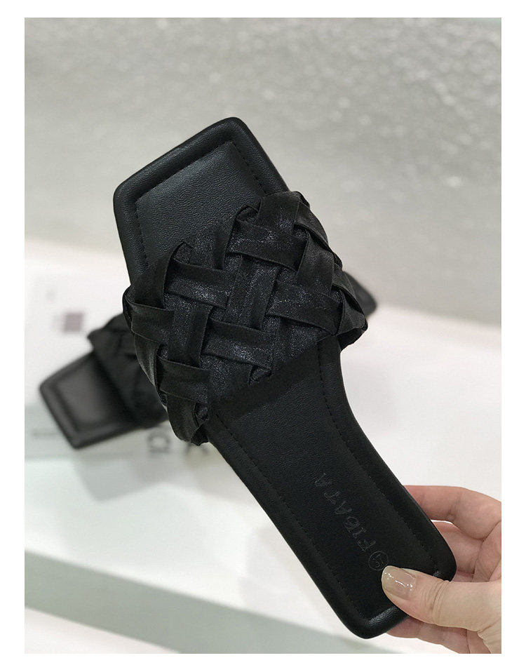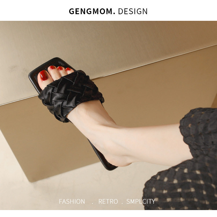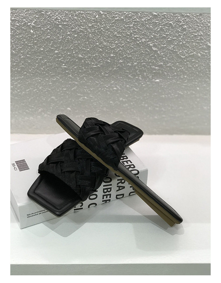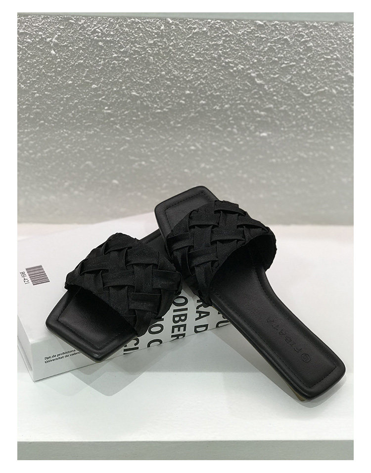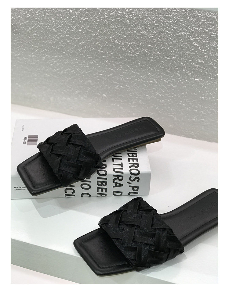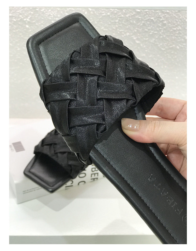 黑色绸缎编织平底一字拖鞋女外出穿夏季2025法式高级感配裙子凉拖