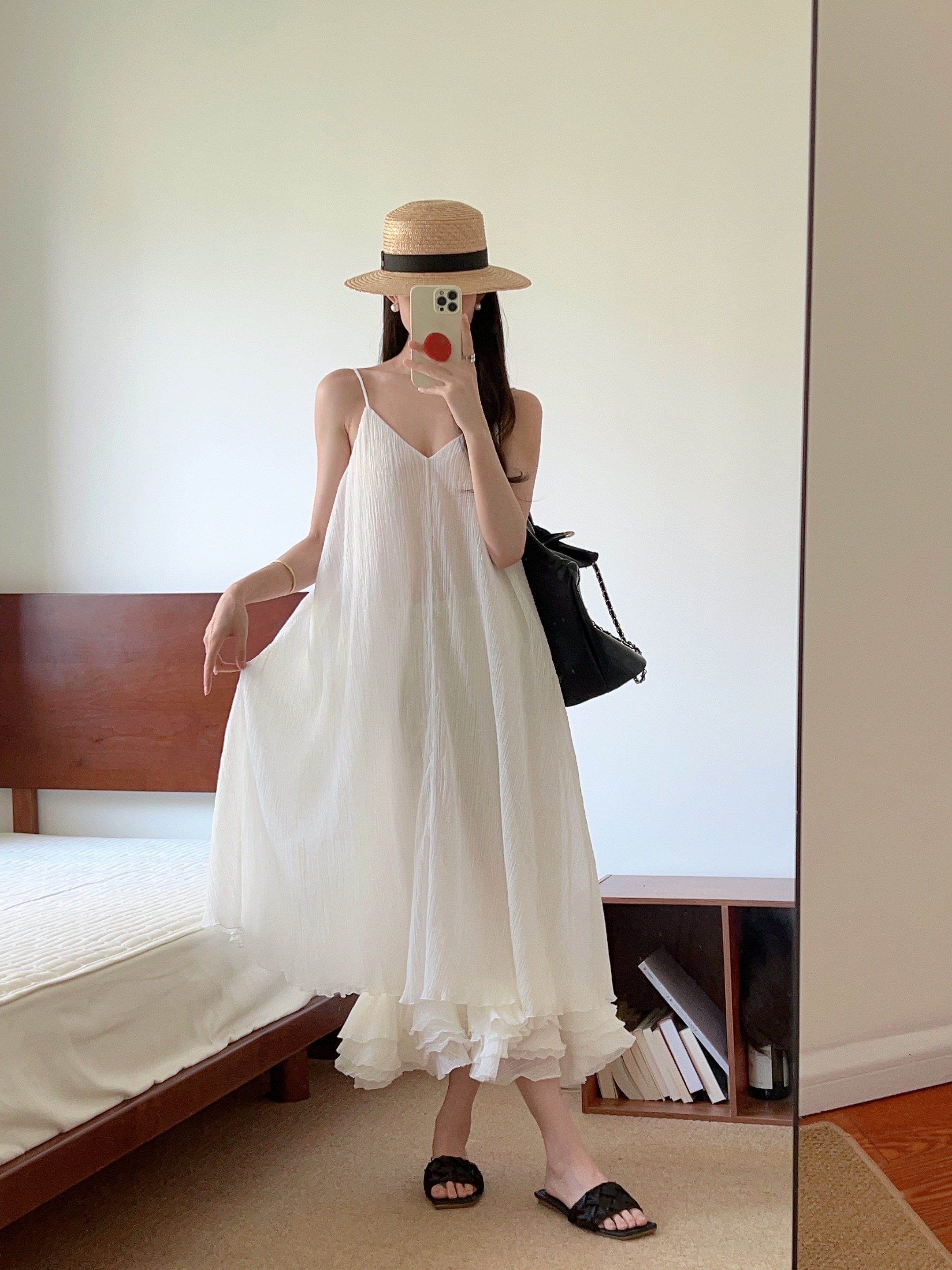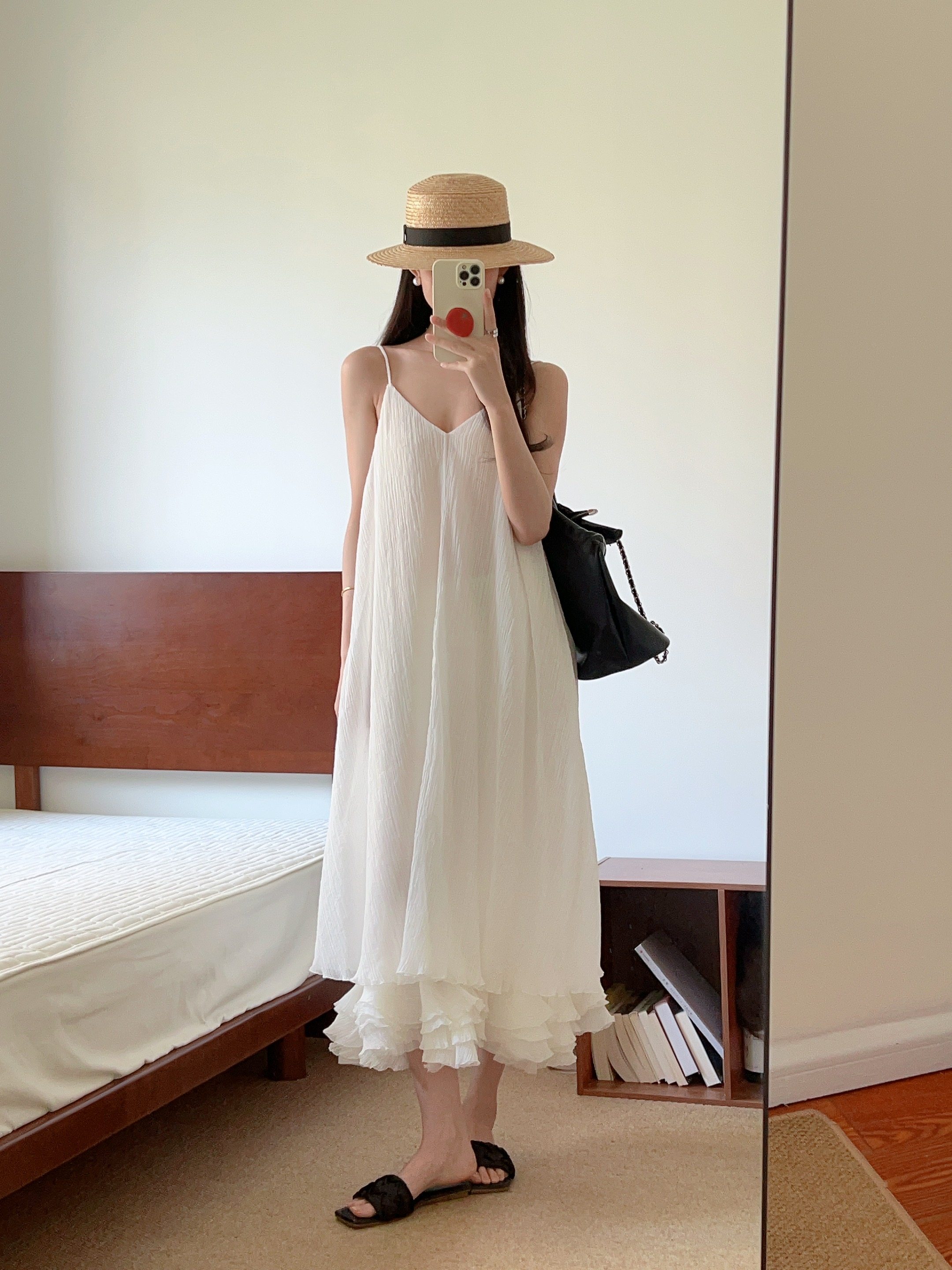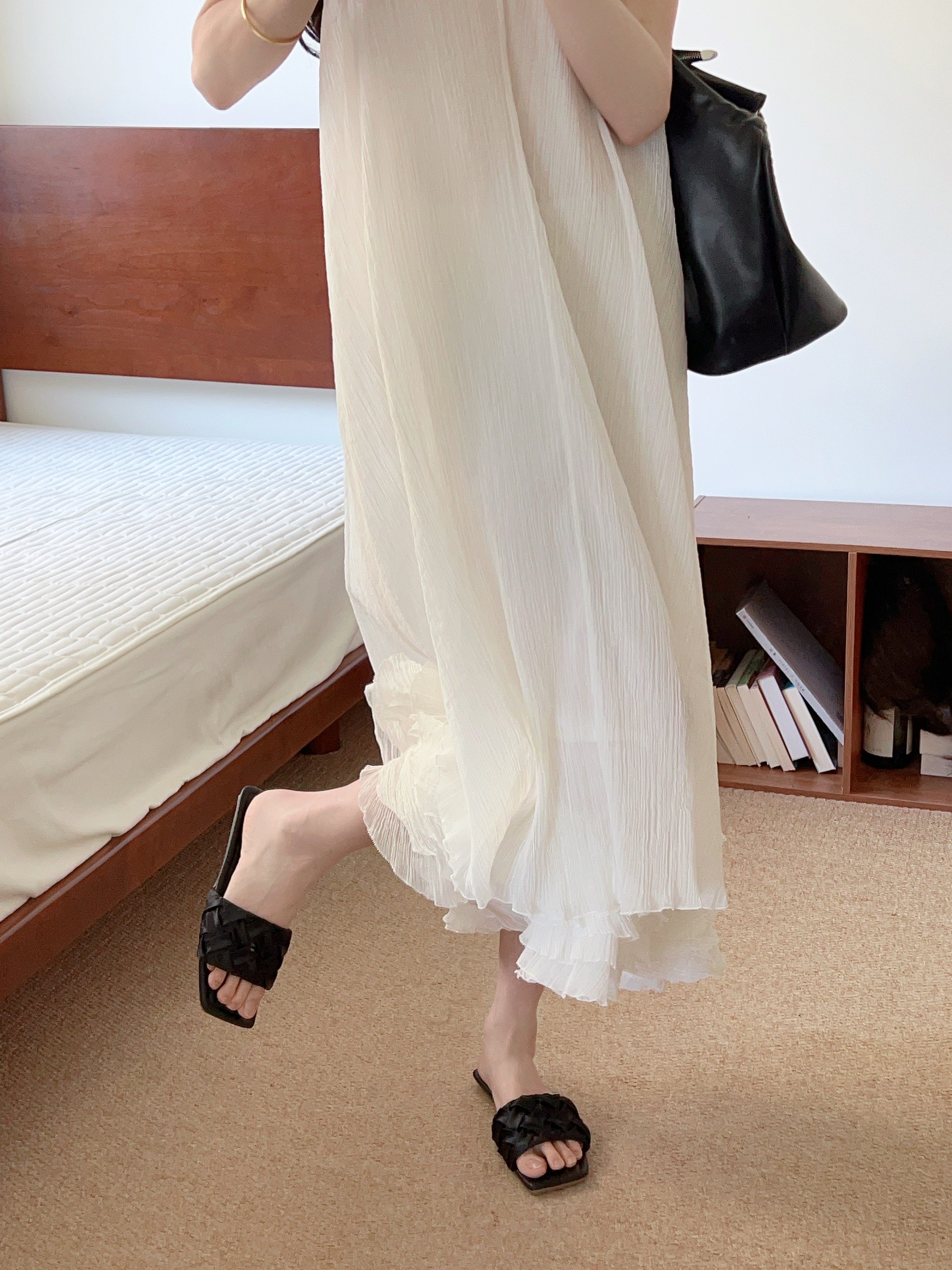 黑色绸缎编织平底一字拖鞋女外出穿夏季2025法式高级感配裙子凉拖
