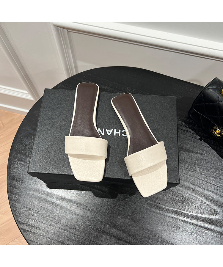 Cowhide Version ~ Genuine Leather Slip-On Slippers for Women, Summer Outdoor Wear, Fashionable Flat Half-Slippers, Niche High-End Sandals