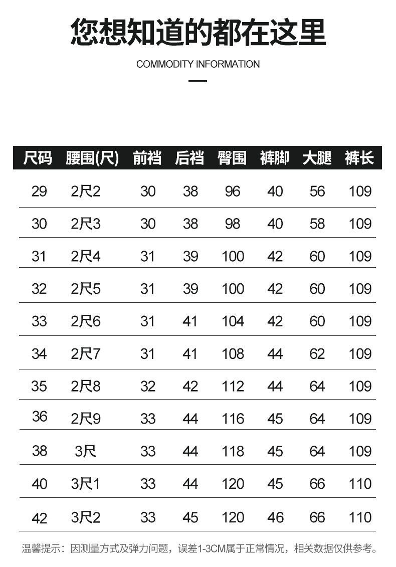 尺码 29码=2尺2腰围,30码=2尺3腰围,31码=2尺4腰围,32码=2尺5腰围,33码=2尺6腰围,34码=2尺7腰围,35码=2尺8腰围,36码=2尺9腰围,38码=3尺0腰围,40码=3尺1腰围,42码=3尺2腰围,44码【3尺3腰围】,46码【3尺4腰围】,48码【3尺5腰围】,50码【3尺6腰围】