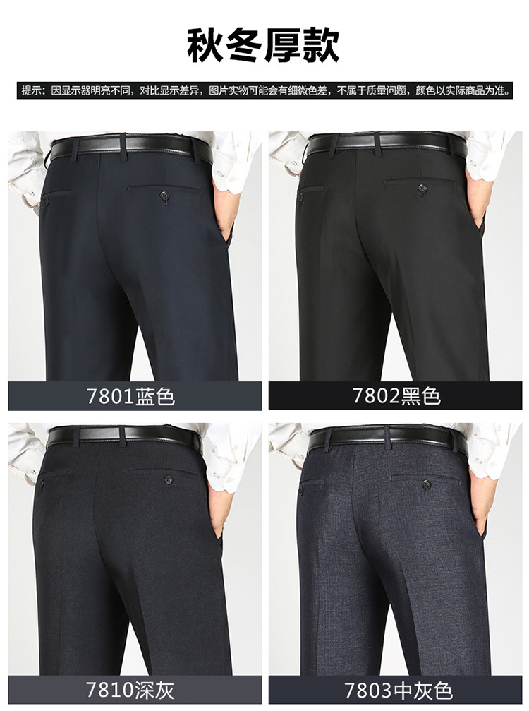 罗蒙西裤男加绒加厚男士直筒西装裤中老年休闲裤高腰深档爸爸长裤