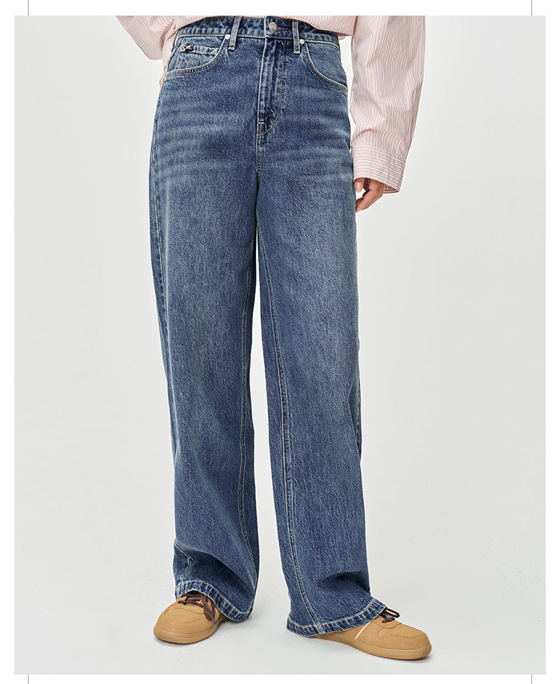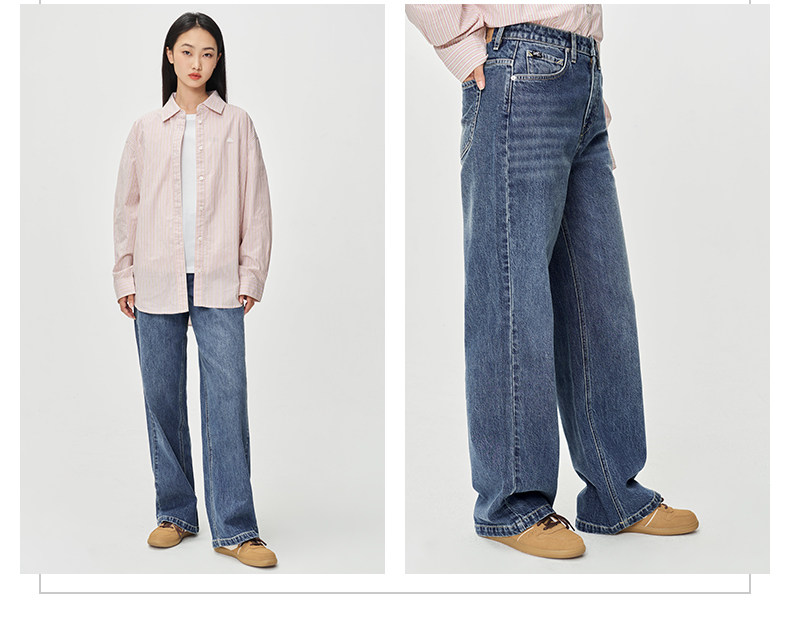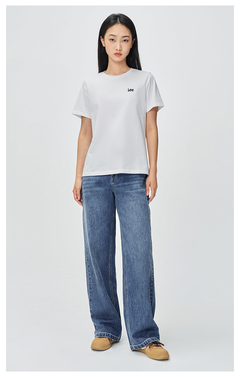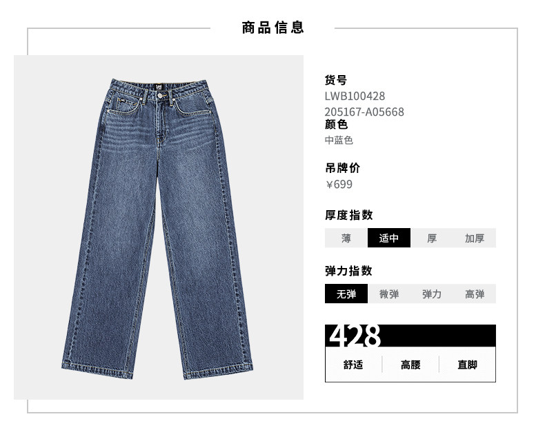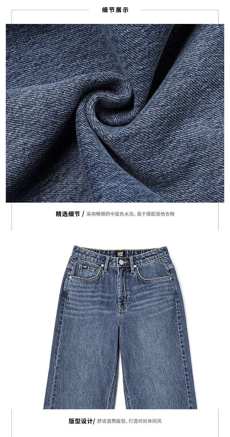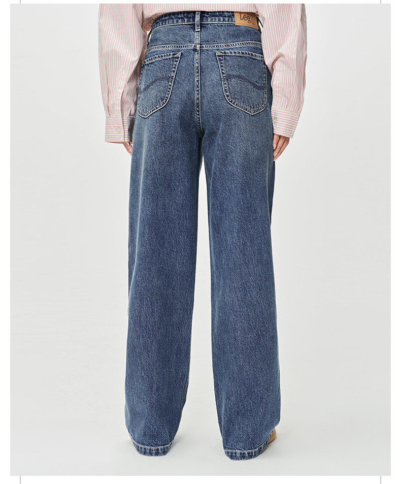 【张凌赫代言】Lee中蓝色水洗428懒懒裤高腰女显瘦宽腿牛仔裤潮流