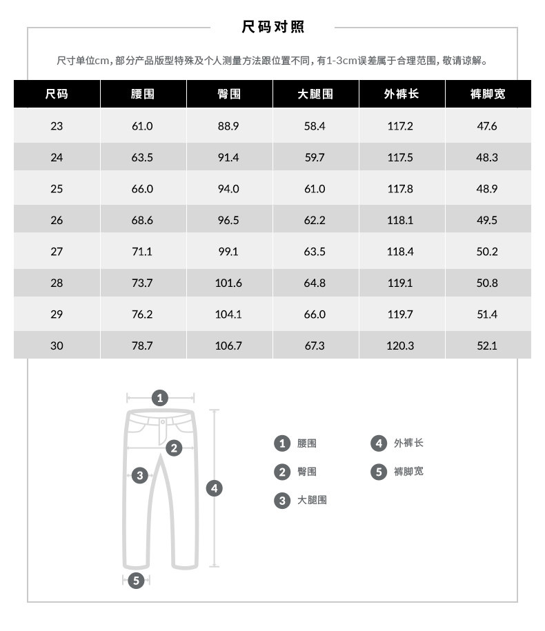 Outseam (cm) 99 cm 101.5 cm 104 cm 106.5 cm 109 cm